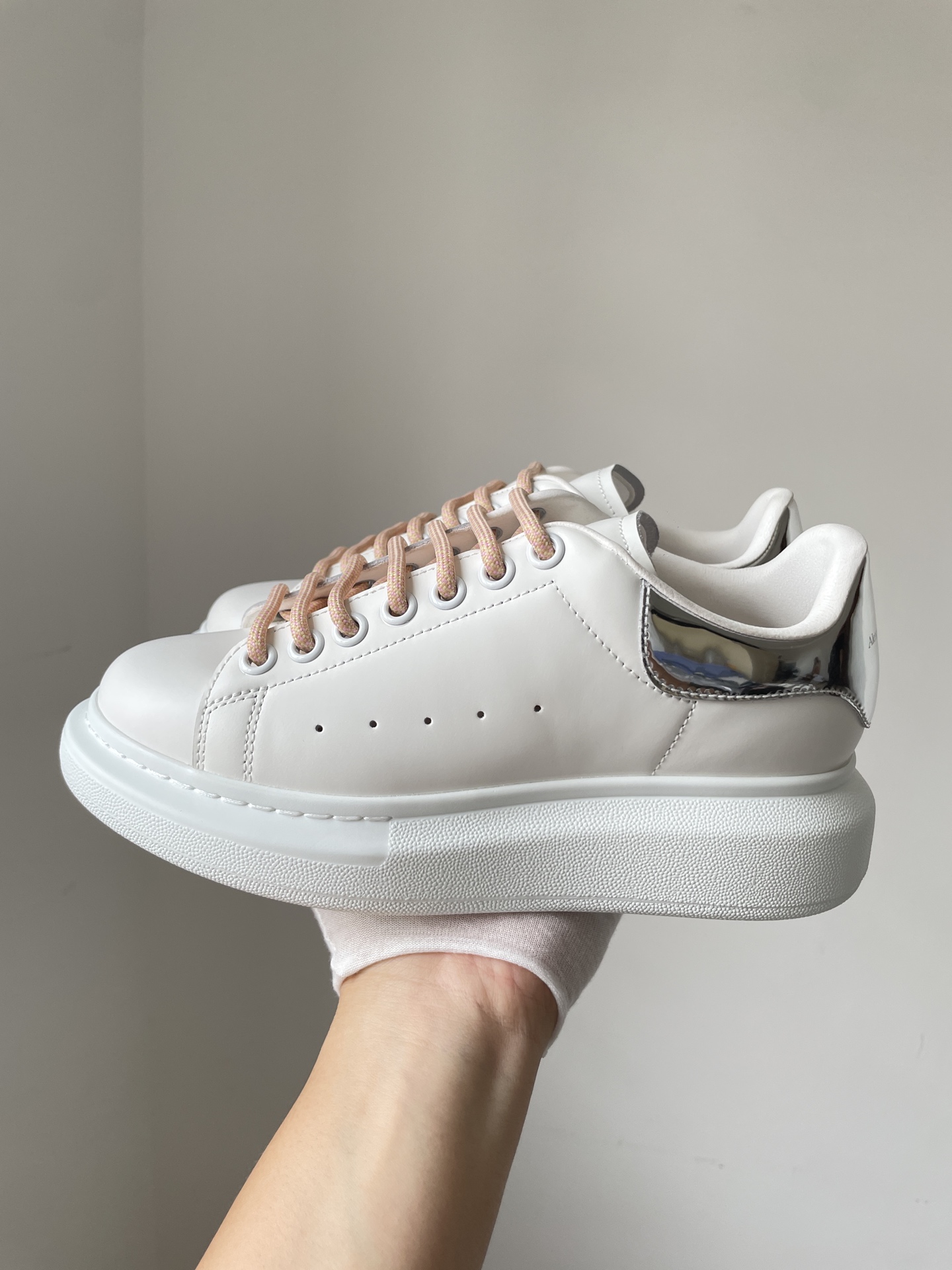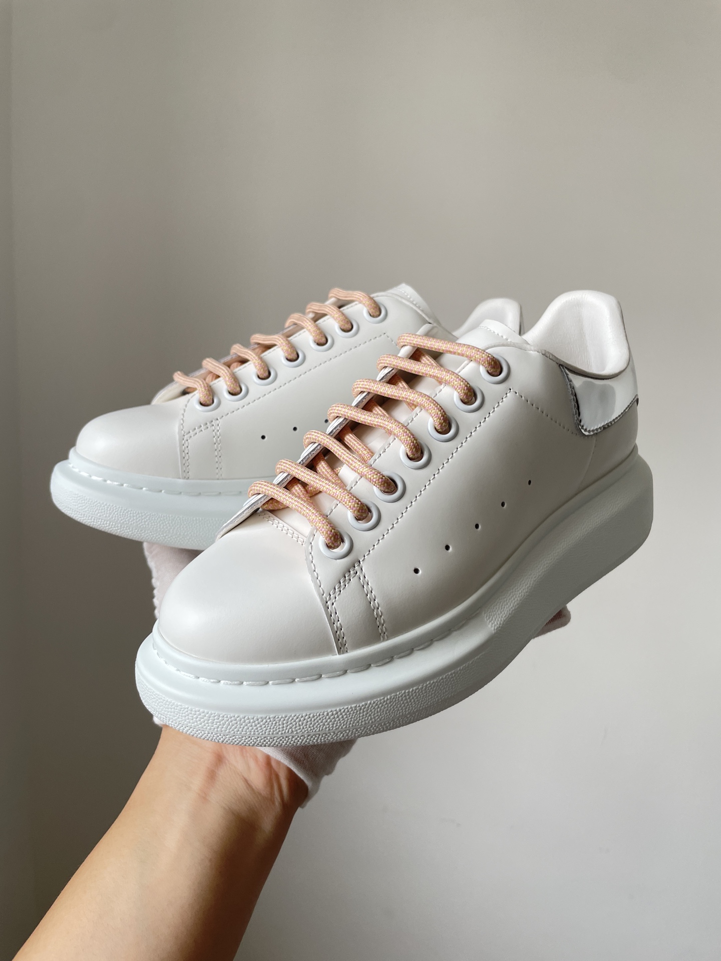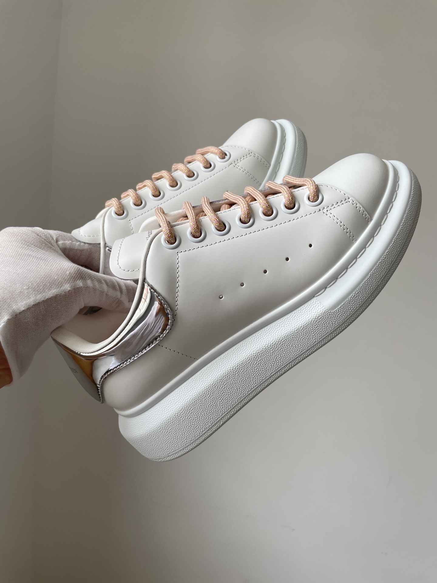 Alexander McQueen Oversized Sneaker Leather Round Toe Lace-Up Low-Top Sneakers Women White