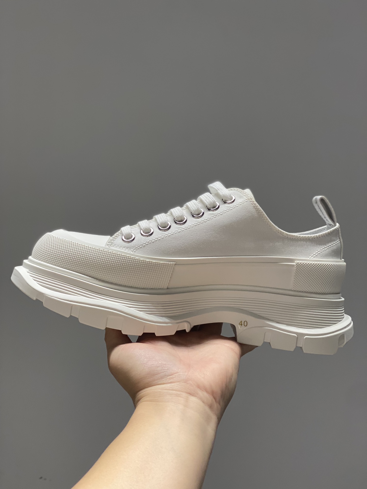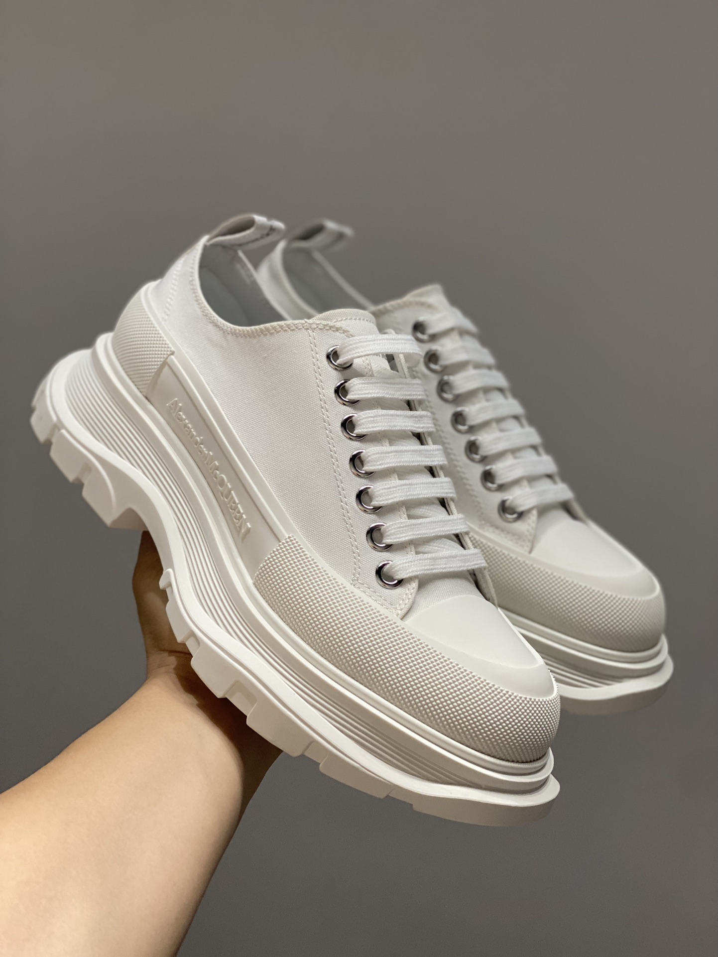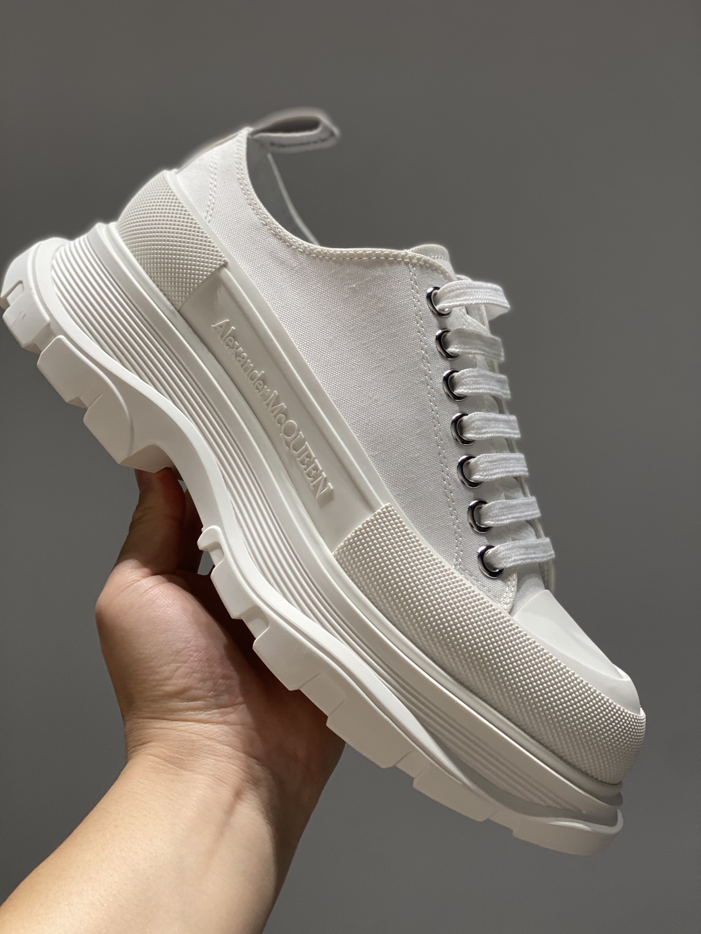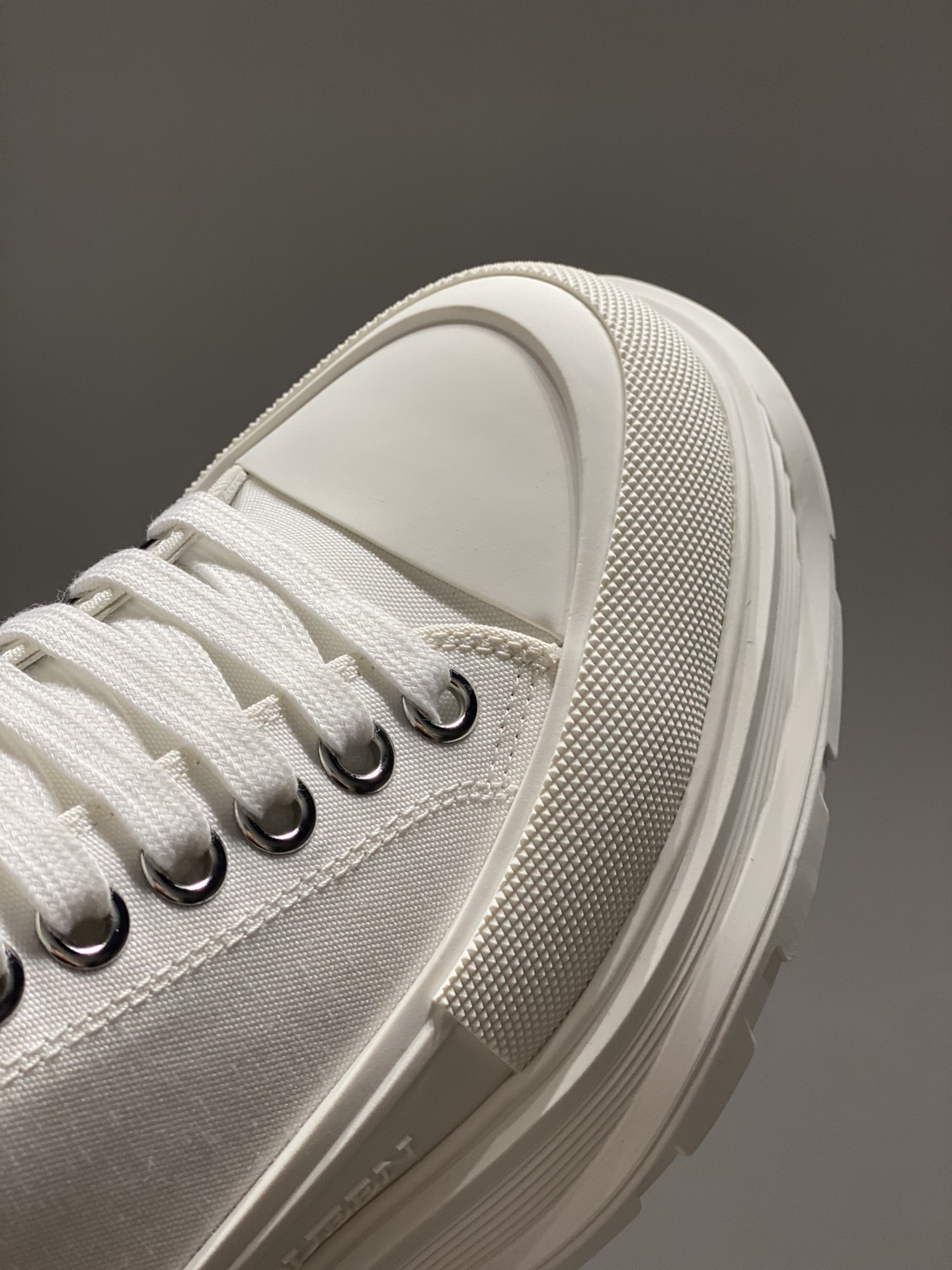 Alexander McQueen Tread Slick Canvas Lace-Up Ankle Boots Unisex White crafted with fine leather and signature McQueen craftsmanship, offering luxurious comfort and a bold modern silhouette for everyday wear.