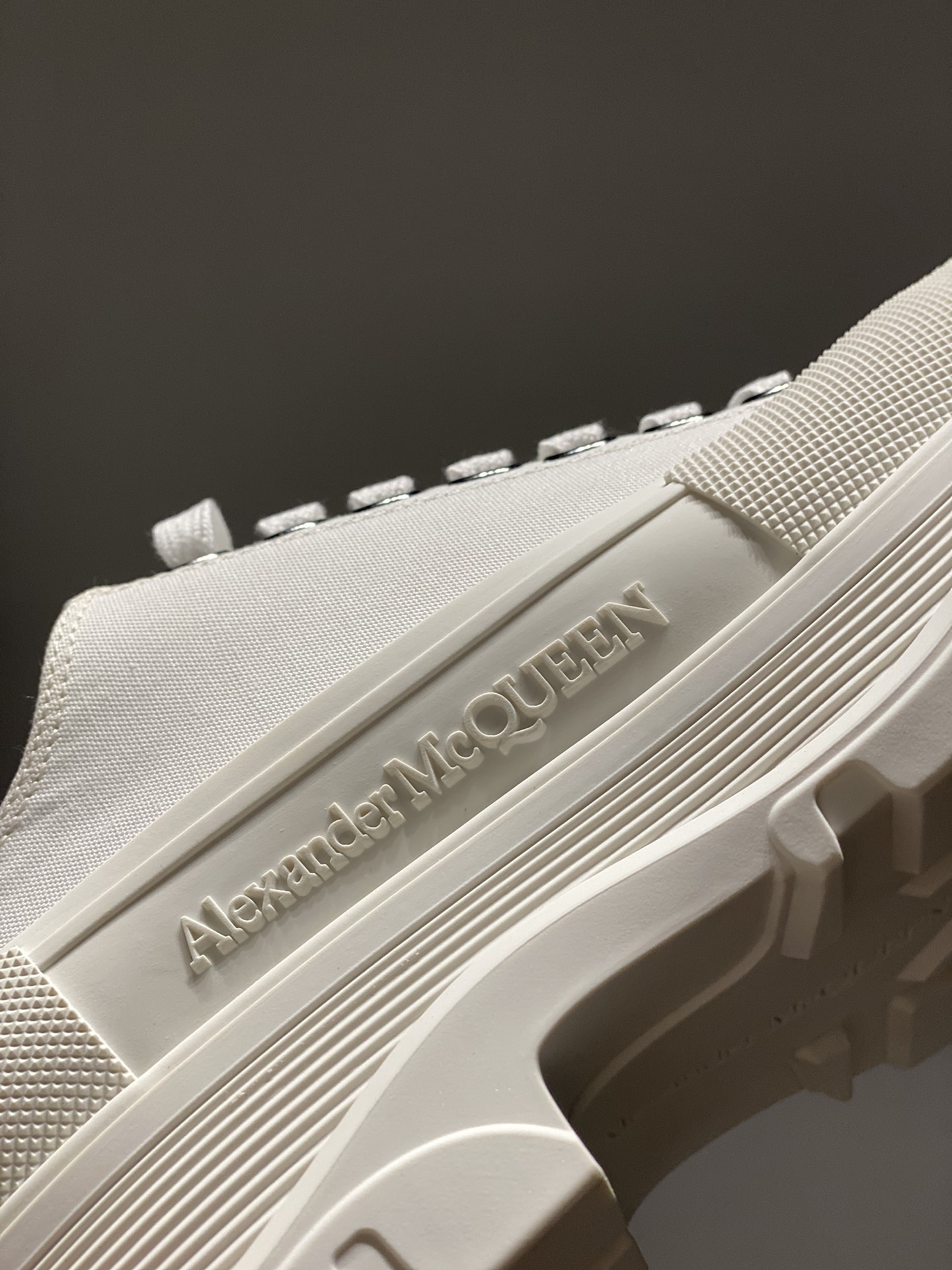 Stylish white Alexander McQueen sneakers featuring signature oversized sole and premium materials.
