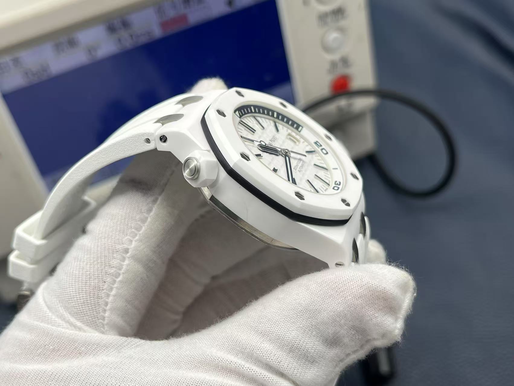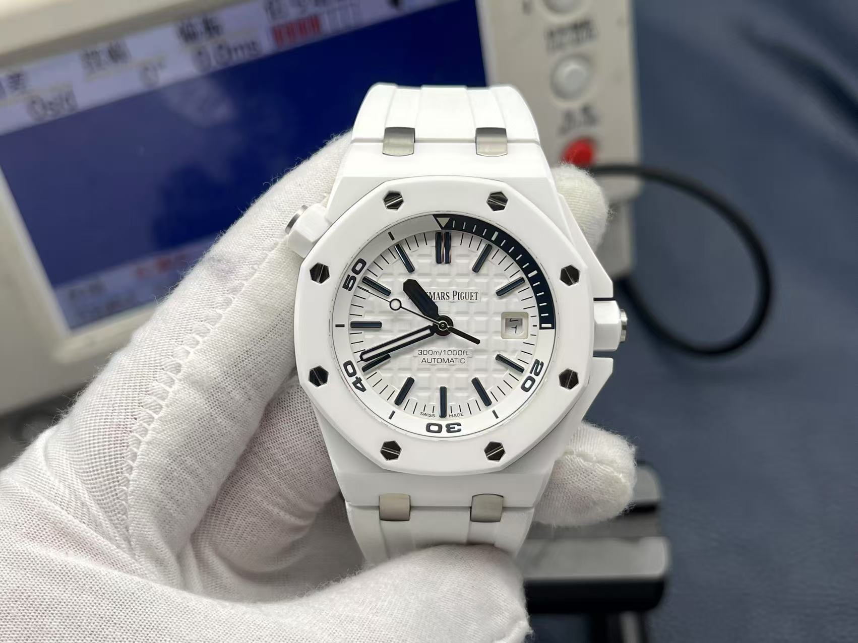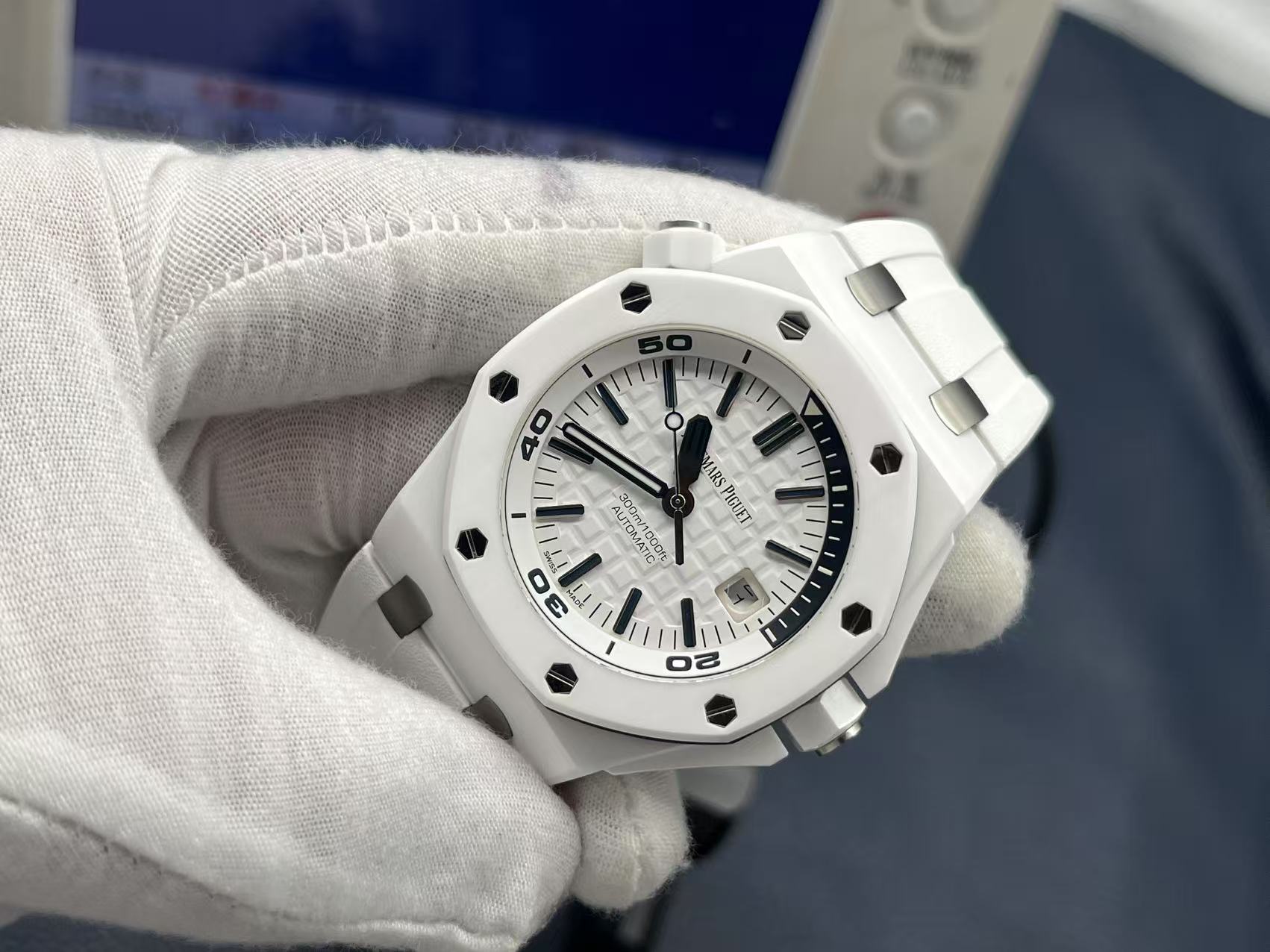 Royal Oak Offshore Diver 42mm, white ceramic case, automatic CAL.3120 movement, rubber strap.