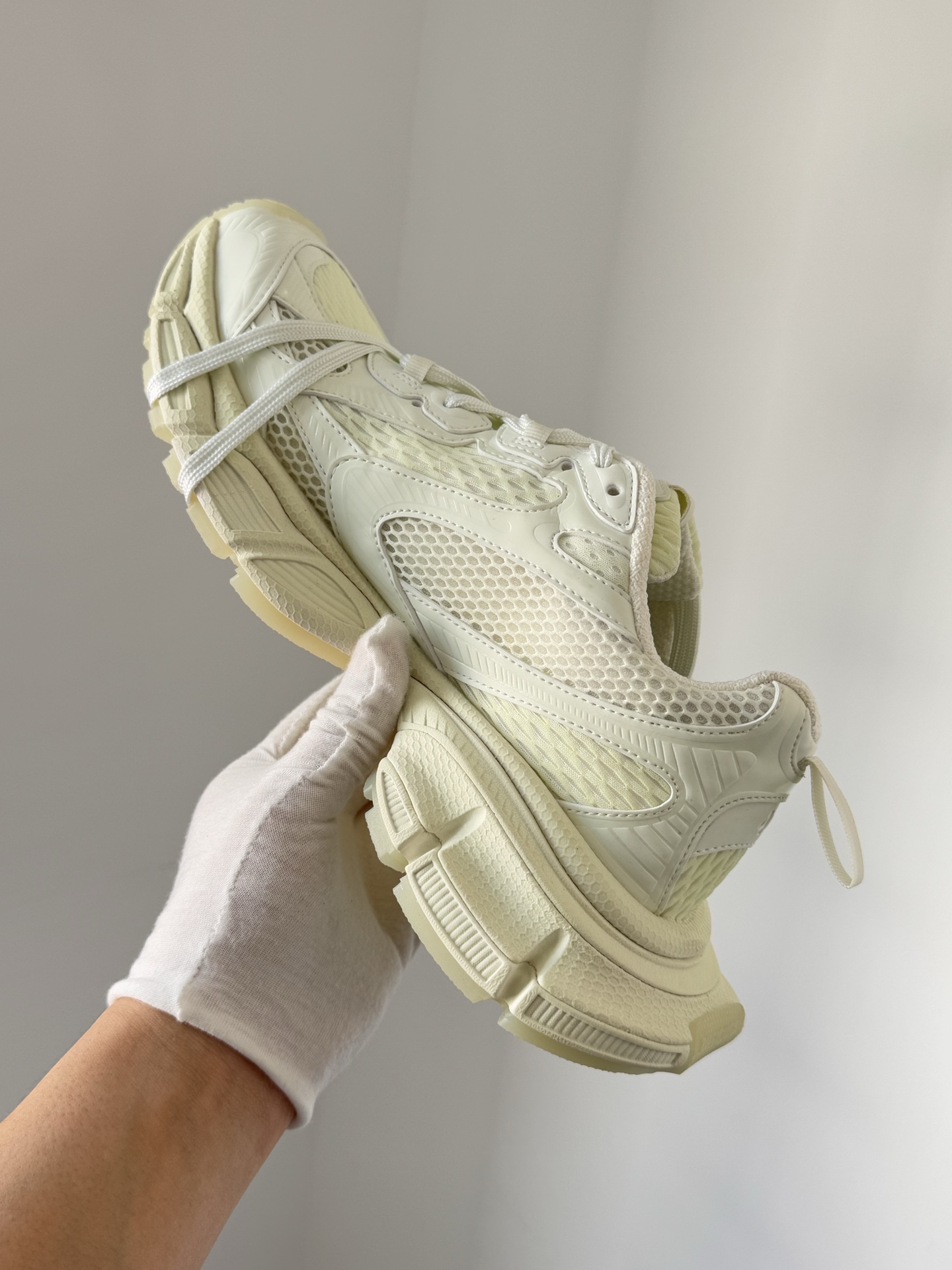 Sneakers with a Mesh construction. Design features: Round-Toe, Thick-Soled, Low-Top, Dad Sneakers. Primary color: White. Intended use: everyday wear and general lifestyle activities. Fit category: Unisex.