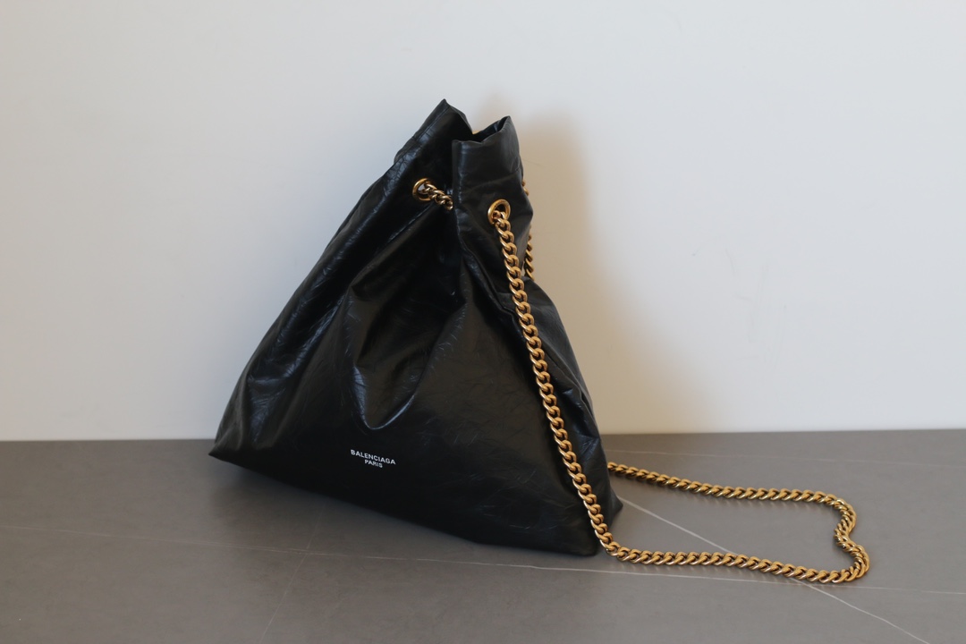 Balenciaga Crush Medium Double-Chain Tote Bag in Matte Calfskin Leather – Black