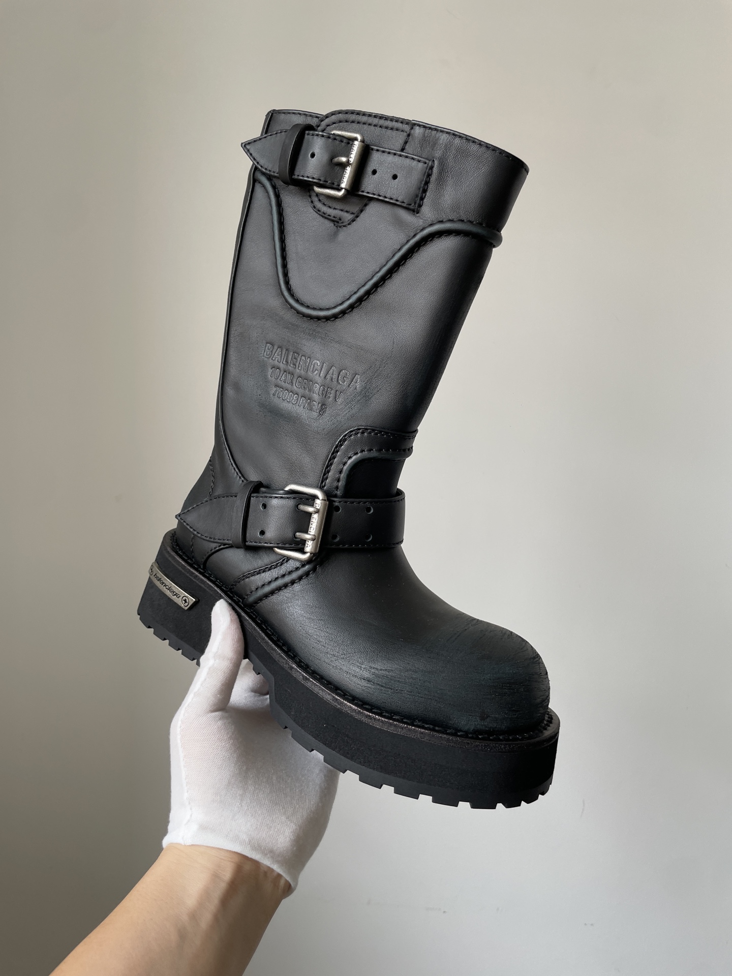 Balenciaga Venom Calfskin Round-Toe Black Ankle Boots