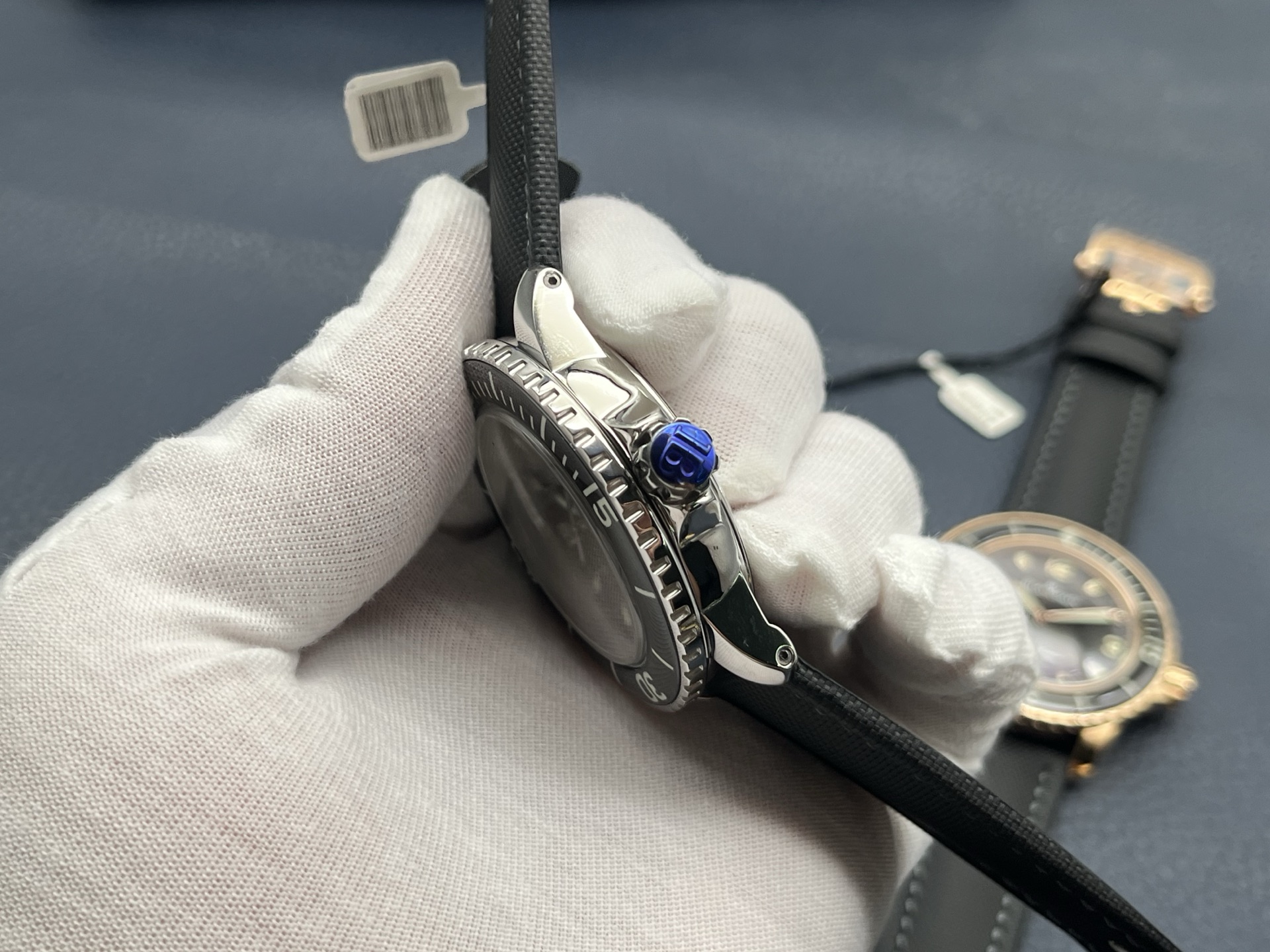 **Case:** 45mm stainless steel, ergonomically curved lugs with mirror polishing for luxurious feel.