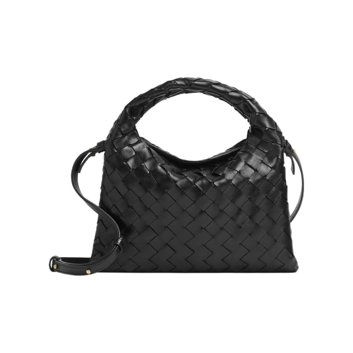 Bottega Veneta Hop Mini Intrecciato Calfskin Tote Shoulder Crossbody Bag with Magnetic Closure – Black