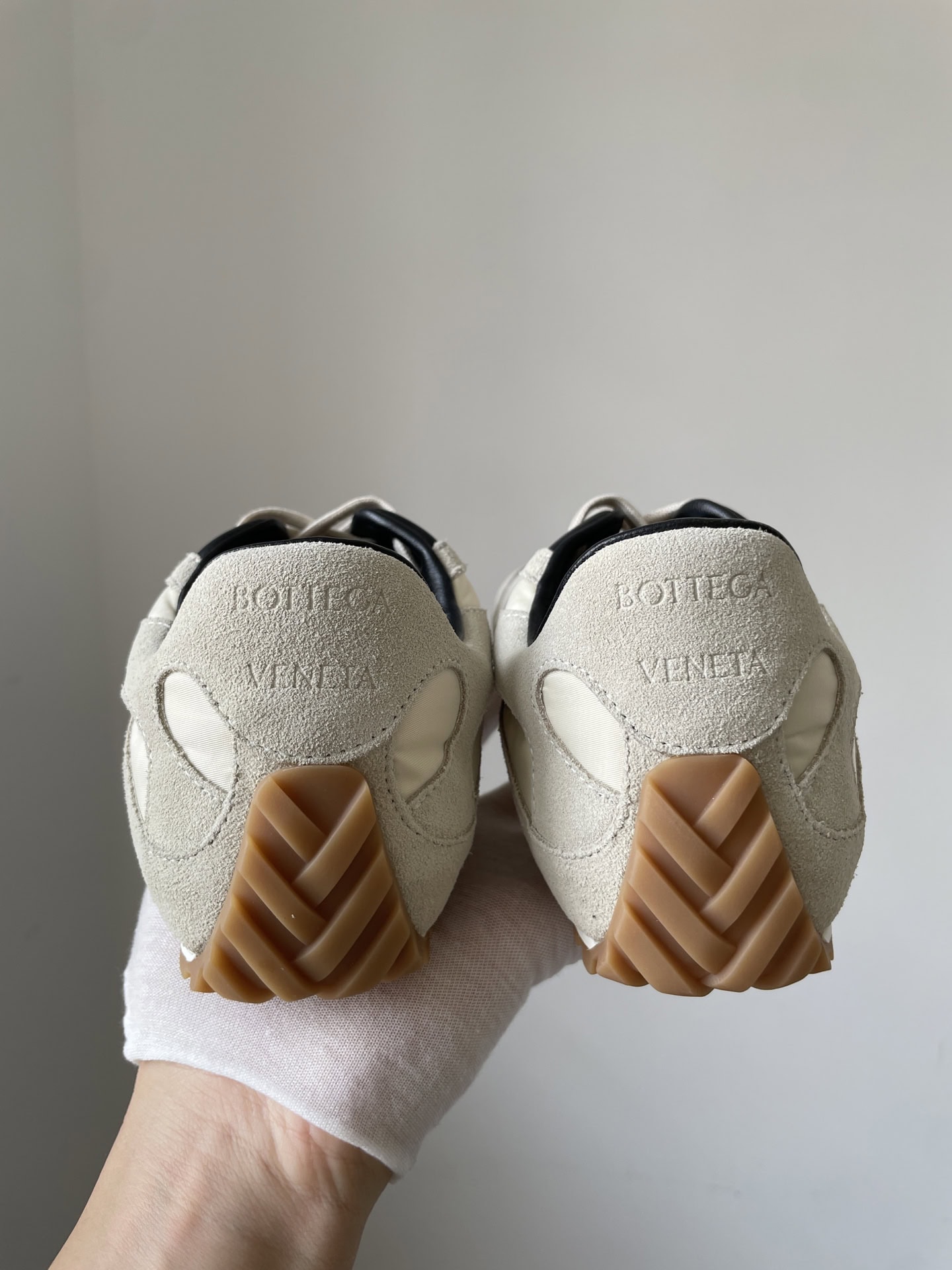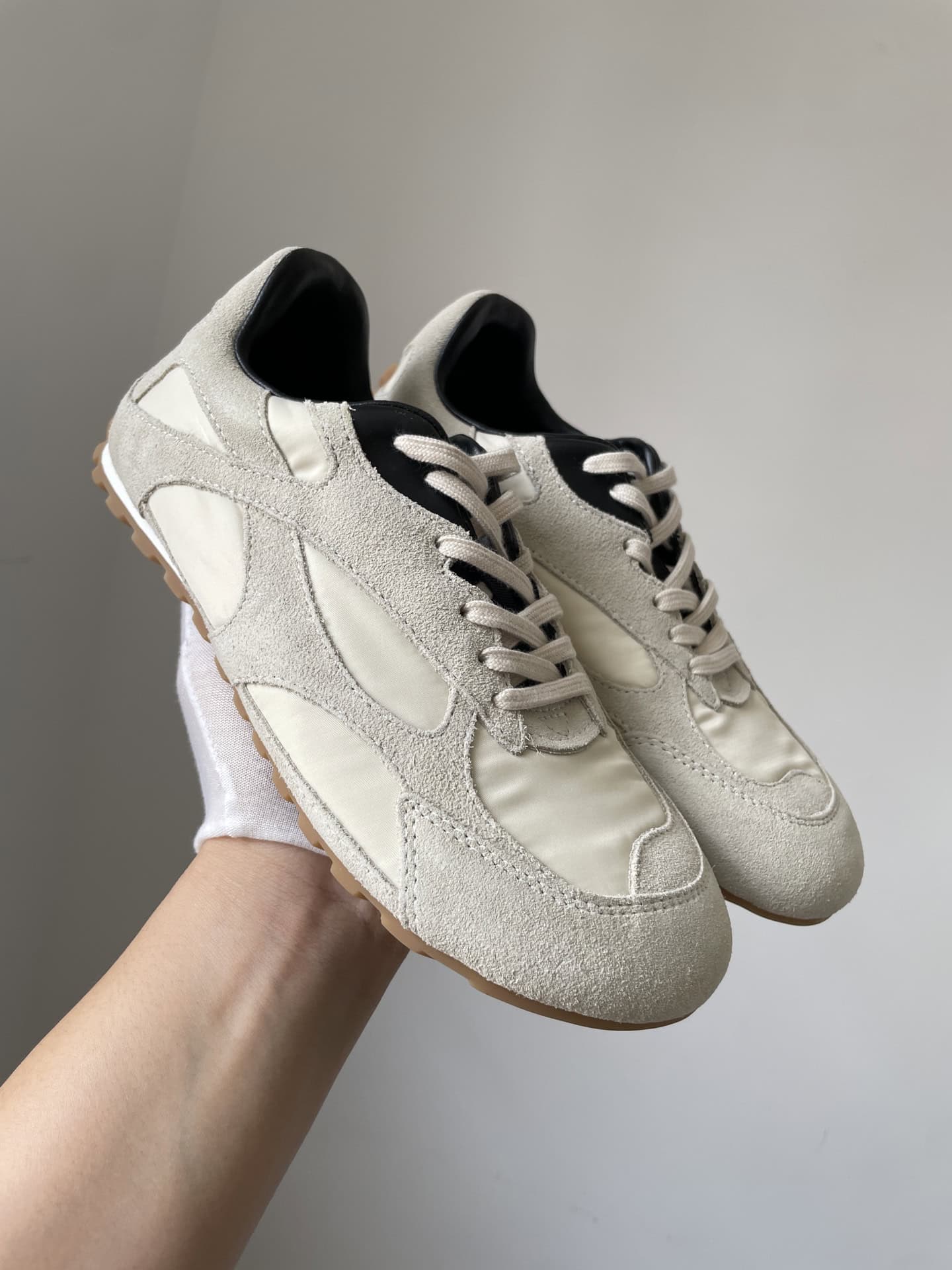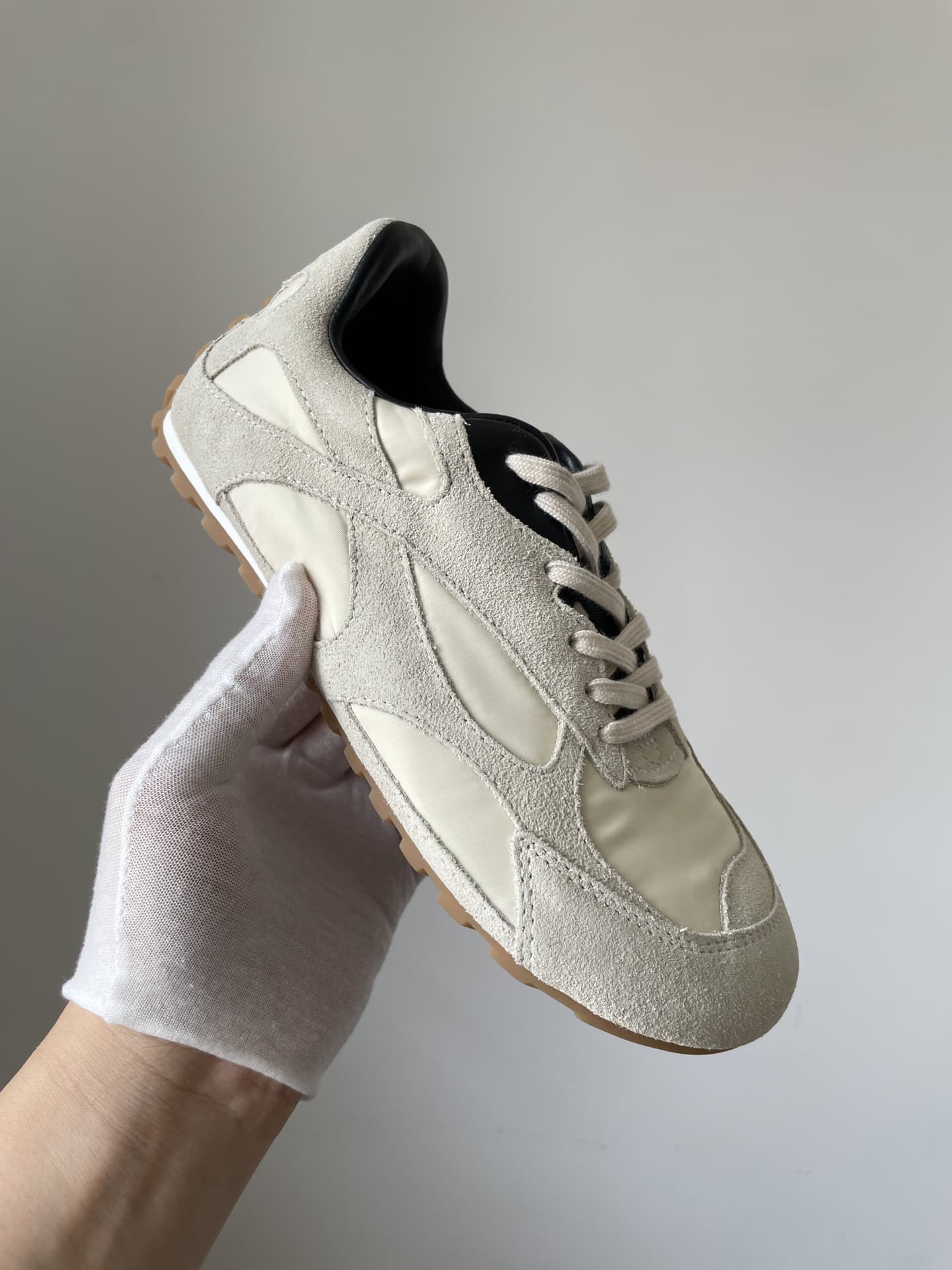 Bottega Veneta Orbit Flash Polyester Calfskin Round Toe Lace-Up Thin Sole Low-Top Sneakers Unisex Beige are meticulously crafted using premium materials, combining modern Italian design, comfort, and durability for an effortlessly stylish look.