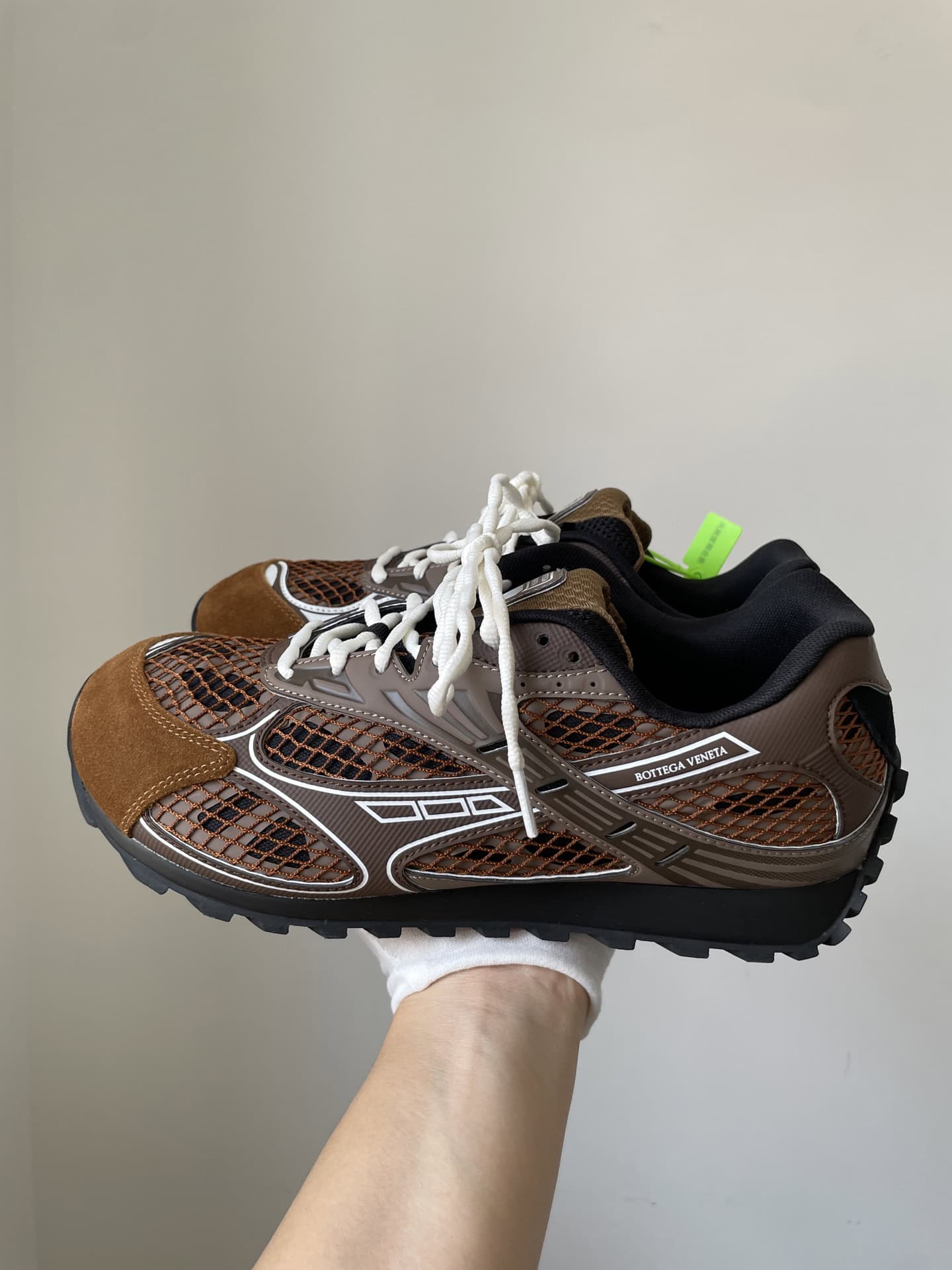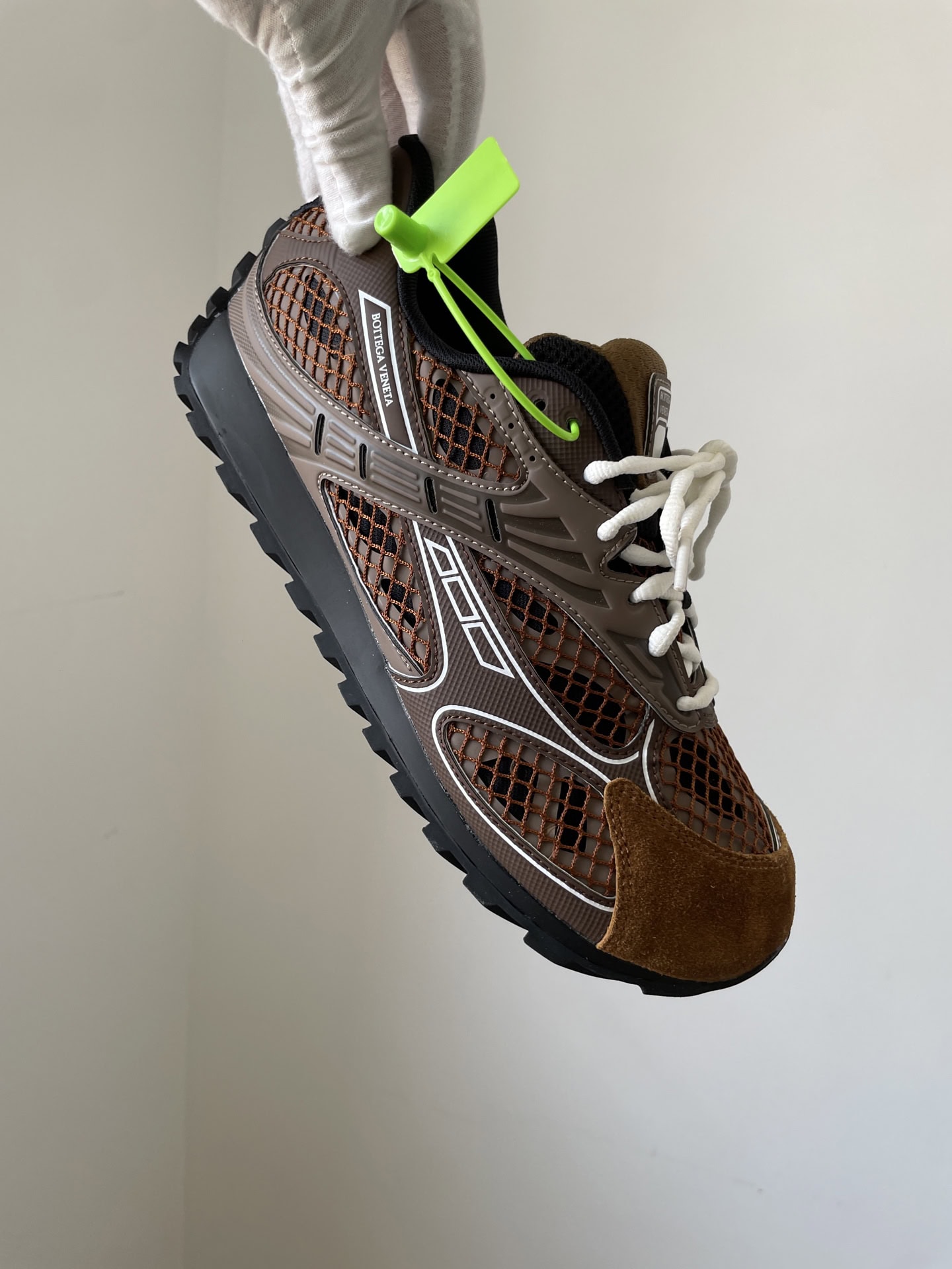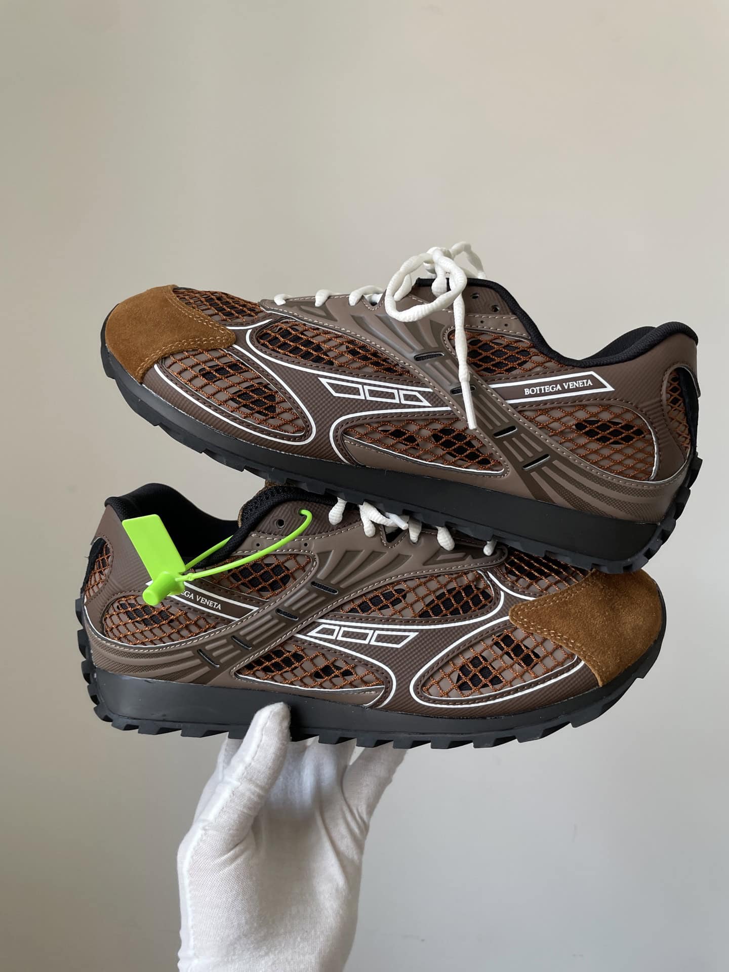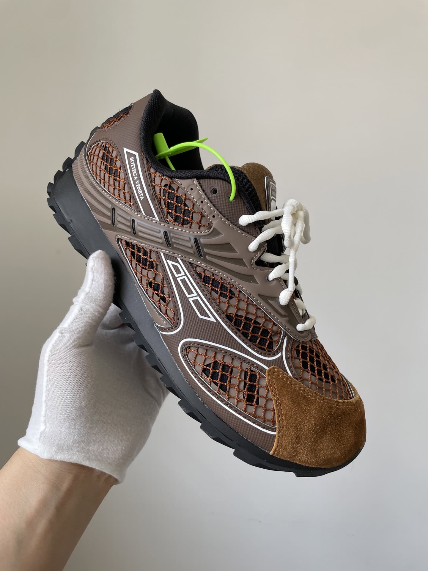 Bottega Veneta Orbit Round Toe Lace-Up Running Low-Top Sneakers Men Brown are meticulously crafted using premium materials, combining modern Italian design, comfort, and durability for an effortlessly stylish look.