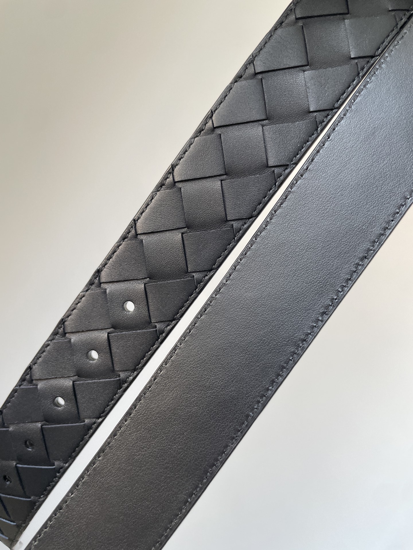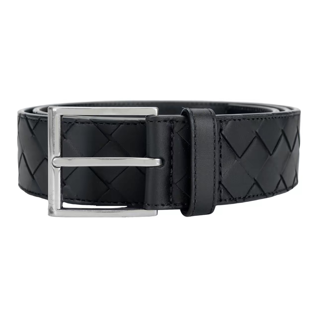 Elegant Bottega Veneta woven leather belt, a refined accessory for the modern businessman.