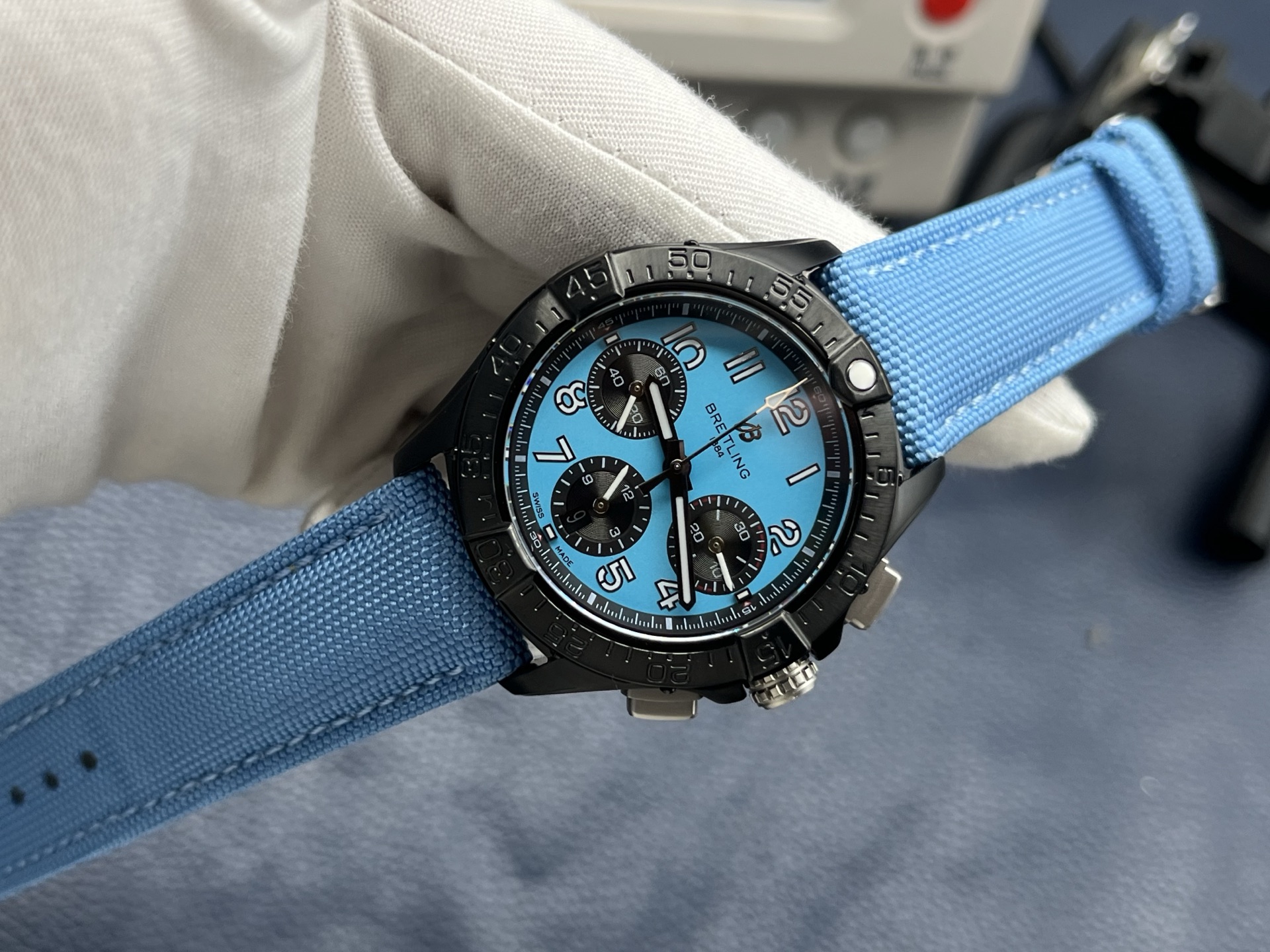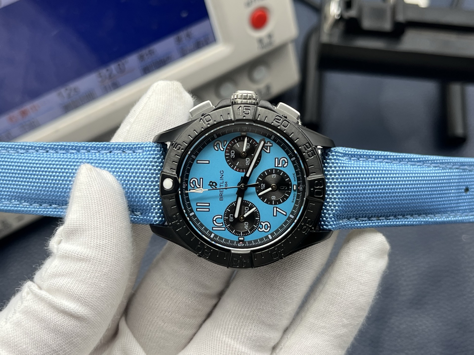 Breitling Avenger Automatic Chronograph Men’s Watch 42mm Blue Dial Ceramic Case with Calf Leather Strap