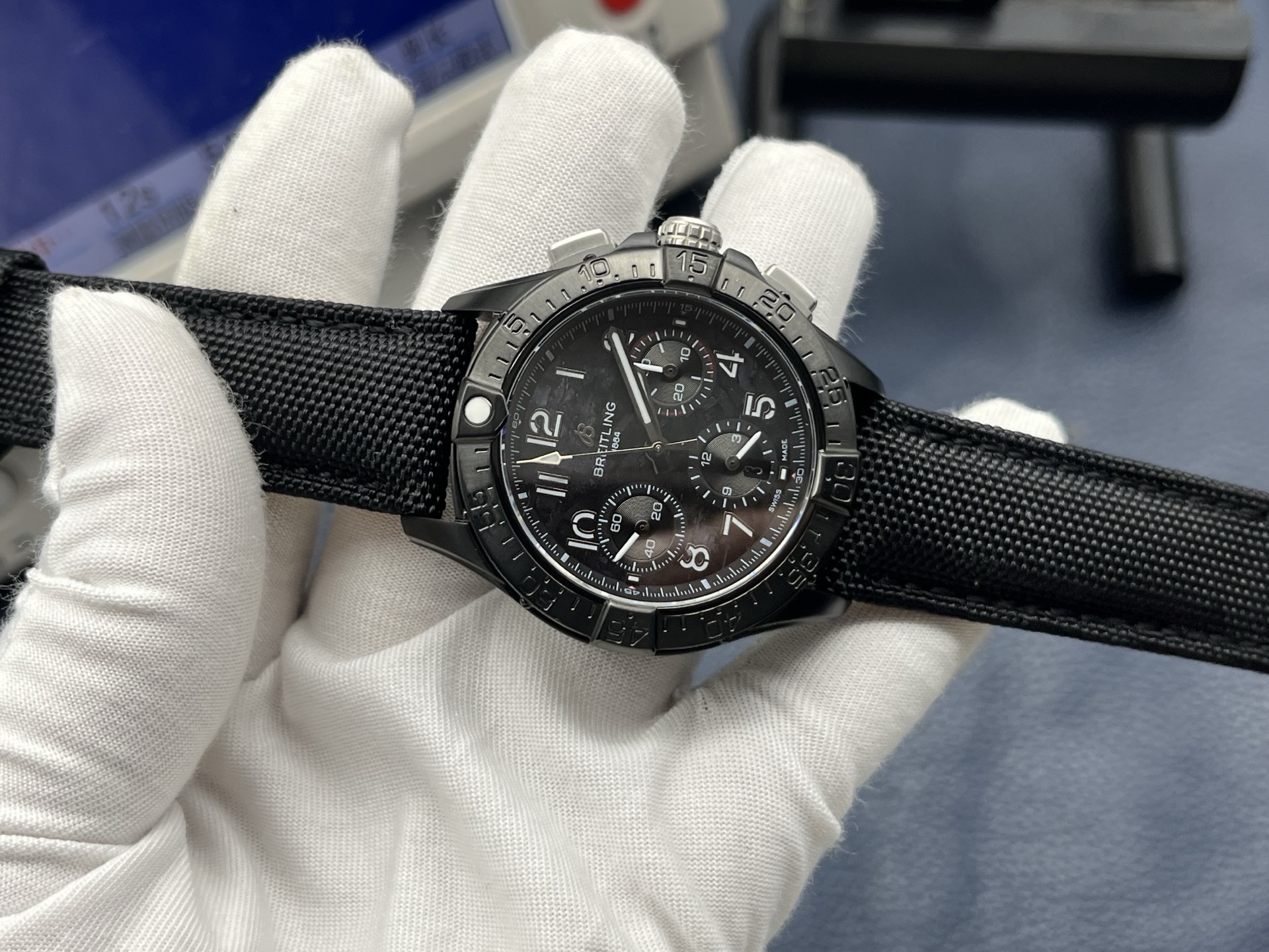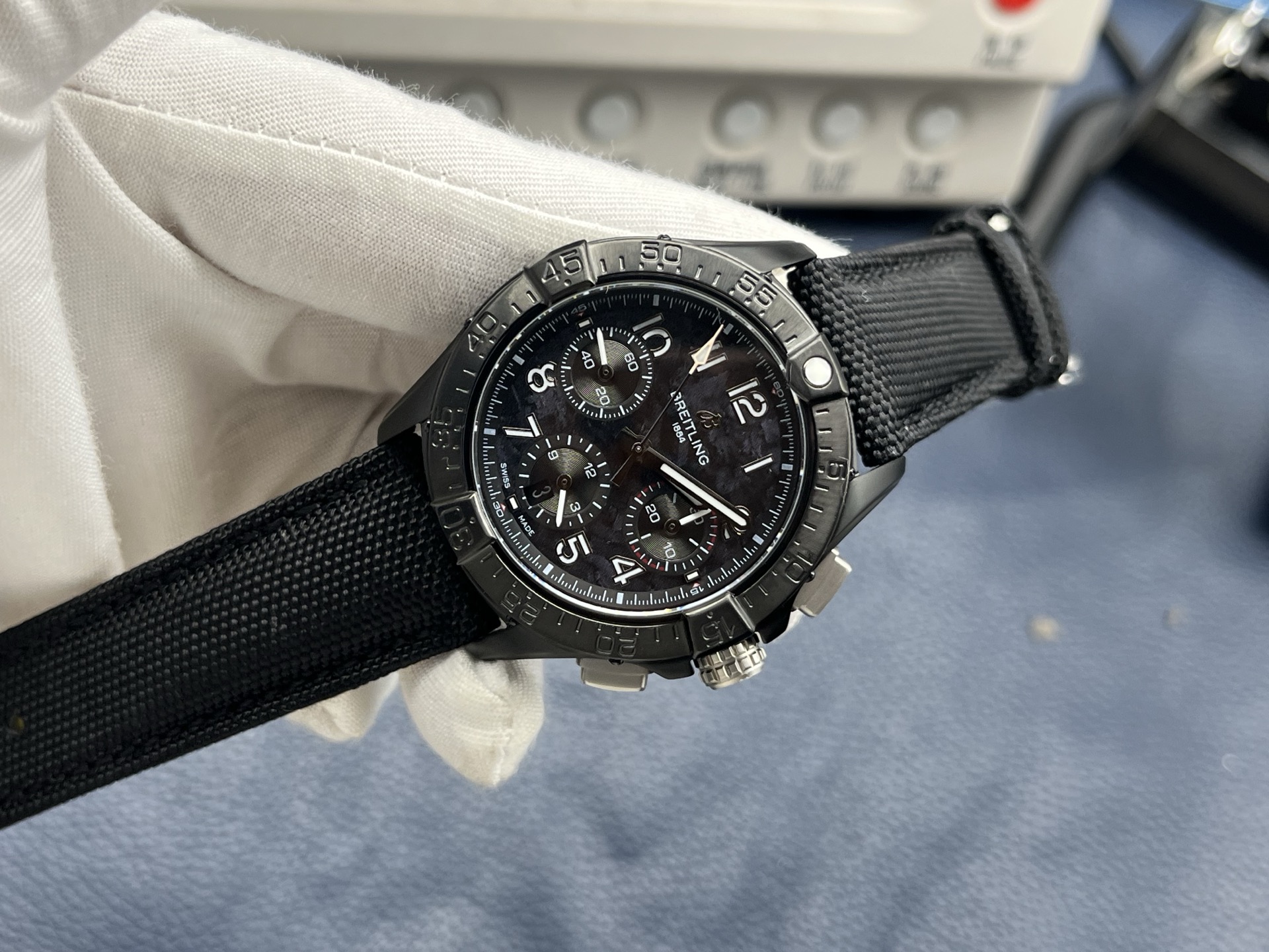 Breitling Avenger Automatic Chronograph Men’s Watch 44mm Black Dial Ceramic Case with Leather Strap