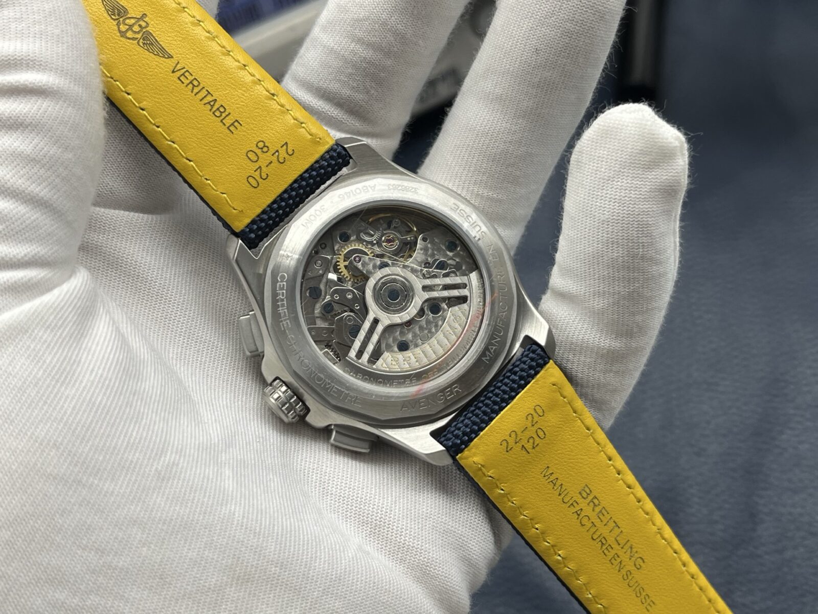 1️⃣ Equipped with the Breitling Caliber 7750 automatic chronograph movement — reliable, precise, and built for endurance.