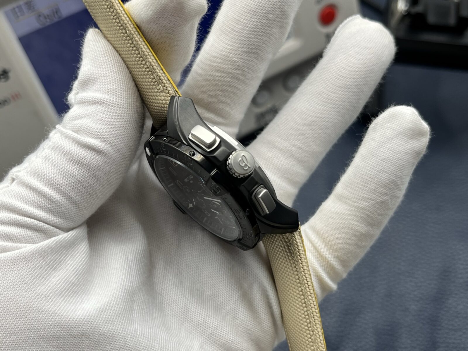 4️⃣ Features a unidirectional ratcheted rotating bezel with engraved numerals for accurate flight or dive timing.
