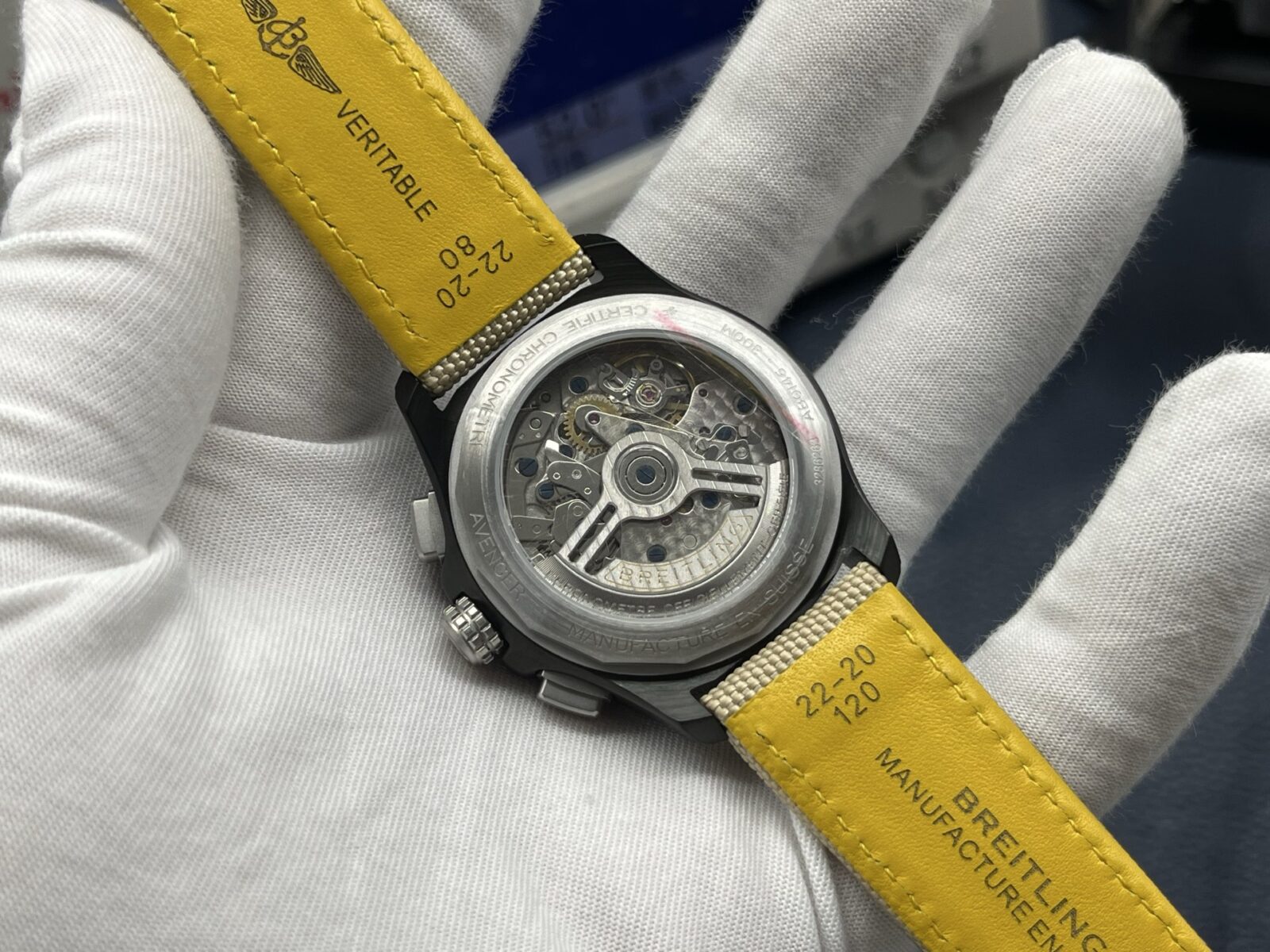 1️⃣ Equipped with the Breitling Caliber 7750 automatic chronograph movement — reliable, precise, and built for endurance.
