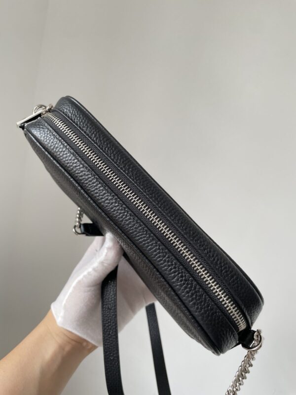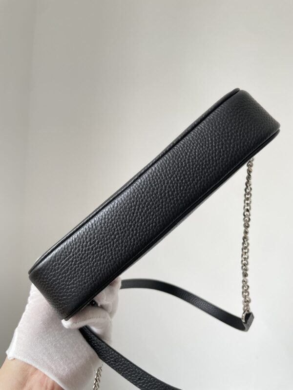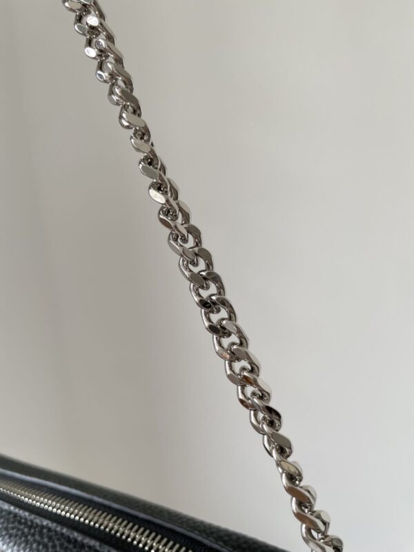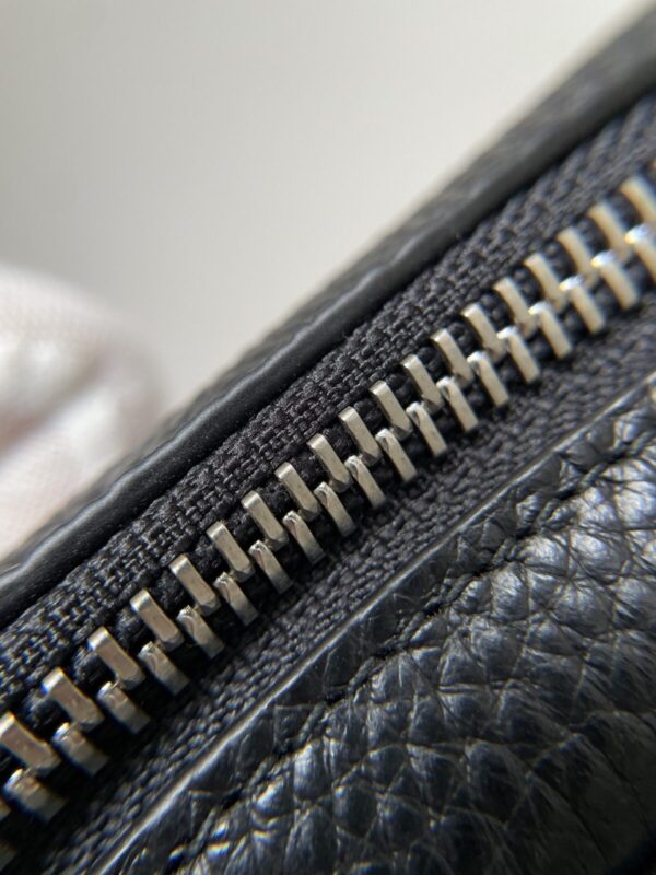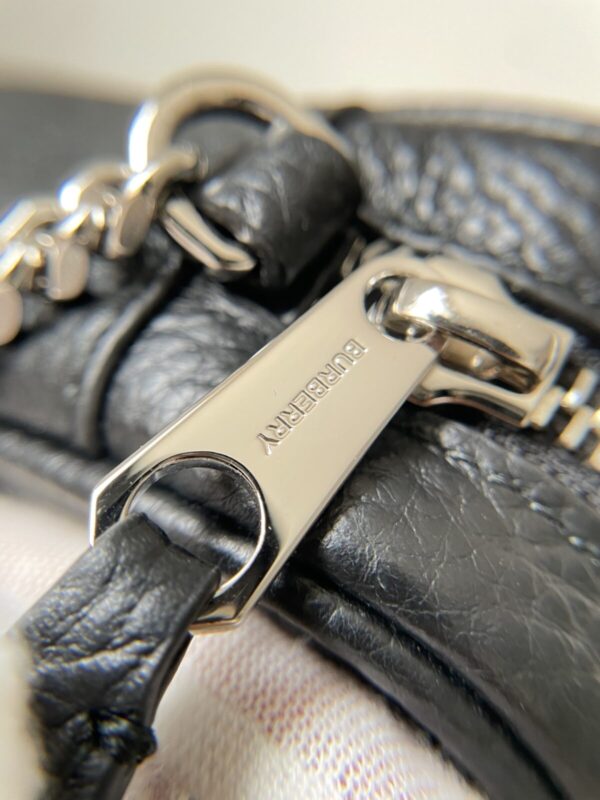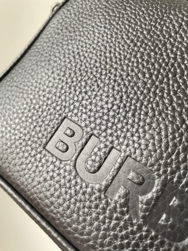 The Burberry Embossed Logo Calfskin Shoulder Bag is crafted in smooth black leather with an embossed logo and zip closure. Compact and structured, perfect for daily use. Dimensions: 23×4.7×13cm.