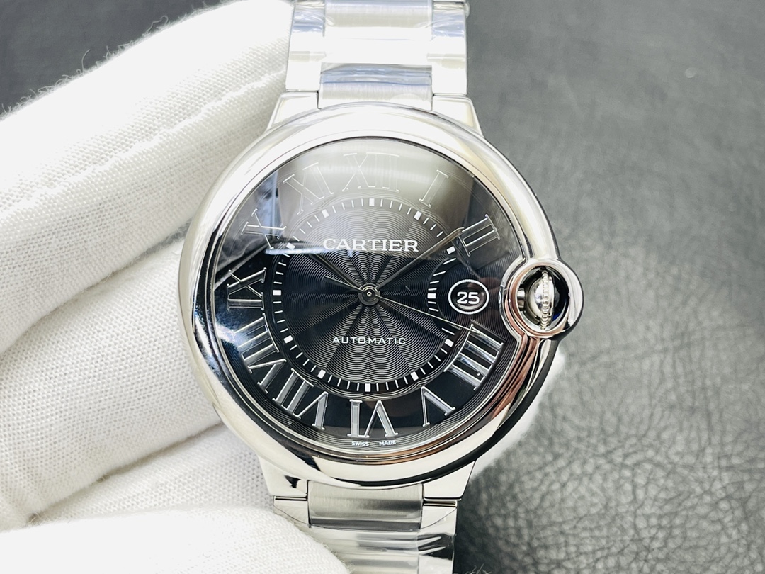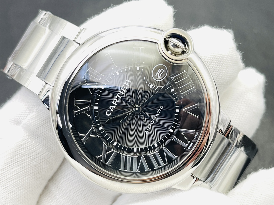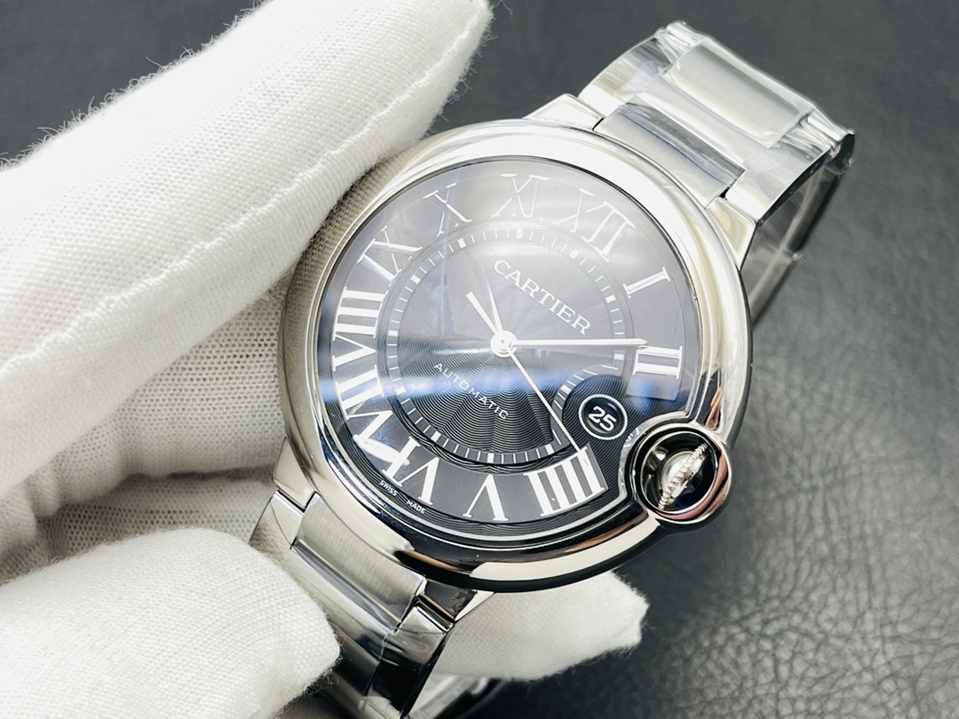 Cartier Ballon Bleu Series Automatic Mechanical Men’s Watch 42.1mm Black Dial Stainless Steel Case and Bracelet