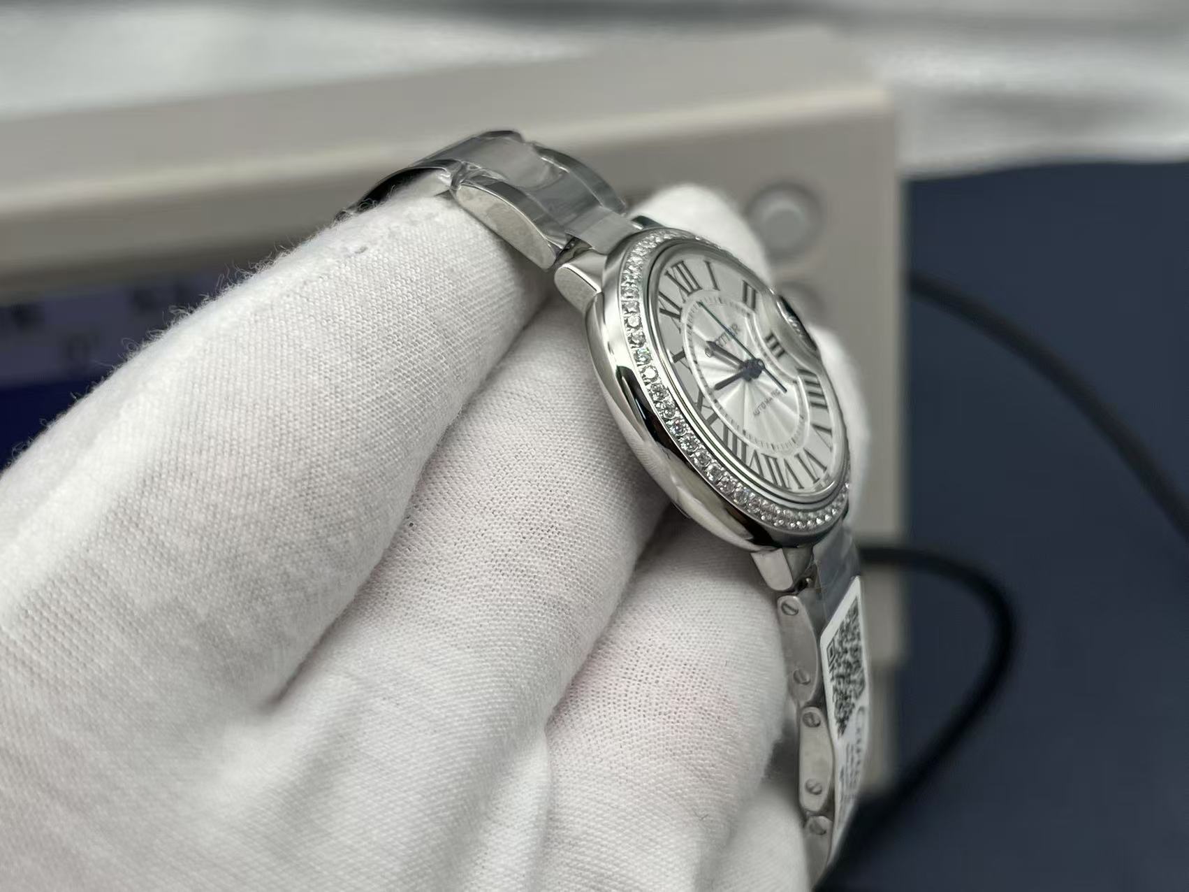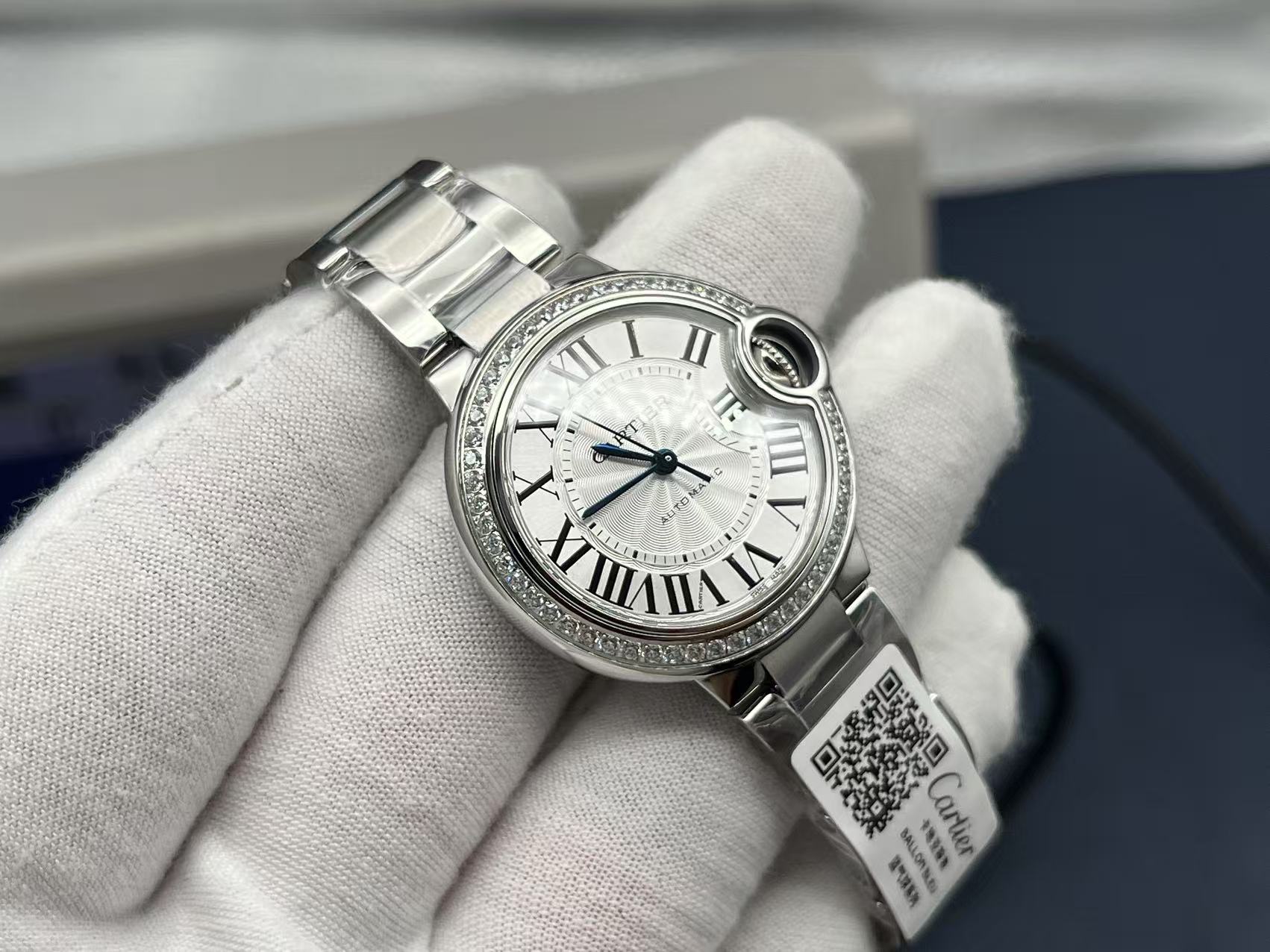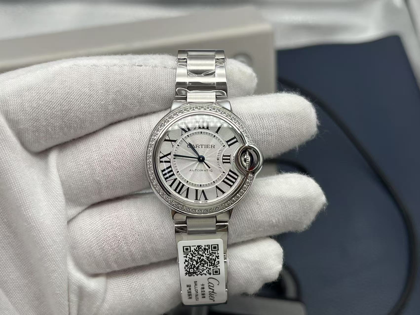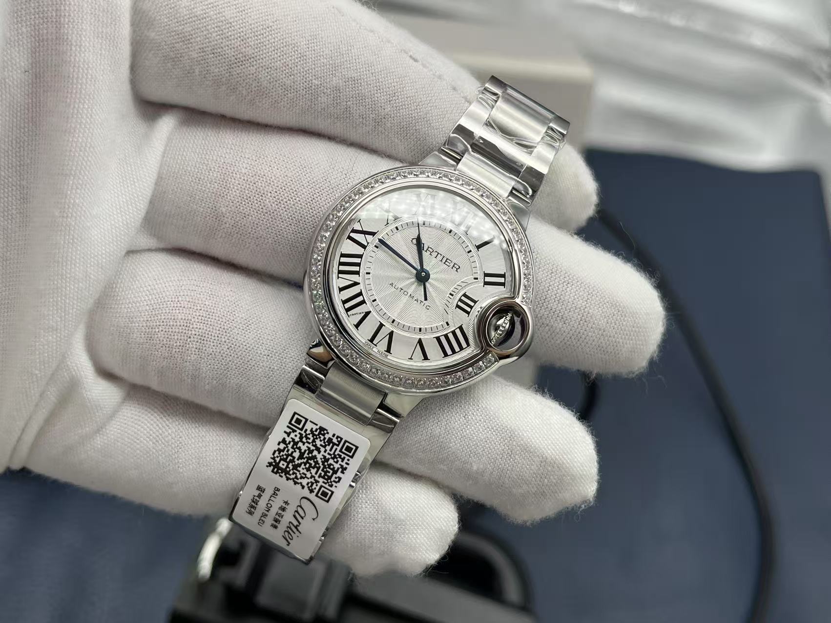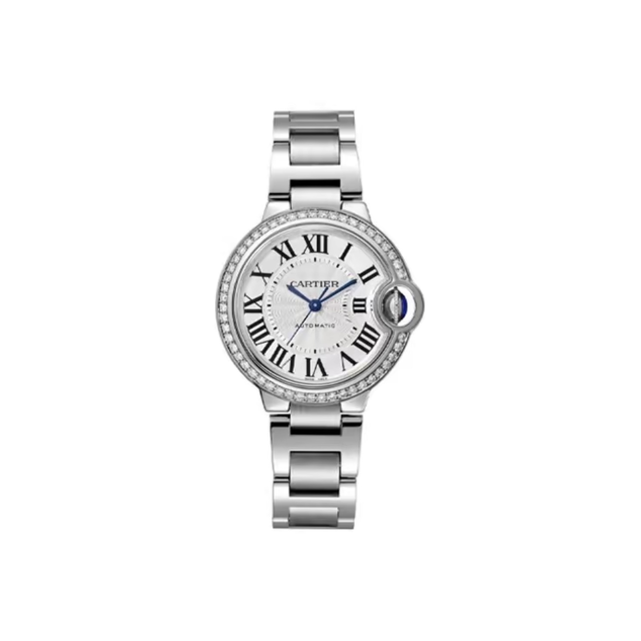 Cartier Ballon Bleu Series Automatic Mechanical Unisex Watch 33mm White Dial Diamond Bezel Stainless Steel Case and Bracelet