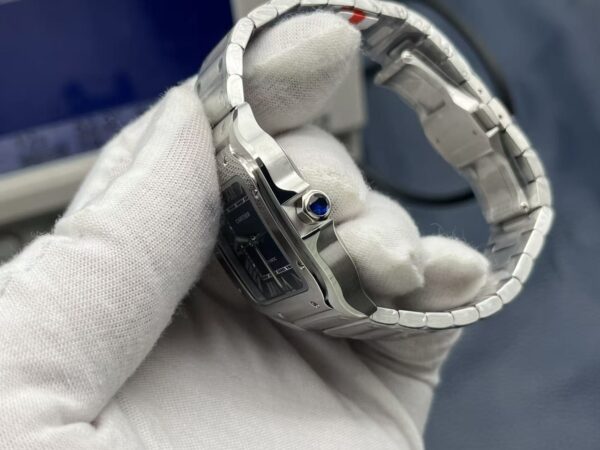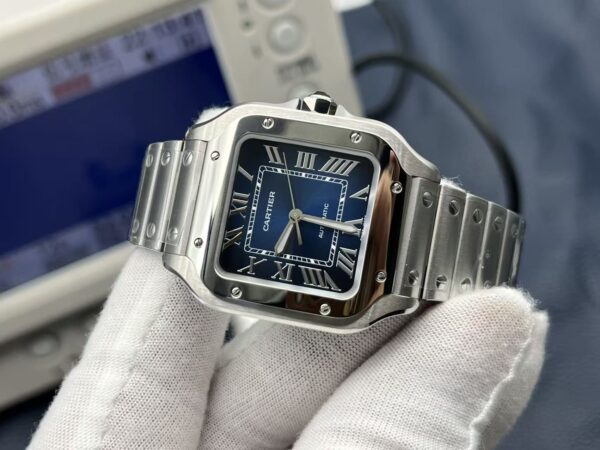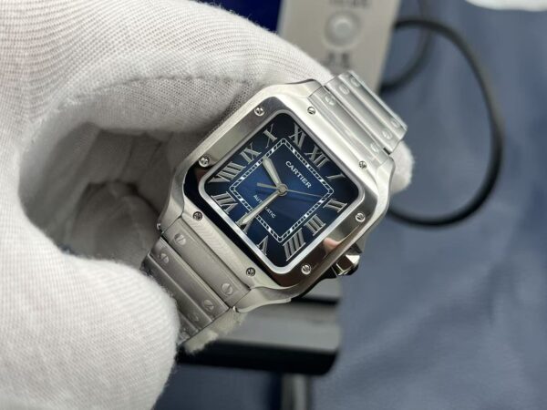 The Cartier Santos de Cartier WSSA0063 embodies a perfect blend of modern innovation and timeless craftsmanship. With its distinctive square case and radiant blue dial, it celebrates Cartier’s heritage of precision and style.