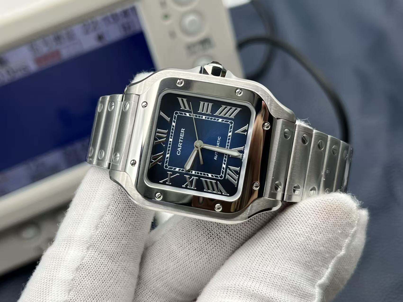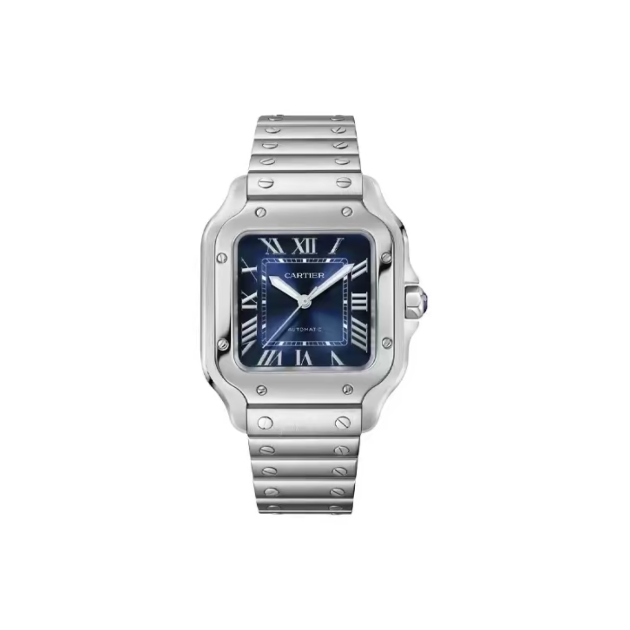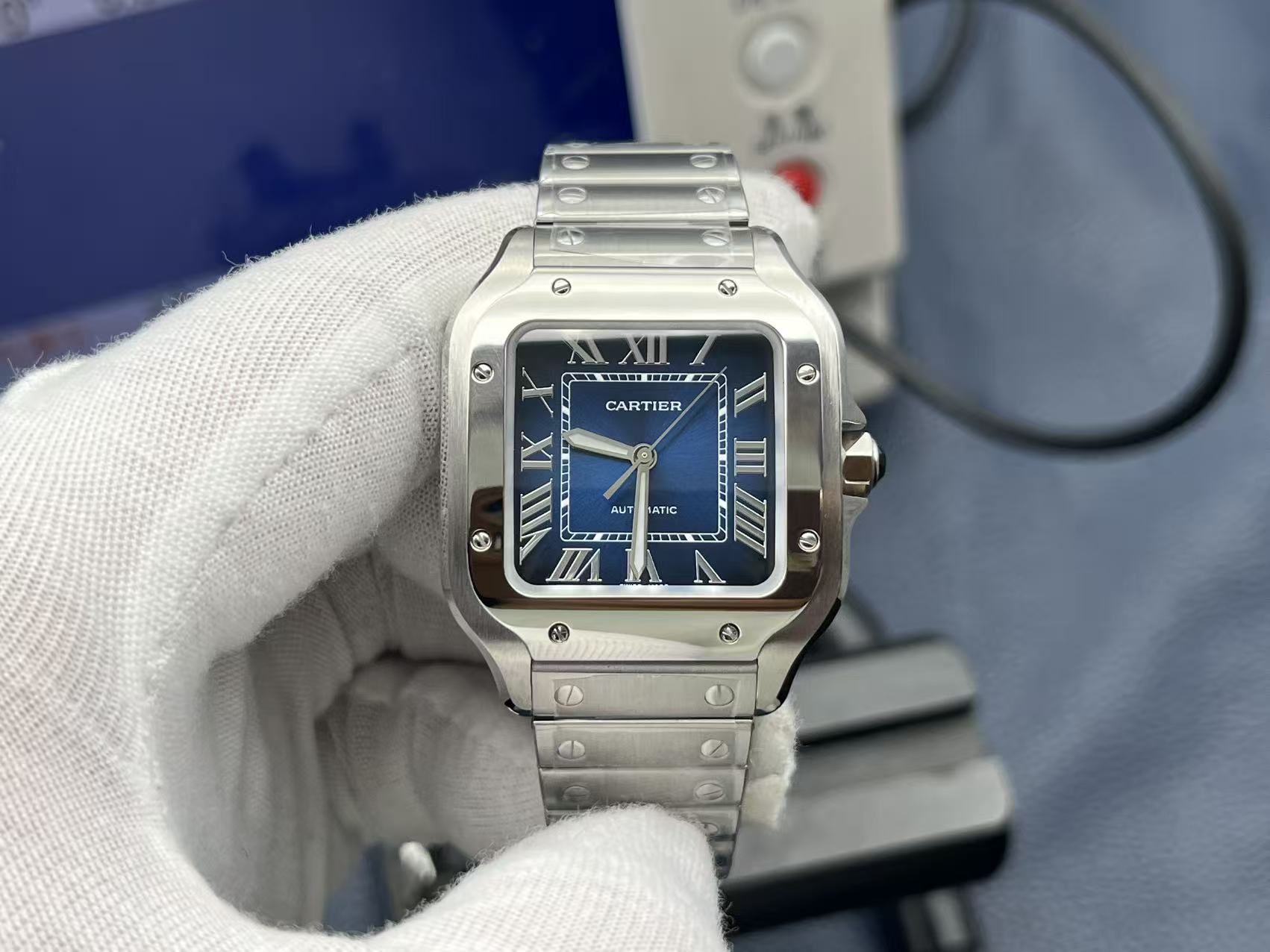 Cartier Santos de Cartier Series Automatic Mechanical Men’s Watch 35.1mm Blue Sunburst Dial Stainless Steel Case and Bracelet