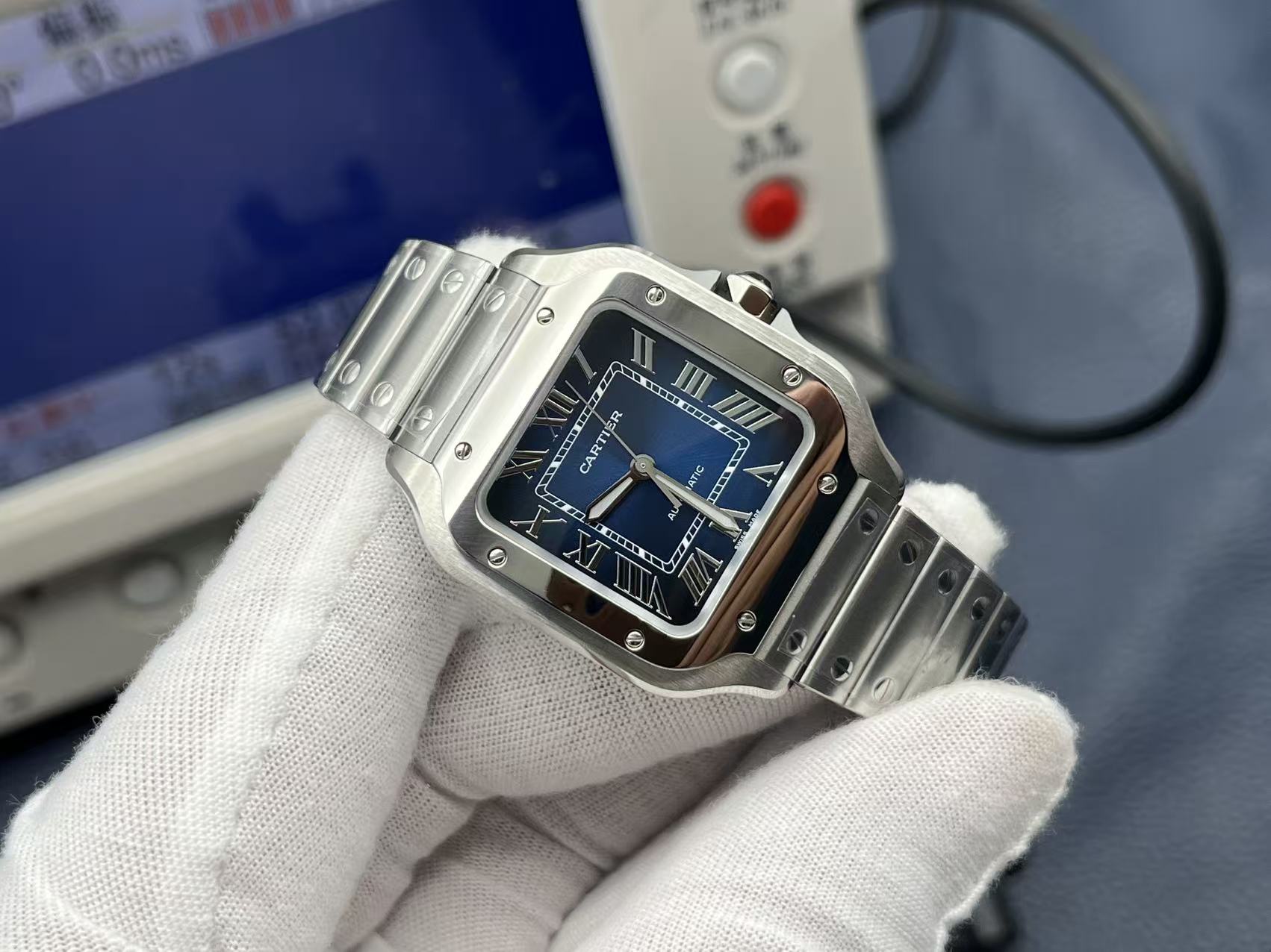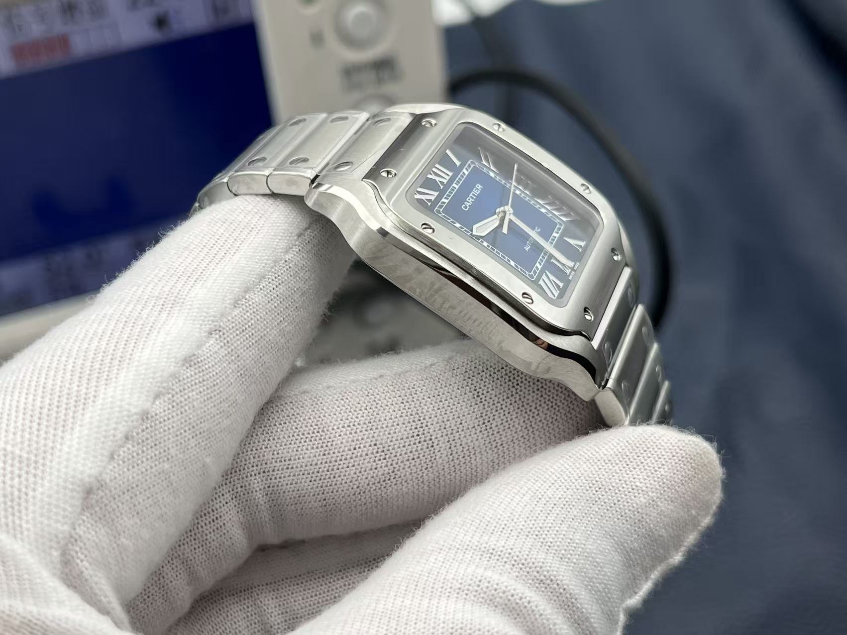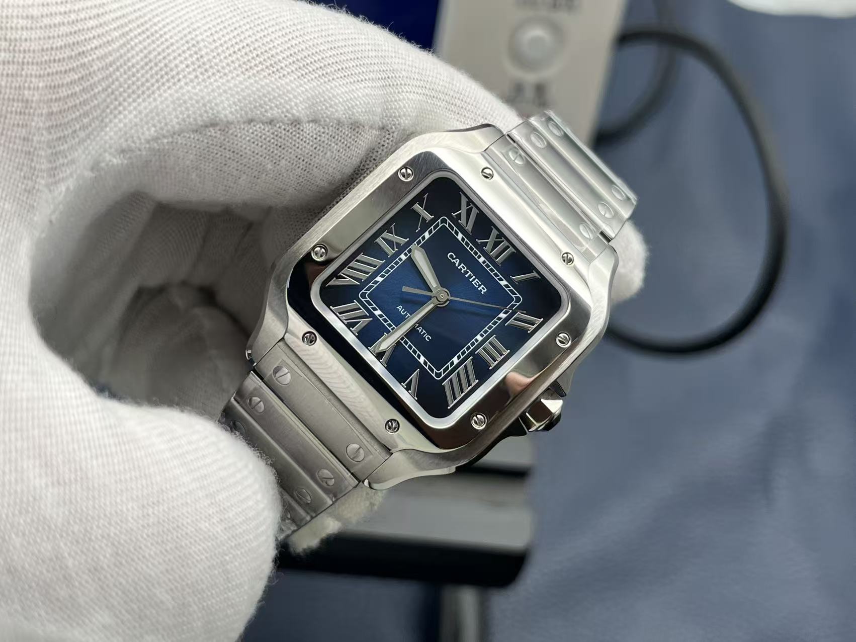 Cartier Santos de Cartier Series Automatic Mechanical Men’s Watch 35.1mm Blue Sunburst Dial Stainless Steel Case and Bracelet