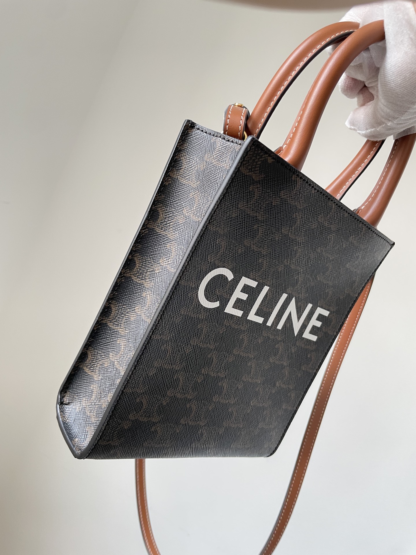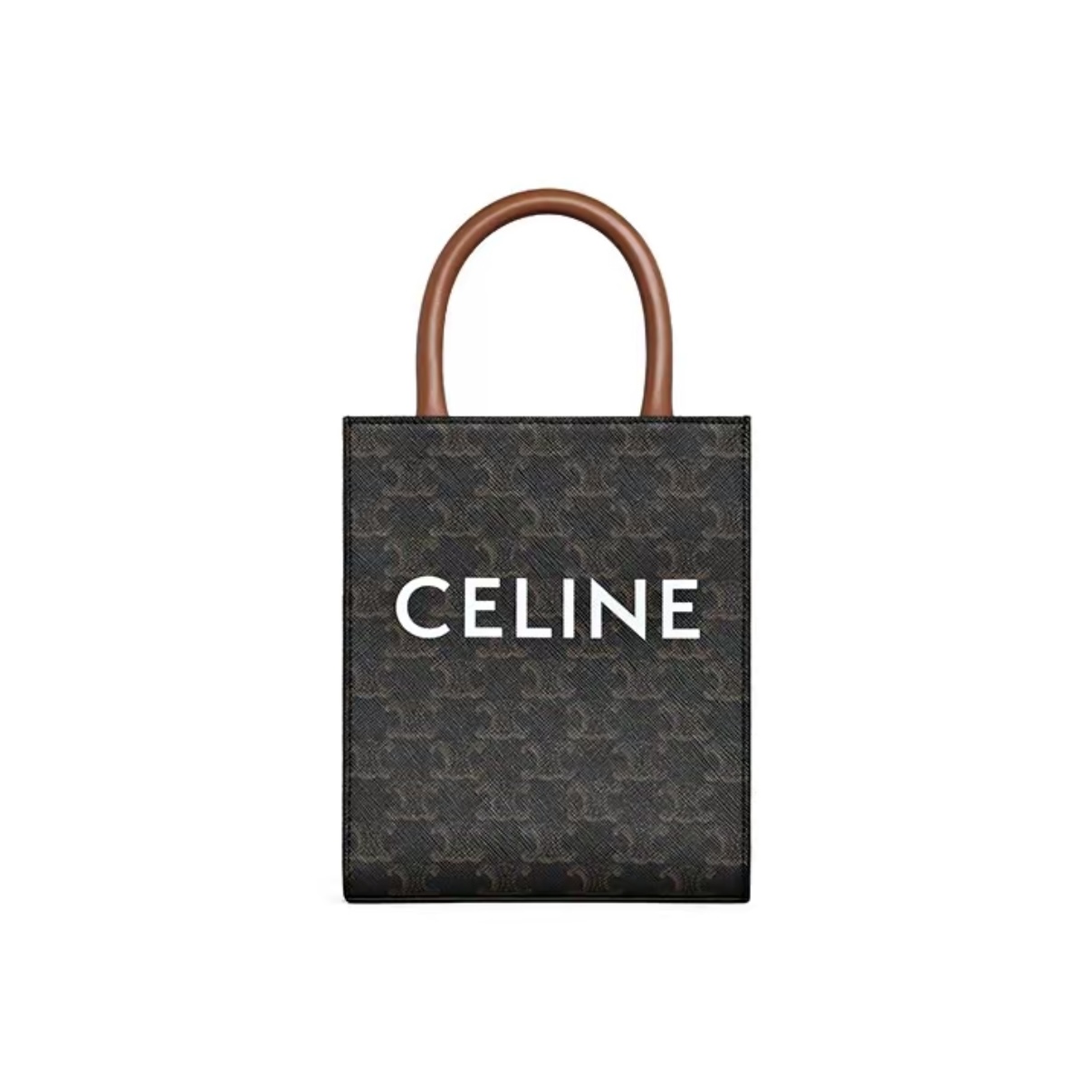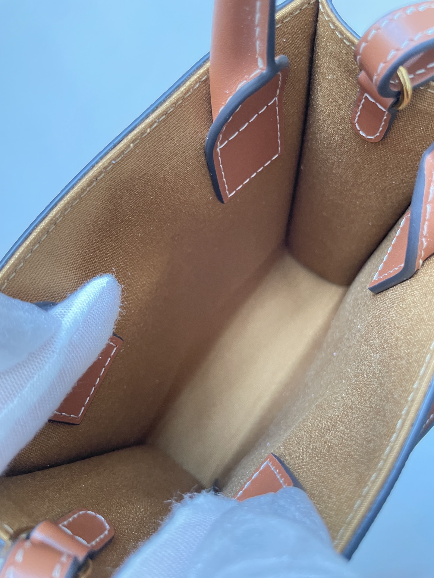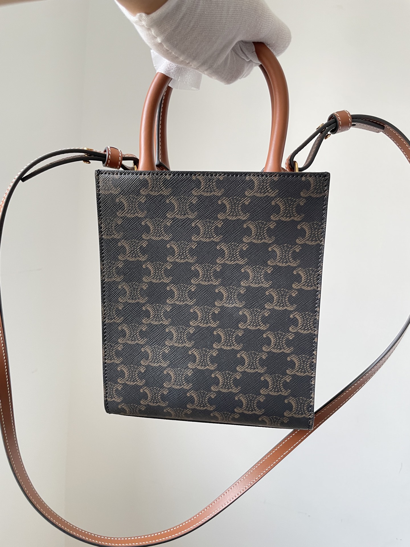 CELINE Cabas Triomphe Canvas Mini Tote Leather Trim Women Brown