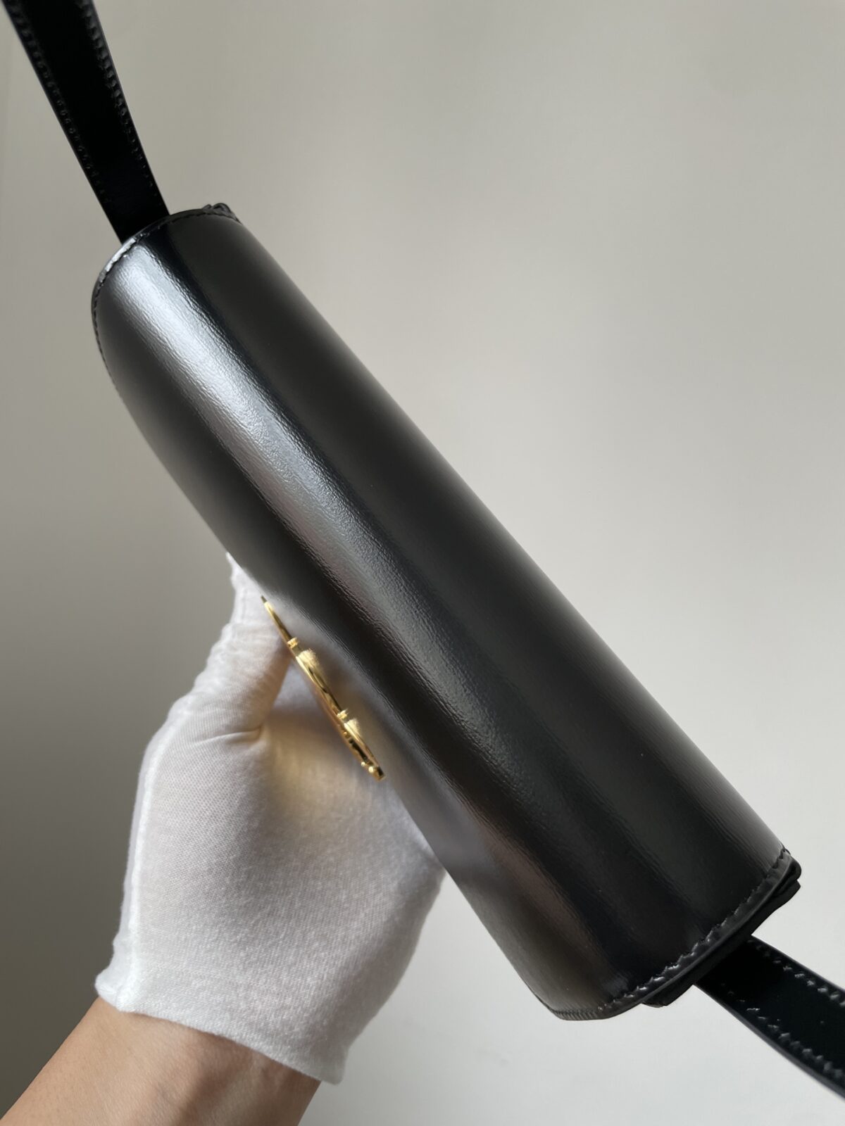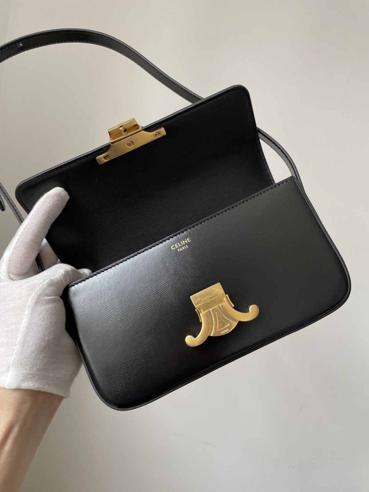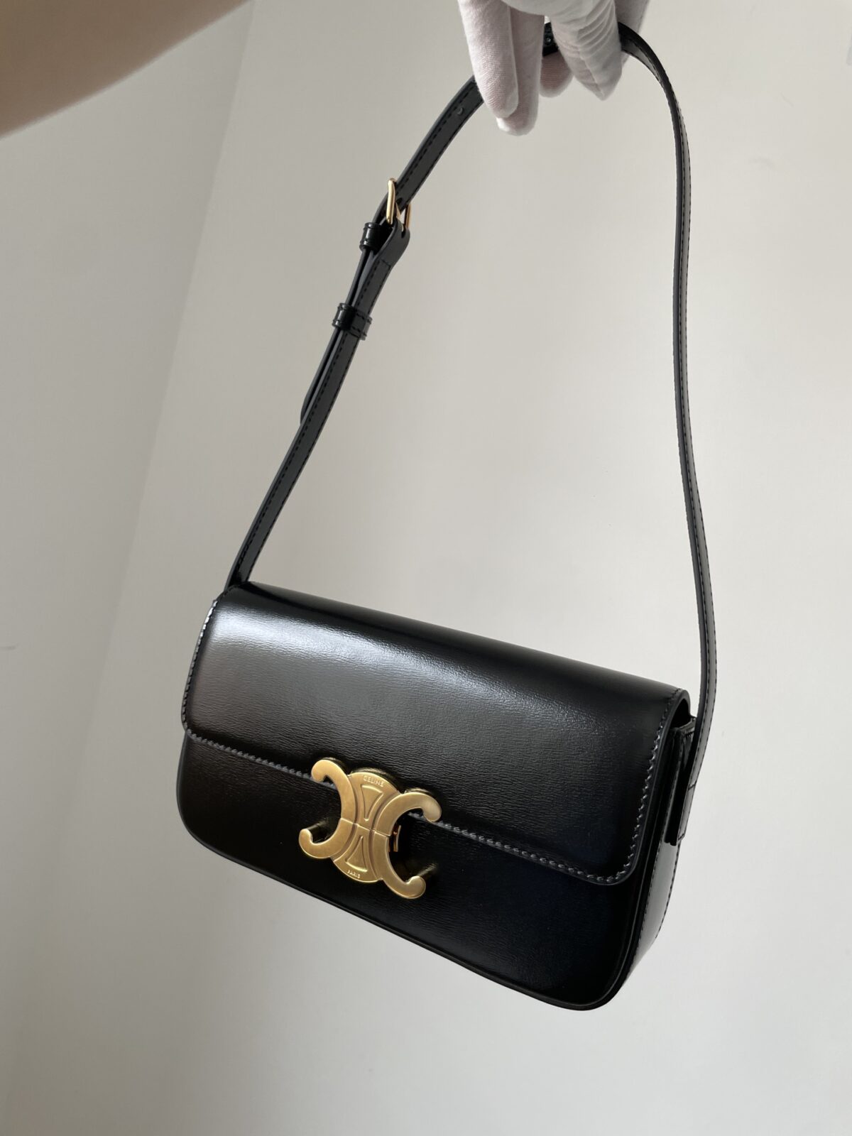 CELINE Triomphe Claude Shiny Calfskin Shoulder Bag Adjustable Strap Women Black