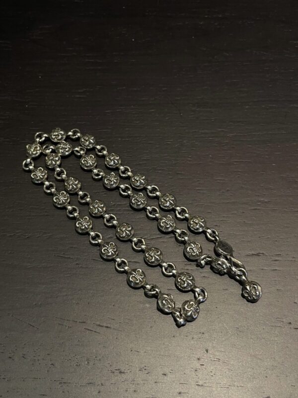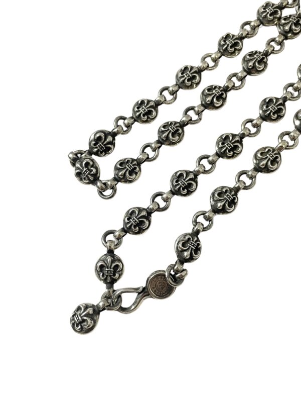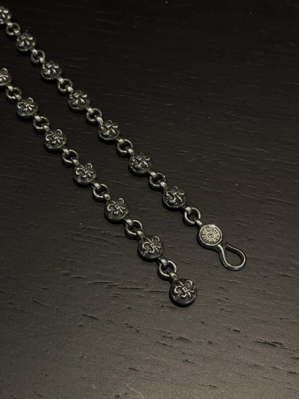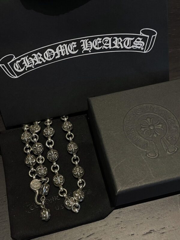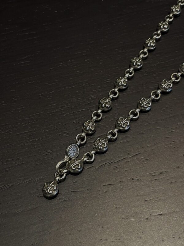 925 sterling silver chain with cross flower elements and bead links, finished with vintage oxidation craftsmanship. Each Chrome Hearts necklace is handcrafted from premium 925 sterling silver or plated gold, showcasing signature gothic crosses, sugar cube motifs, and gemstone accents. Designed for both men and women, these necklaces combine luxury craftsmanship with bold individuality.