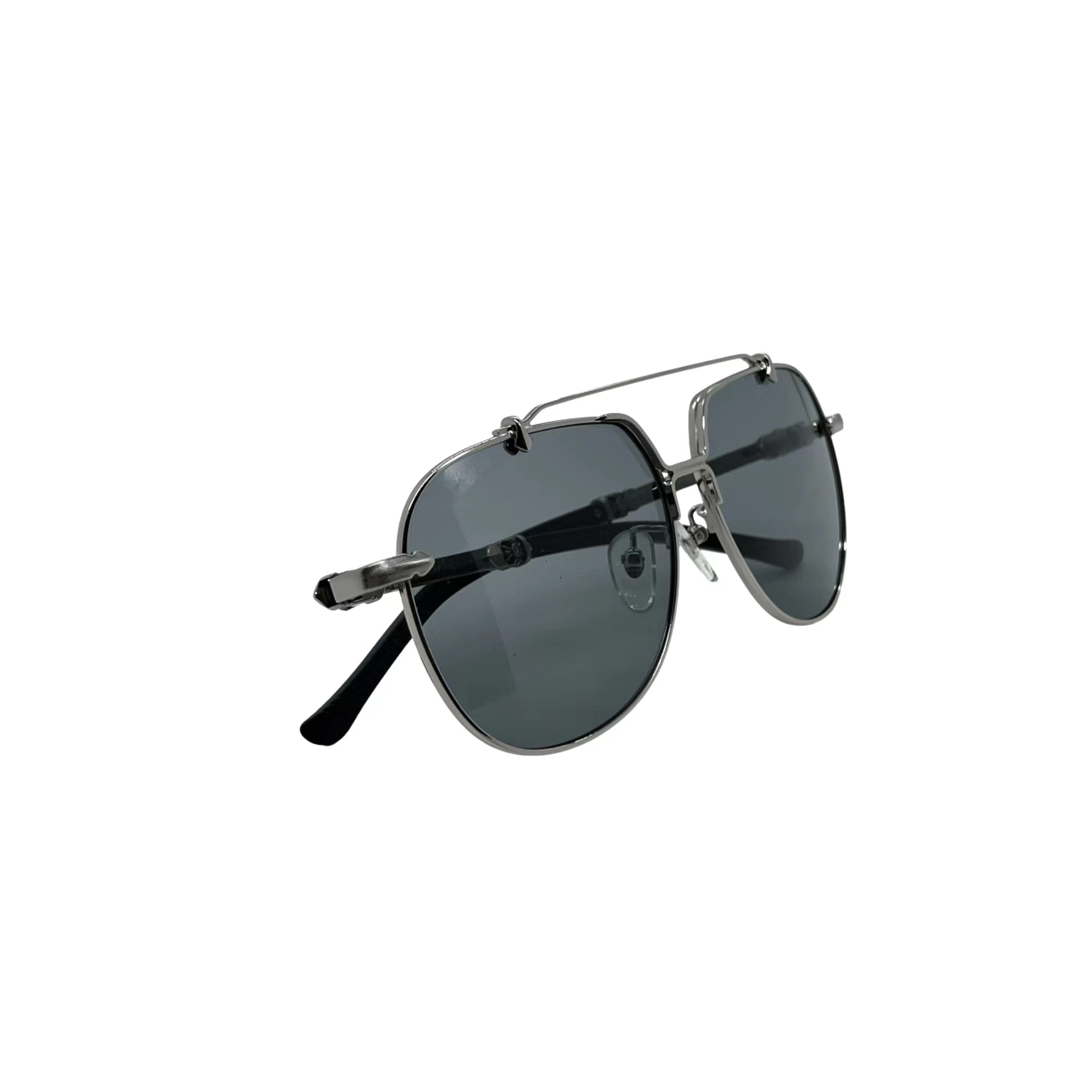 Round-frame polarized sunglasses with Chrome Hearts cross flower pattern. Stylish glare protection and comfort fit.