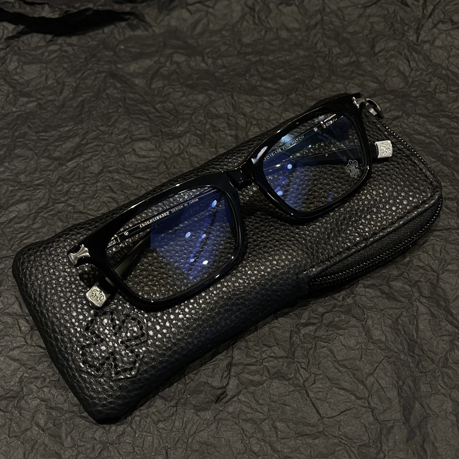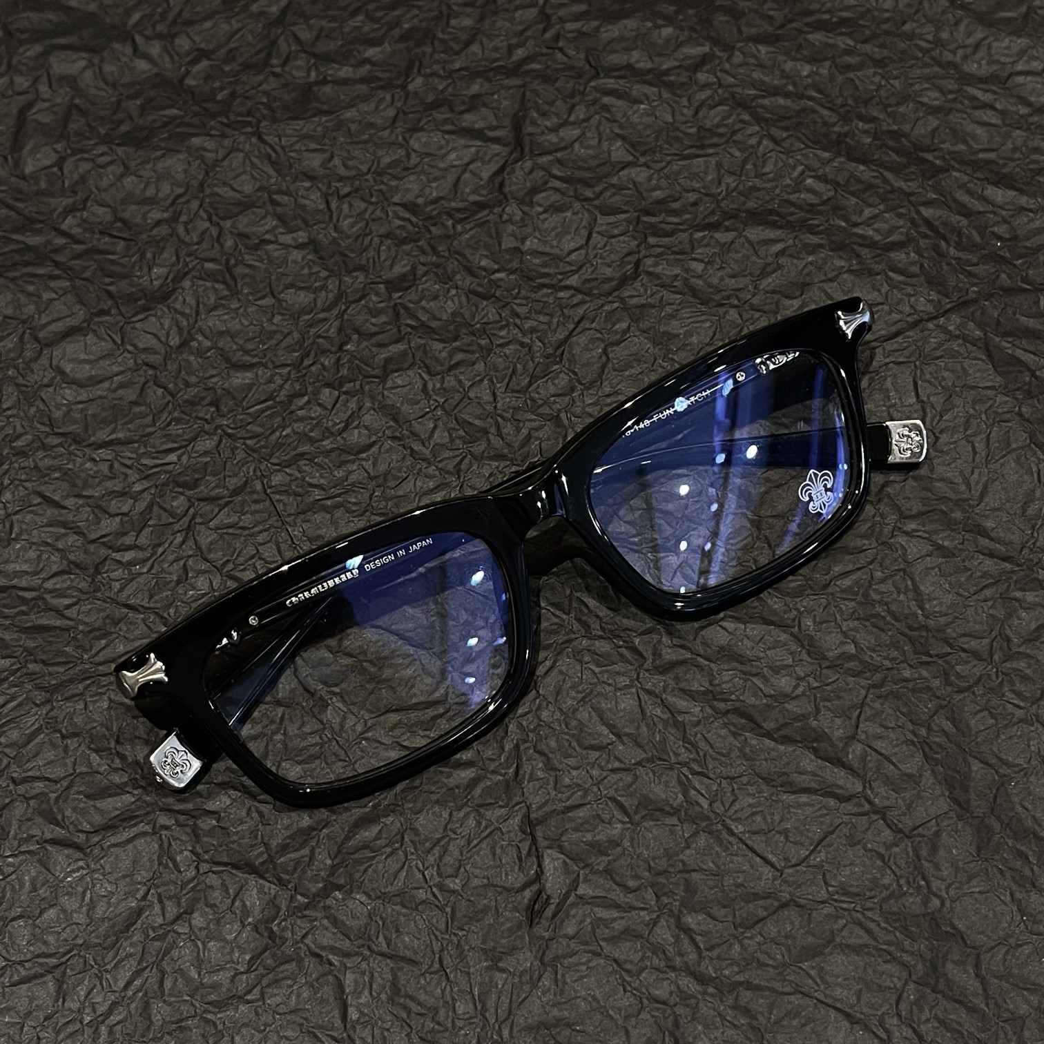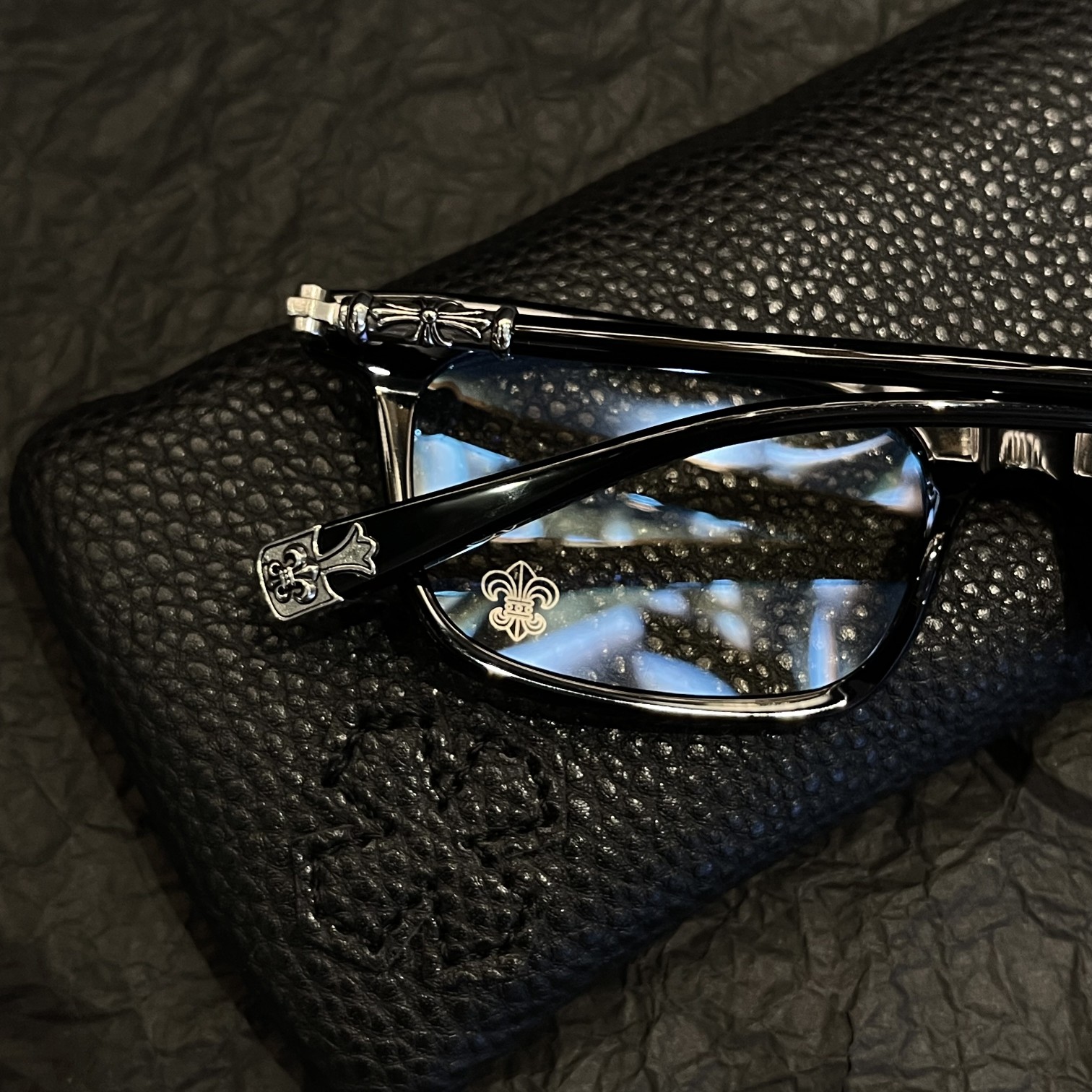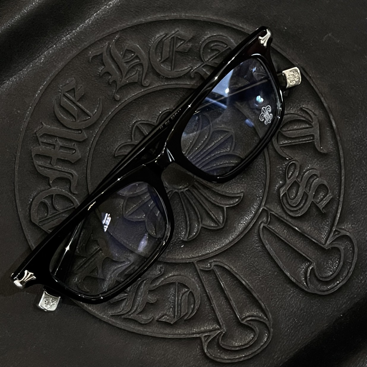 Classic engraved Chrome Hearts frame with detailed metal carving. Optical lenses for clarity and refined look. Handcrafted with Metal frame and Optical lenses.