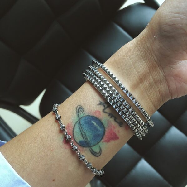 Crafted from high-quality 925 sterling silver, this Chrome Hearts studded bangle embodies rebellious elegance with its rugged design and polished metal finish.