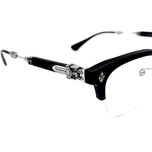 Distinctive sword-inspired temples add flair to these luxury Chrome Hearts optical glasses. Timeless style.