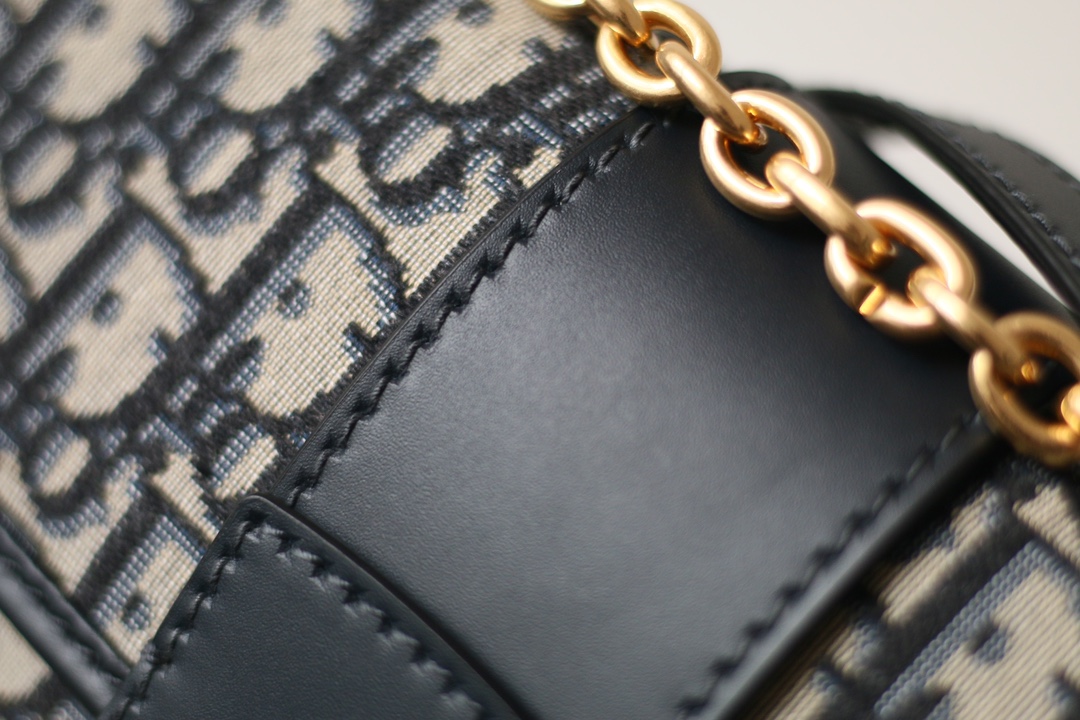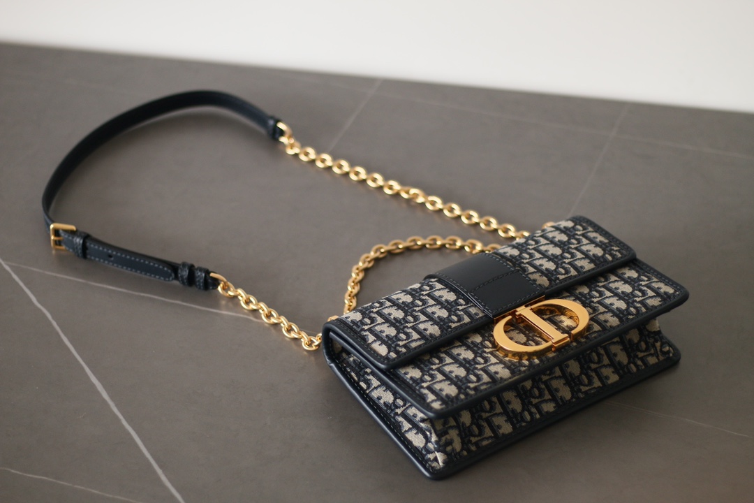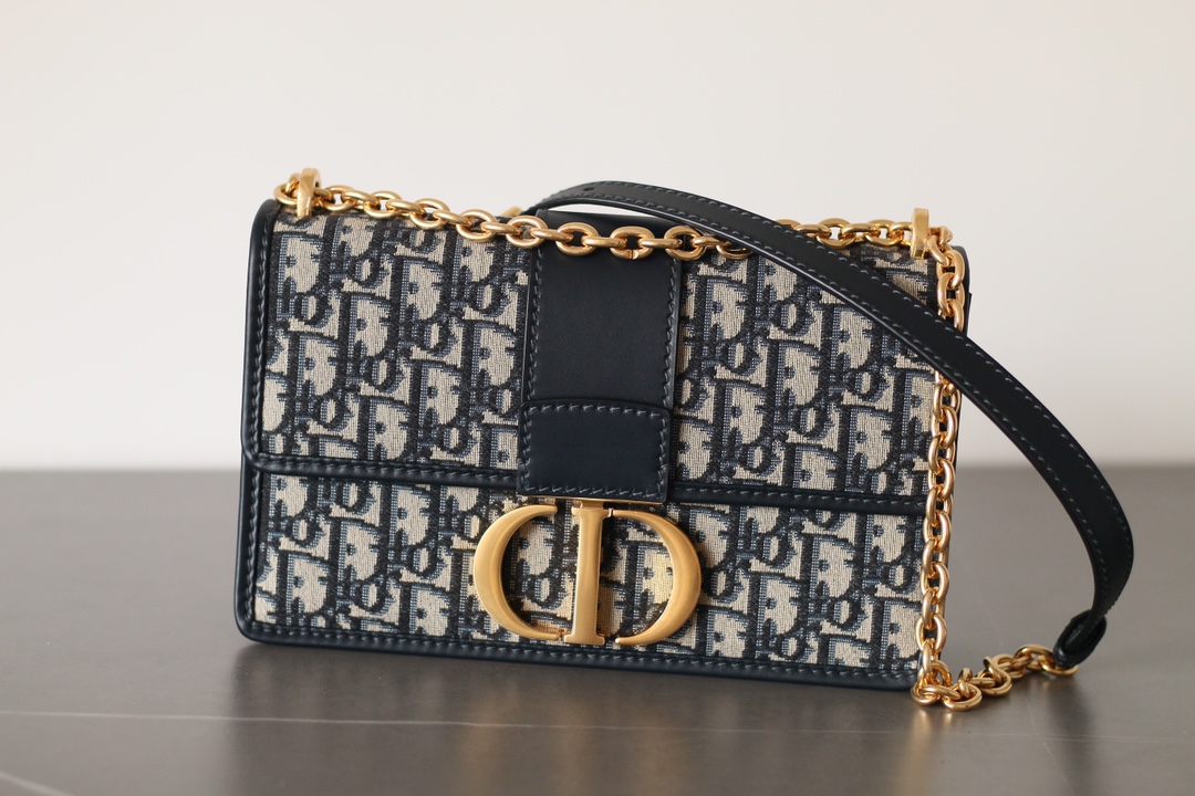 The Dior 30 Montaigne medium chain bag is a timeless expression of elegance and modern refinement, inspired by the historic address 30 Avenue Montaigne, the heart of the Dior legacy. Crafted from blue Oblique jacquard fabric combined with smooth calfskin leather and technical materials, it showcases the Maison’s dedication to detail and craftsmanship.