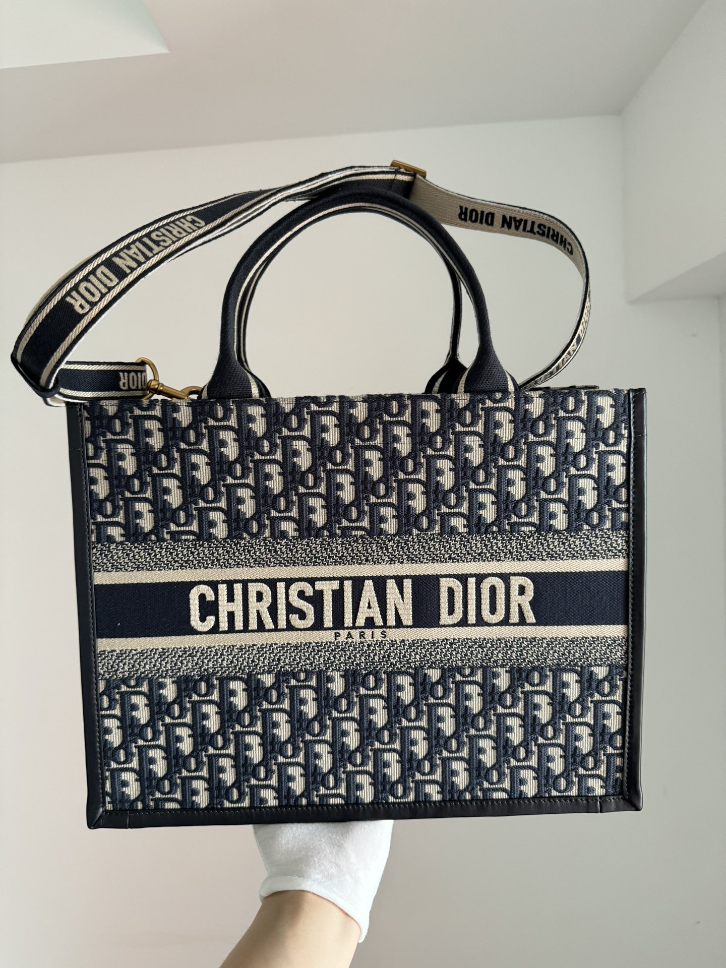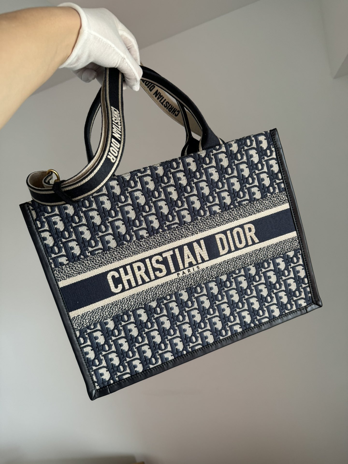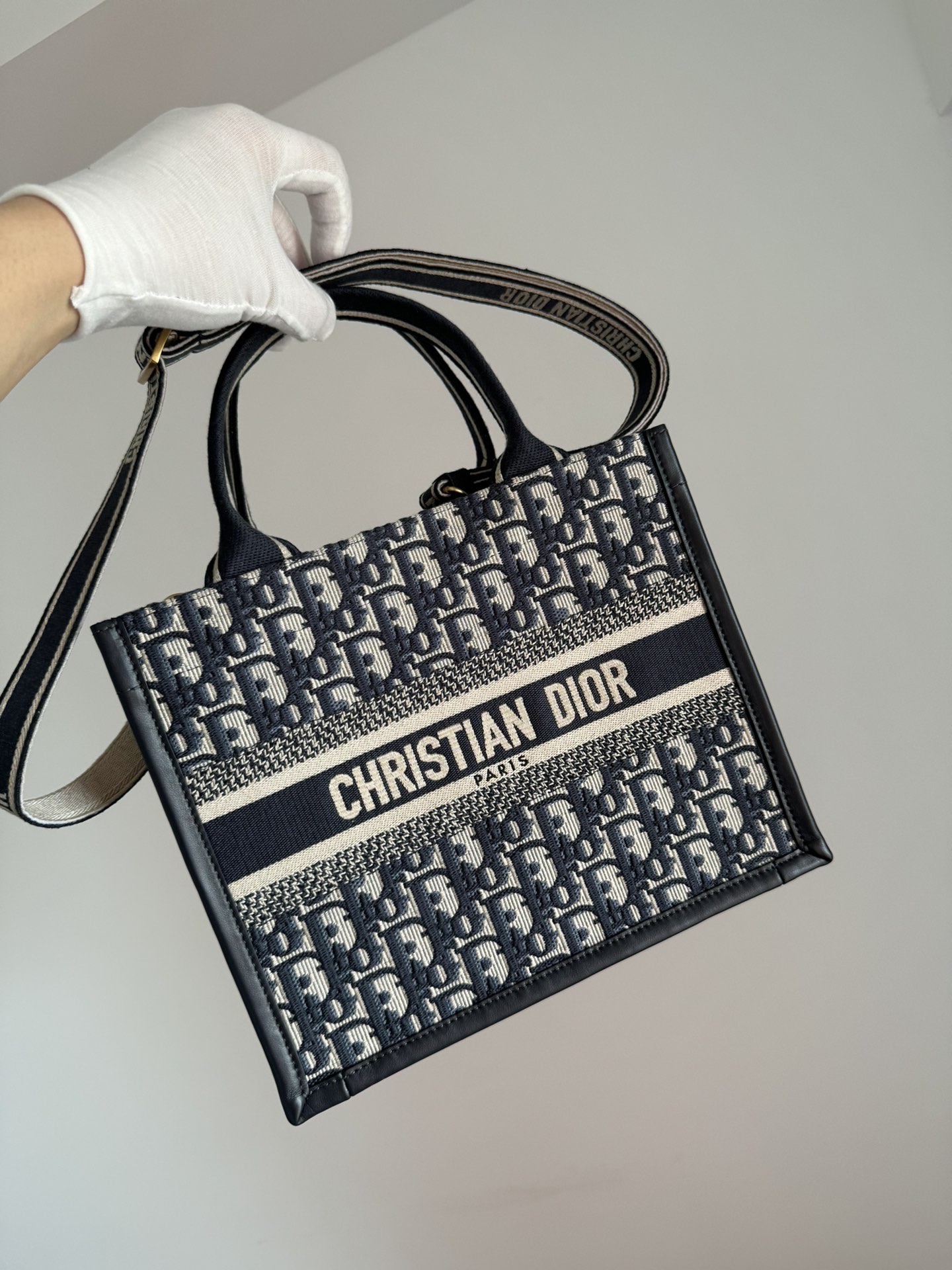 The Dior Book Tote medium bag is a refined expression of elegance and functionality, designed by Maria Grazia Chiuri as a signature piece in Dior’s modern collections. Expertly crafted from blue Oblique embroidered cotton fabric combined with smooth calfskin leather, it showcases the Maison’s exquisite craftsmanship and timeless aesthetic.