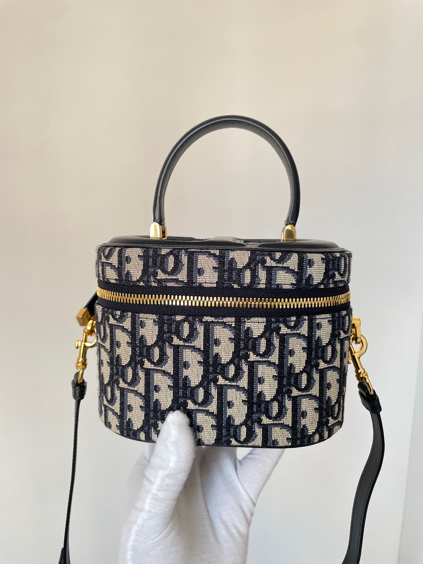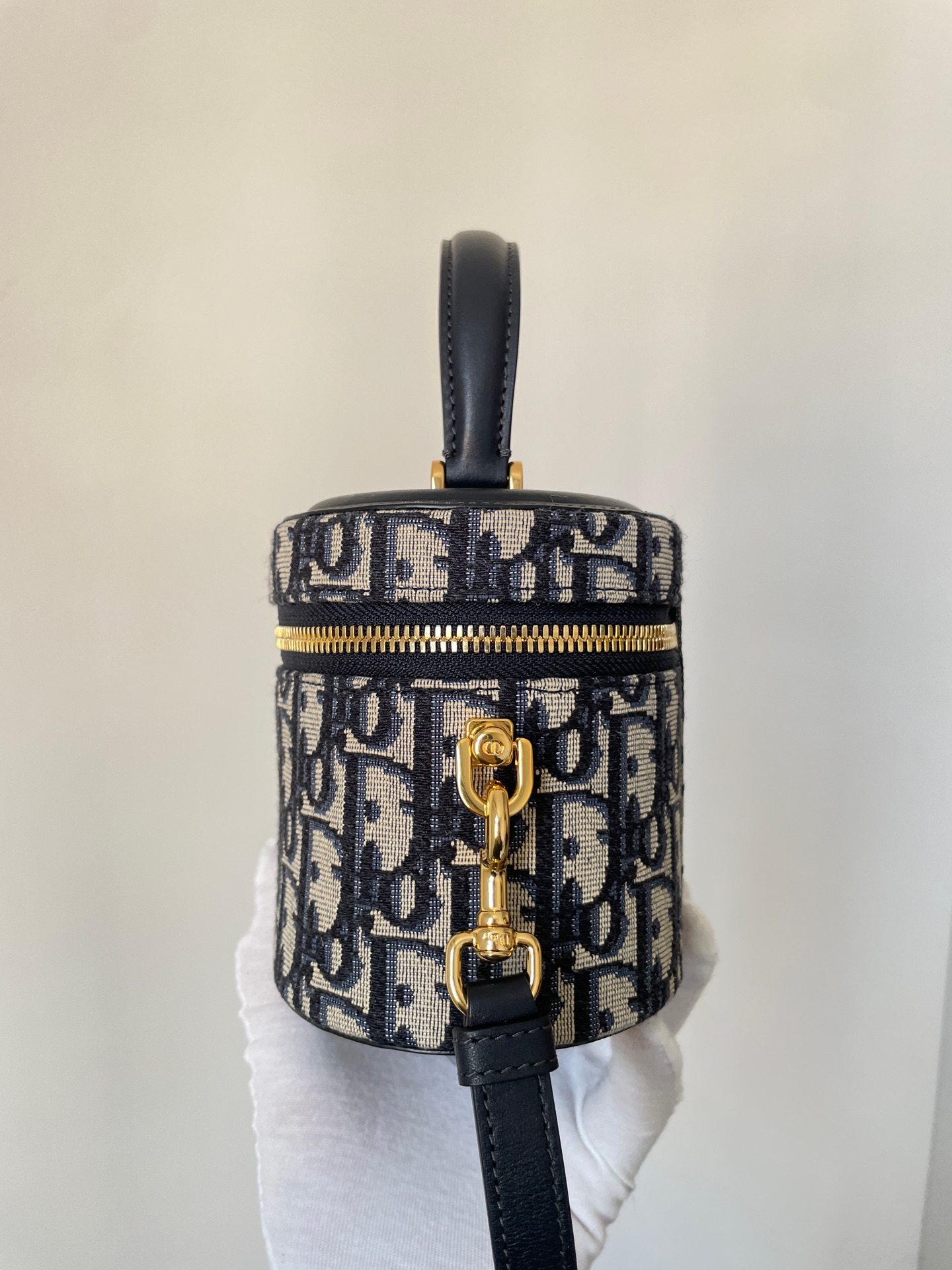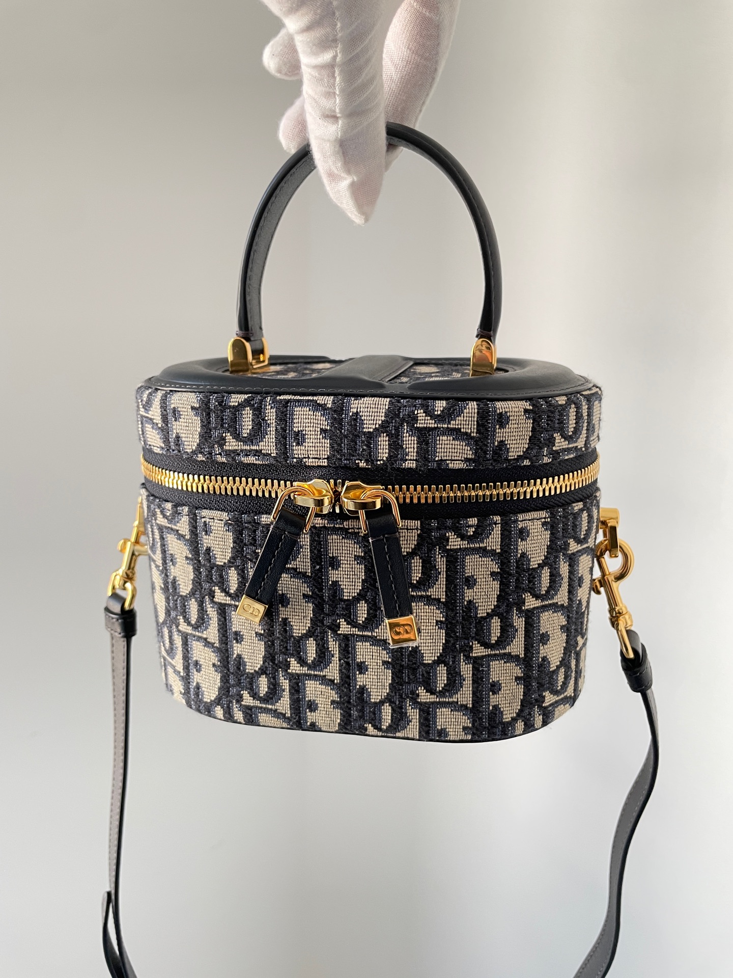 The Dior CD Signature Vanity bag is a sophisticated addition to Dior’s Travel collection, combining practicality and refined craftsmanship. Crafted from blue Oblique jacquard canvas and enhanced with smooth calfskin leather accents, this small vanity bag highlights Dior’s exceptional savoir-faire.