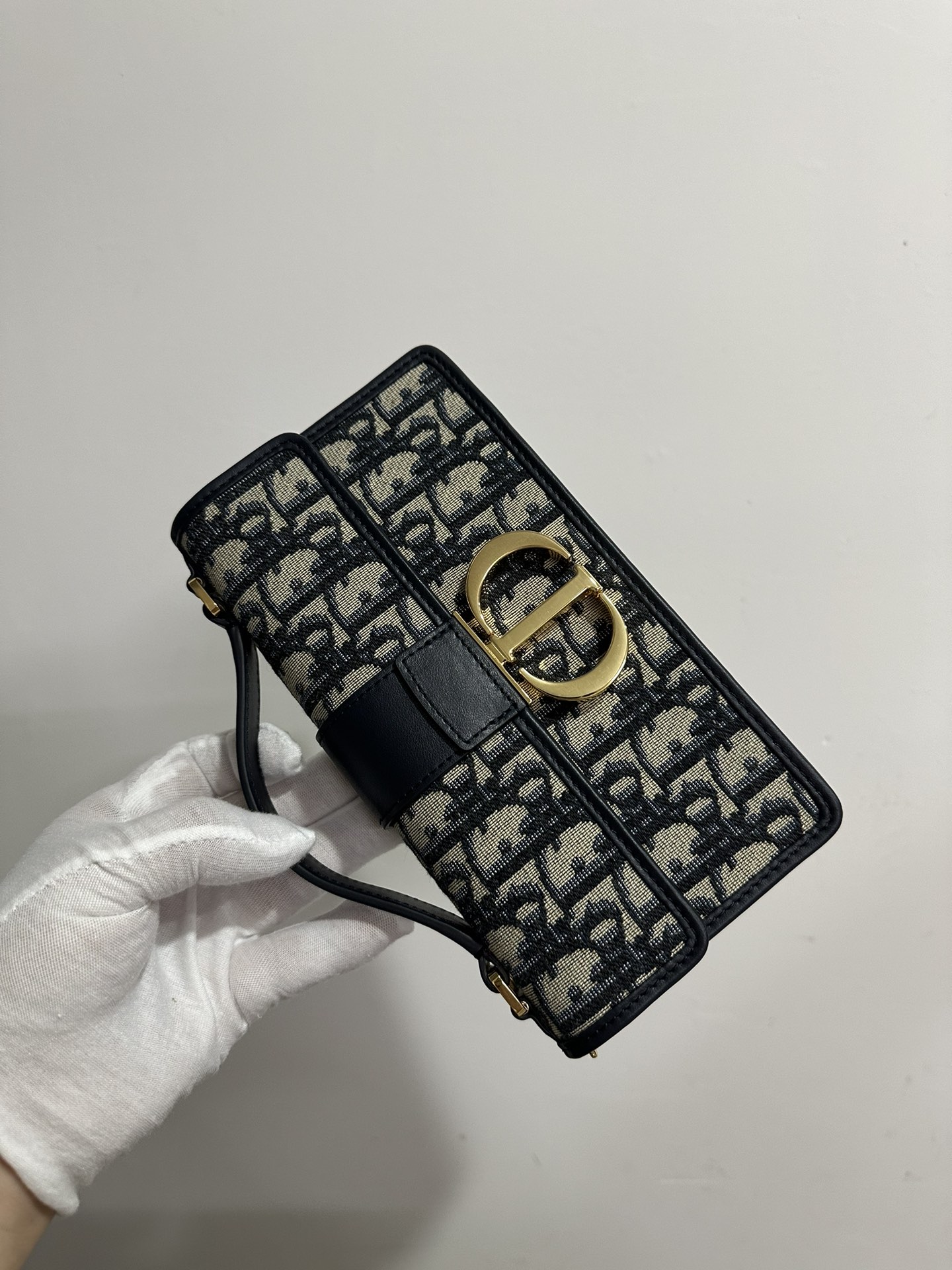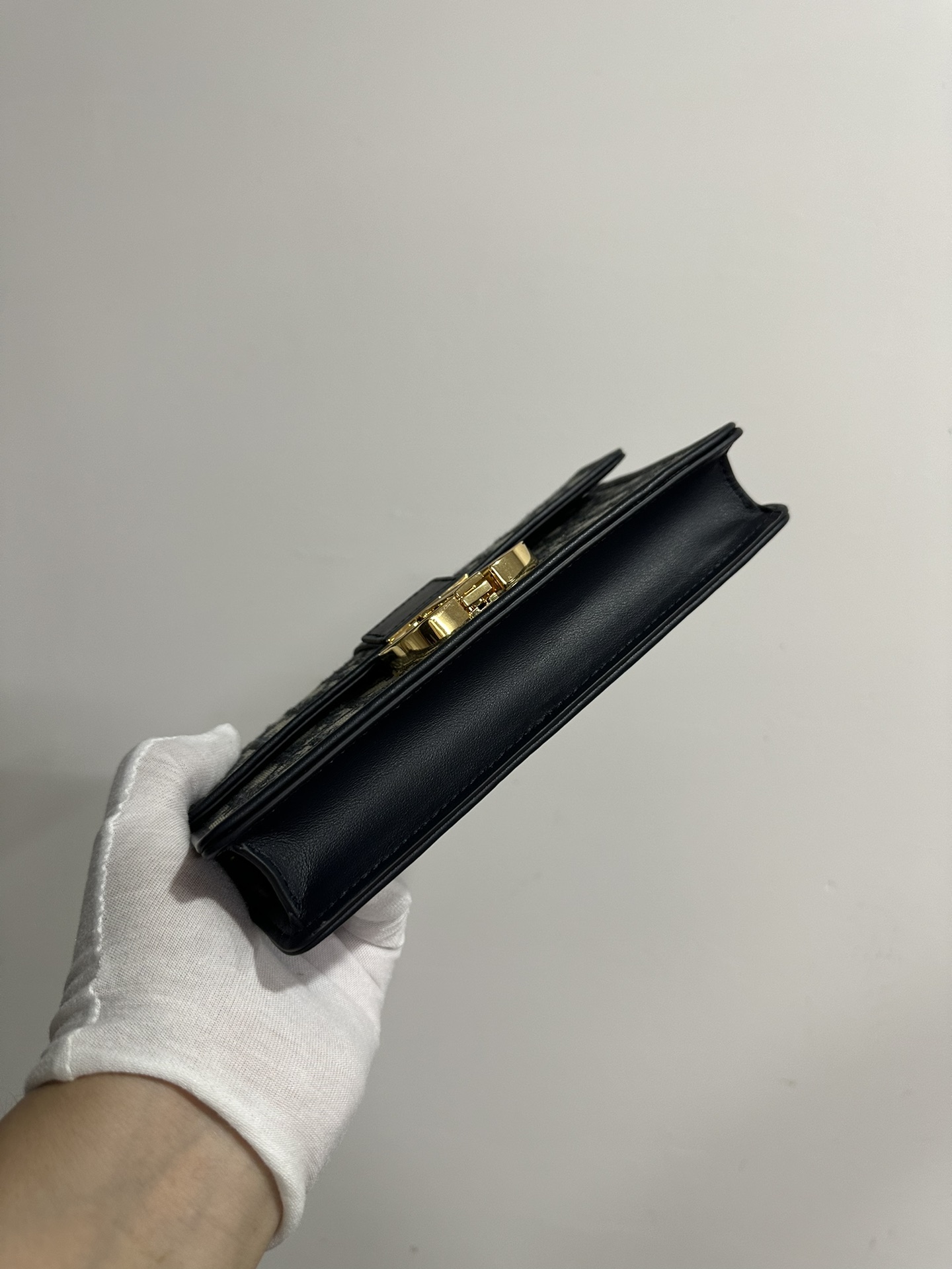 Its structured flap design is highlighted by a vintage gold-finish CD clasp—an emblem inspired by the cap of a classic Christian Dior perfume bottle. The interior is well organized, featuring one main compartment, a zip pocket, a slip pocket, and six card slots for everyday essentials.