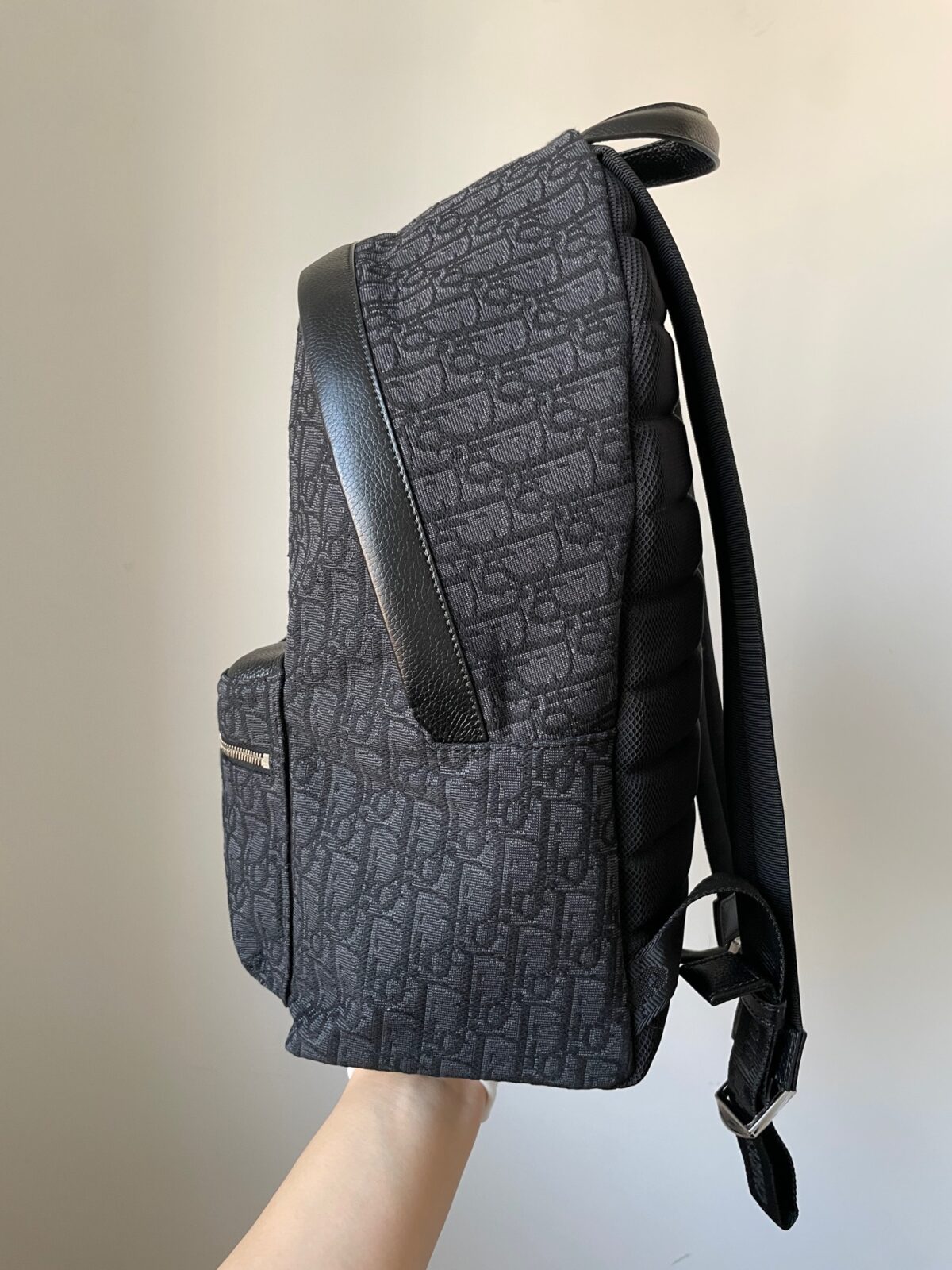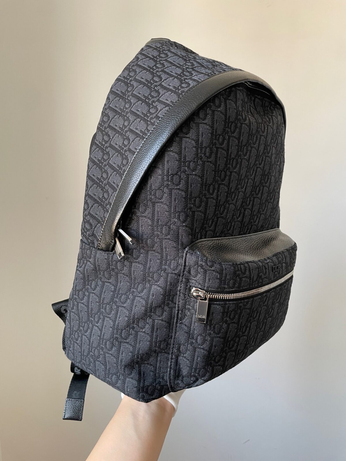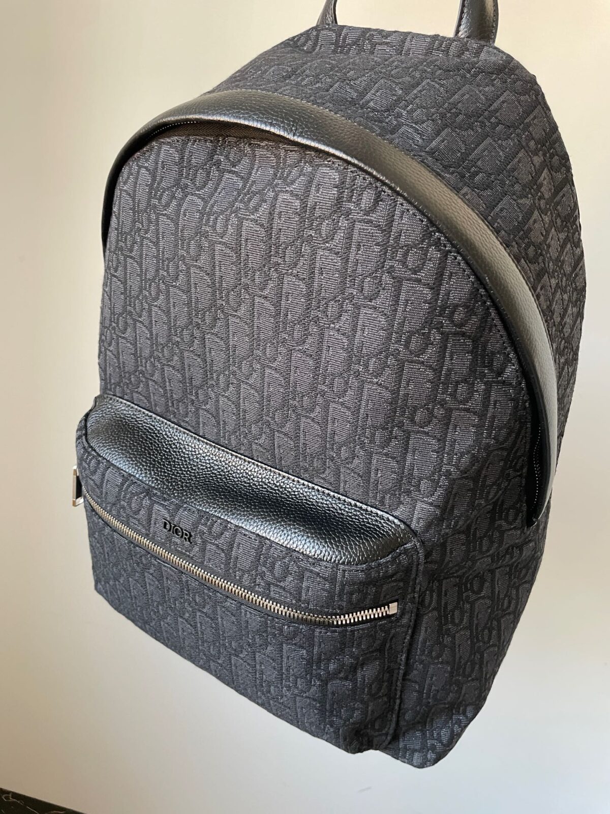 A leather top handle and subtle Dior logo detailing—embossed inside and displayed in rubber on the front—add an extra touch of sophistication. Durable yet stylish, this backpack is perfect for both professional and casual use.