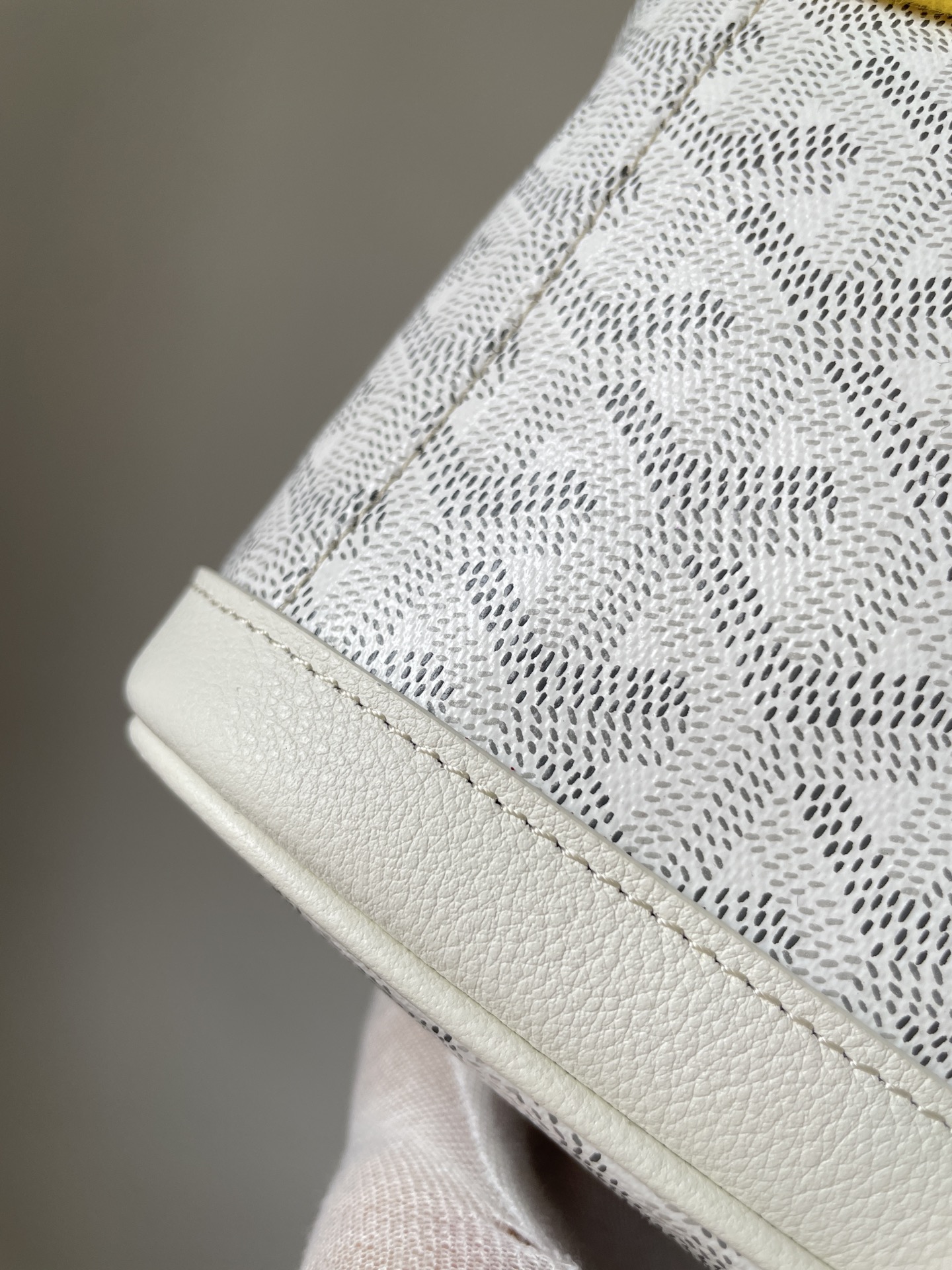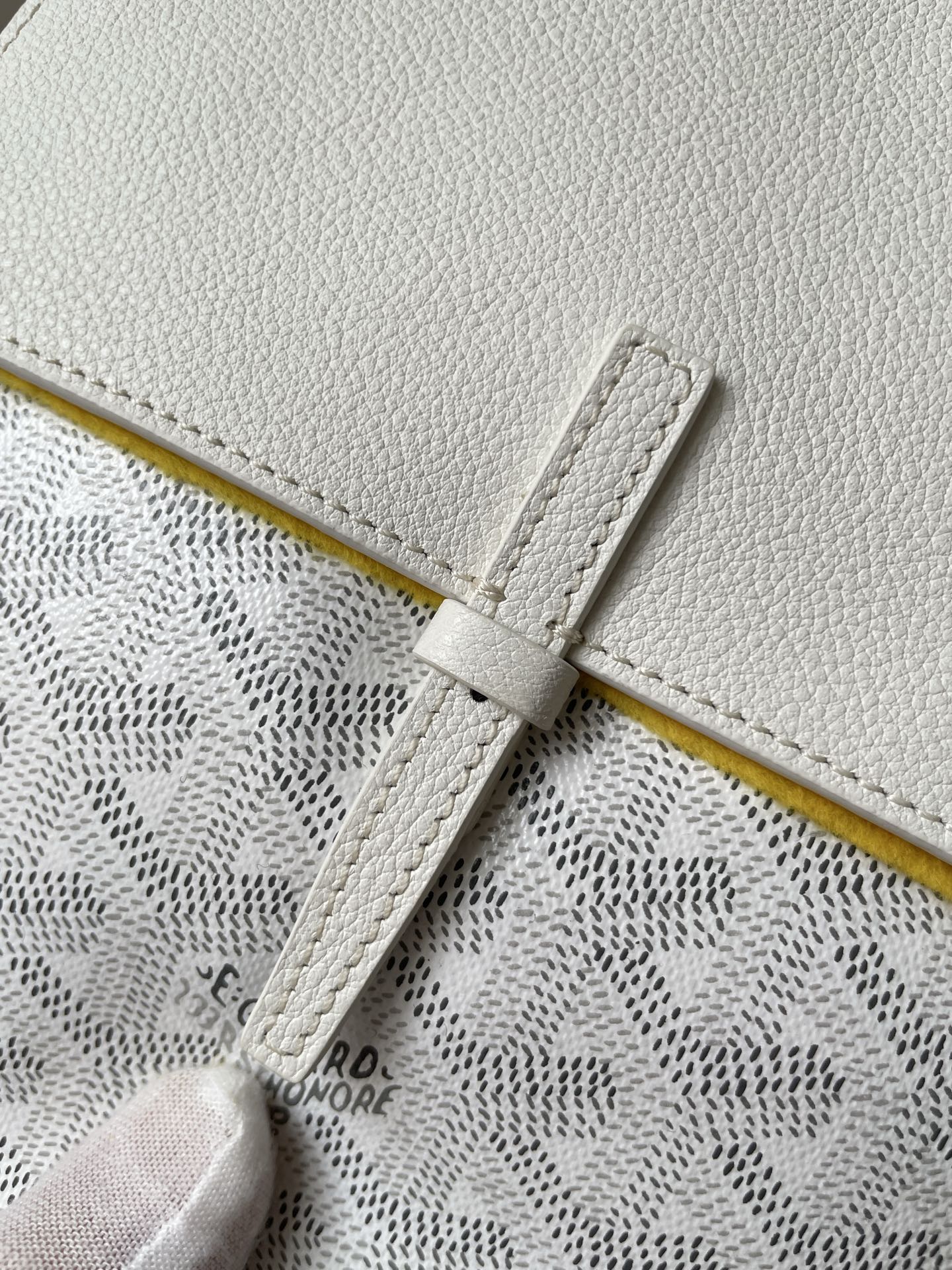 GOYARD Alpin Mini backpack in white canvas with leather trim — minimalist and elegant design.