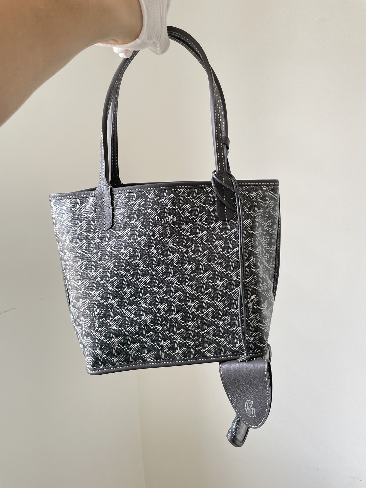 Goyard Anjou mini tote bag crafted from Y-pattern coated canvas with calf leather trim and reversible design — lightweight, elegant, and versatile.