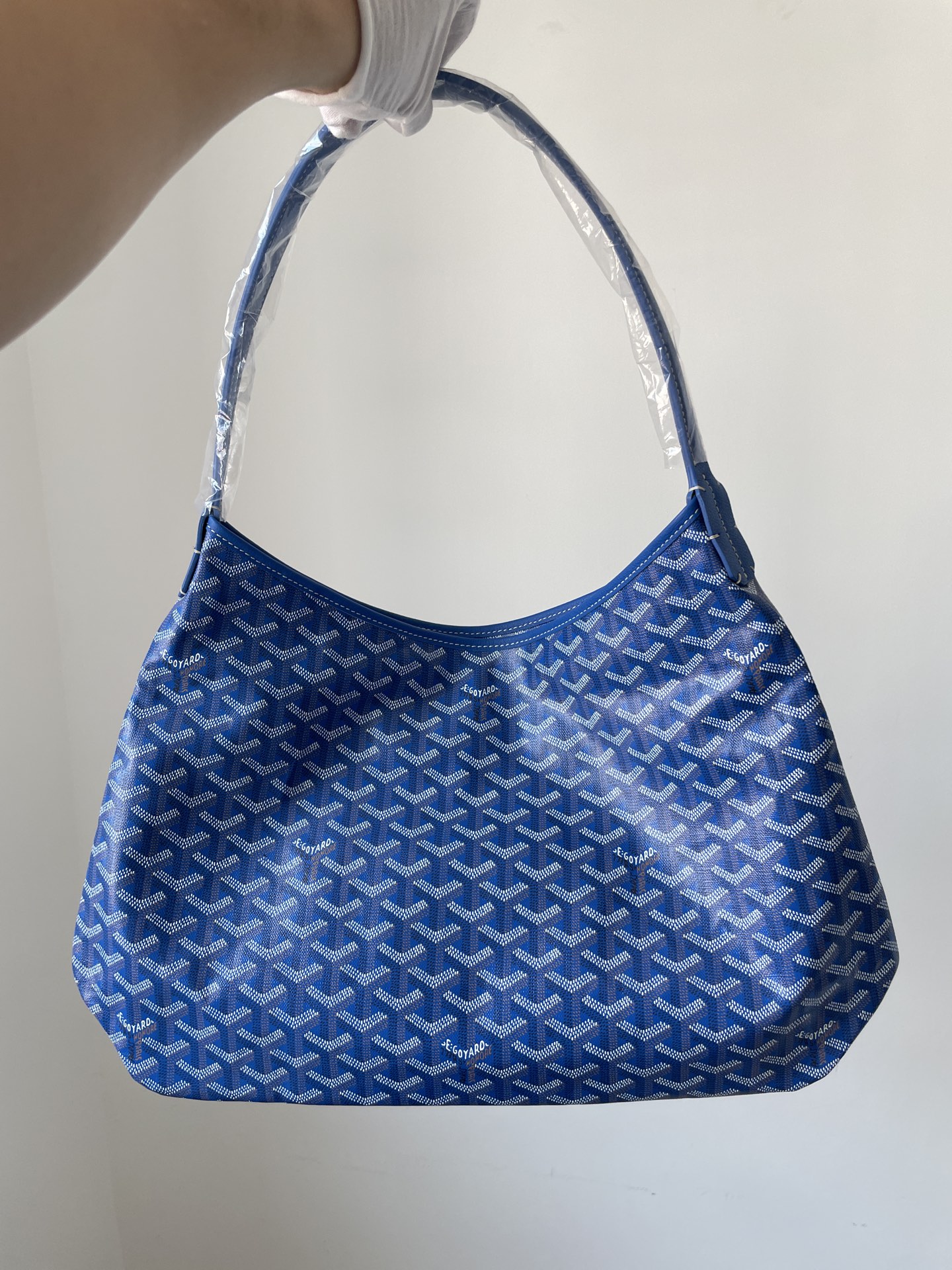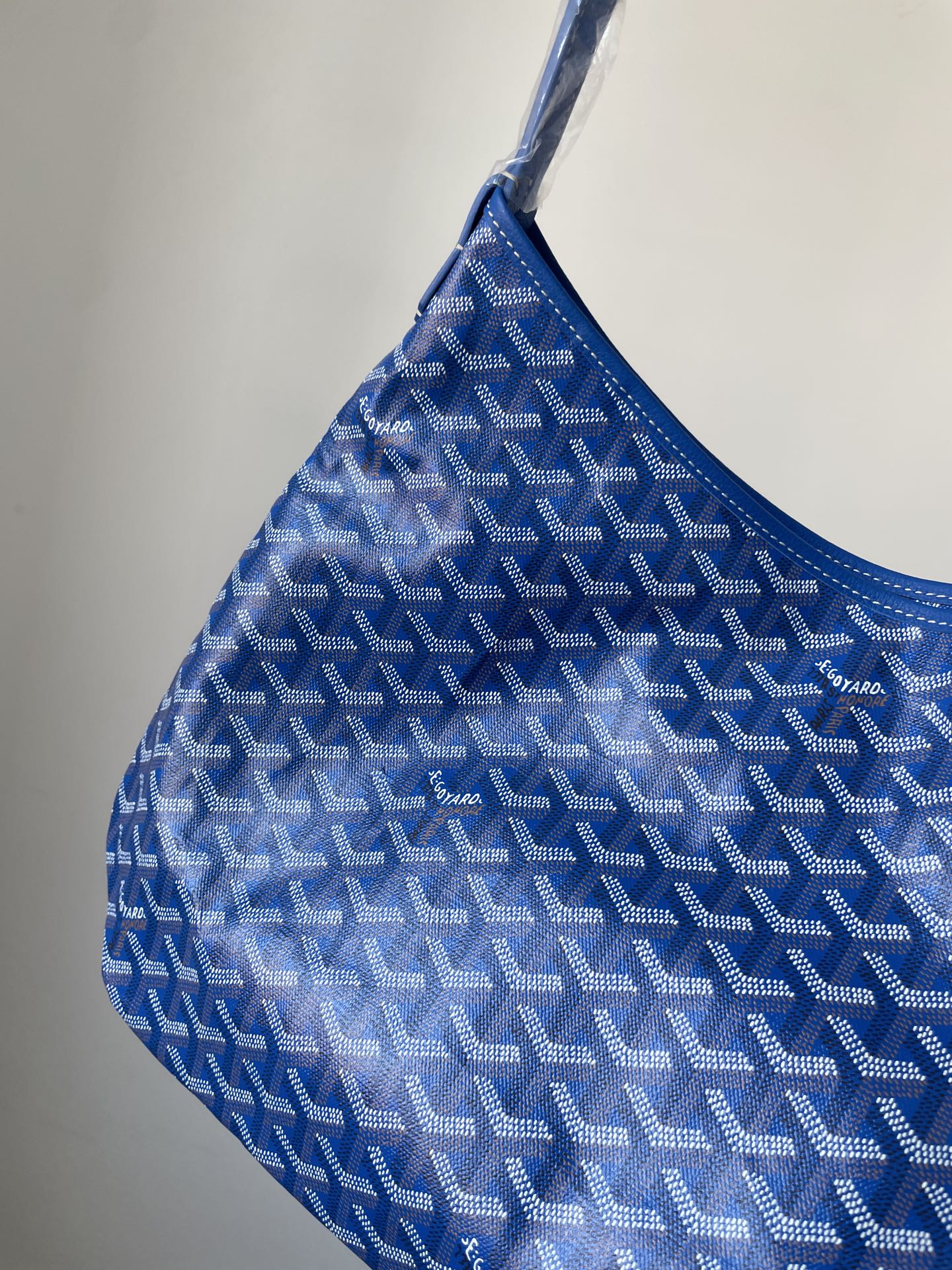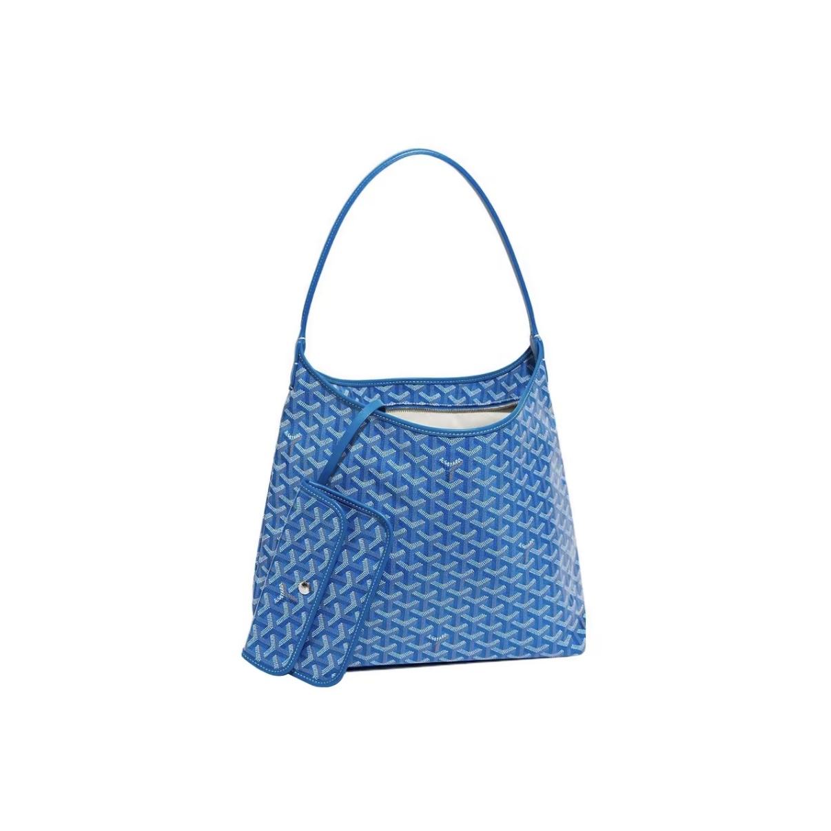 GOYARD Bohème Hobo in sky blue canvas with leather handle — soft curves and vibrant tone.