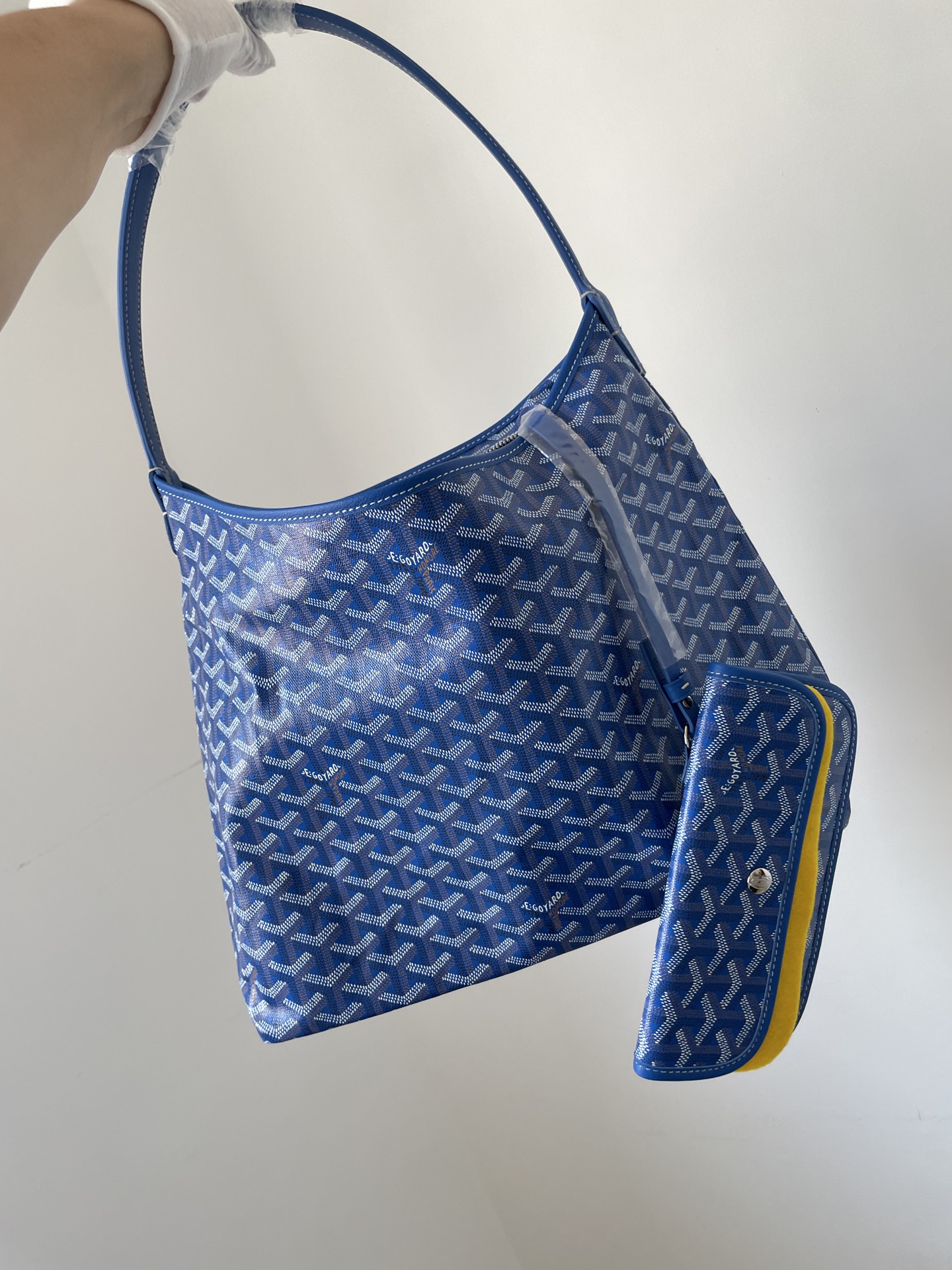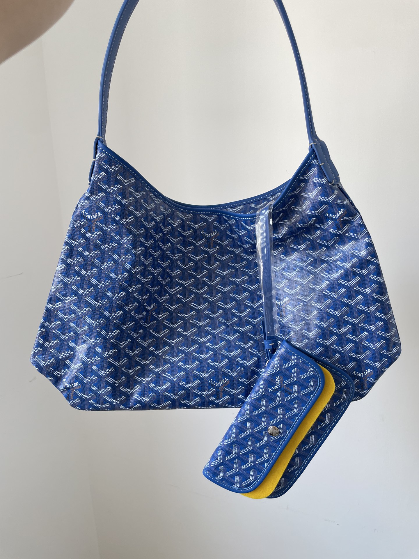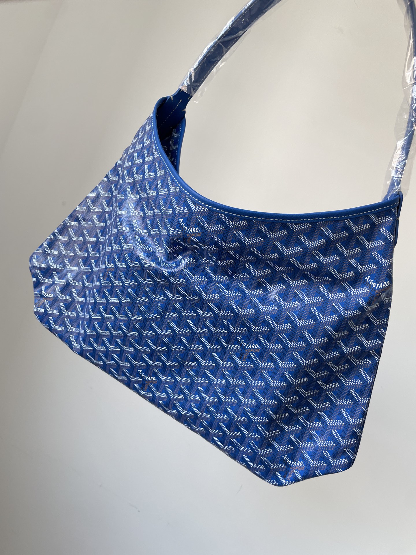 GOYARD Bohème Hobo in sky blue canvas with leather handle — soft curves and vibrant tone.