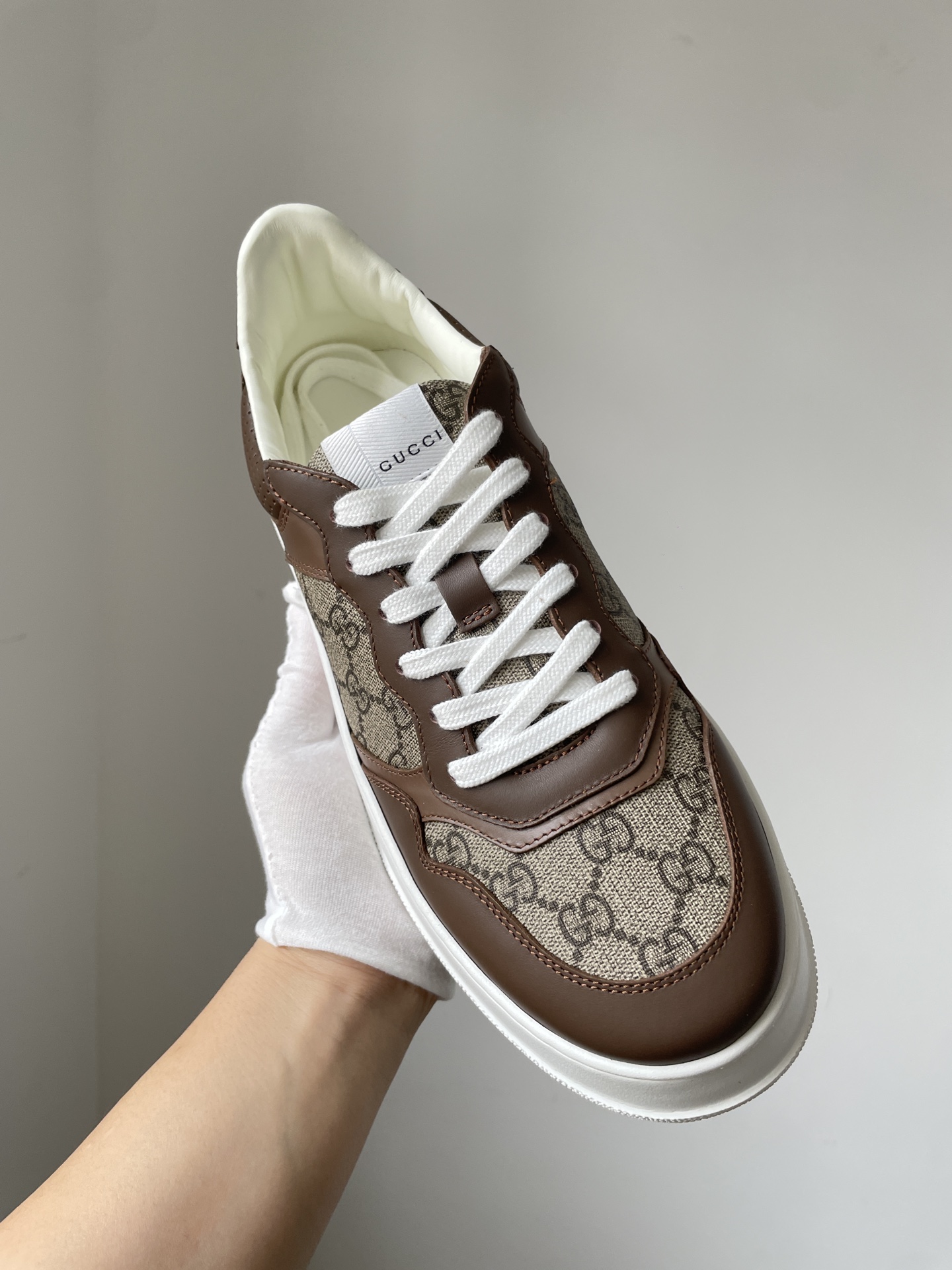 Gucci Chunky B Leather Lace-Up Sneakers Unisex Brown crafted from premium materials with Gucci’s signature vintage details, offering comfort and timeless street style.