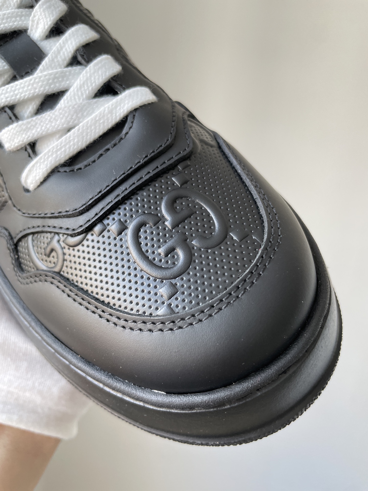Gucci Chunky B Leather Round Toe Sneakers Men Black crafted with premium materials, showcasing Gucci’s luxury craftsmanship and timeless style. Perfect for fashion-forward looks.