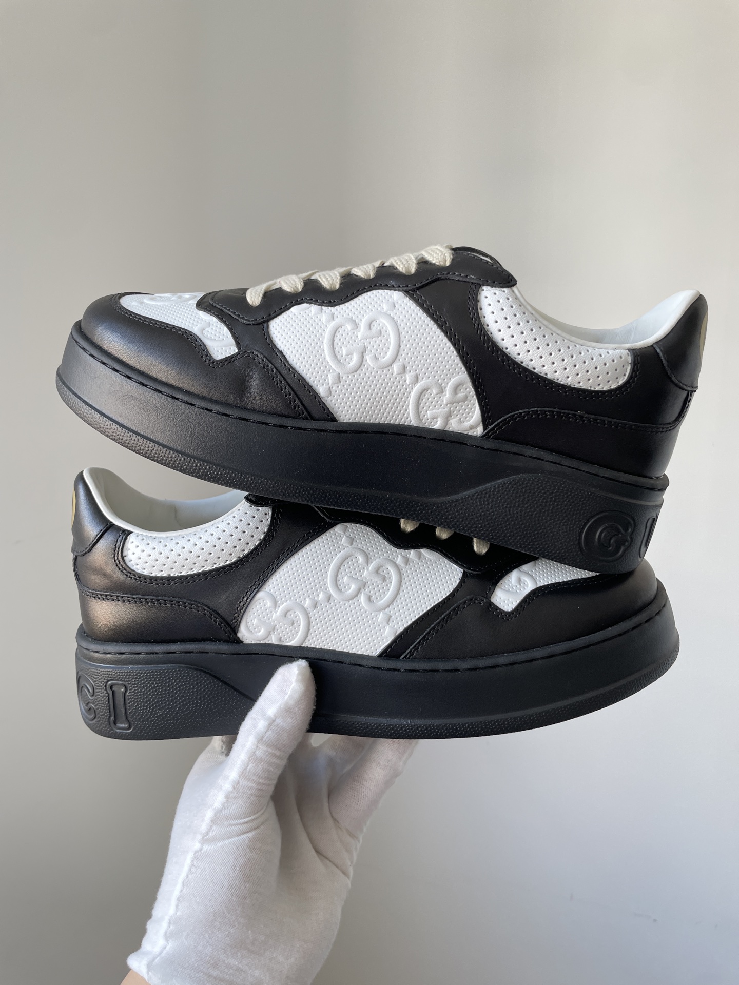 Gucci Chunky GG Embossed Panda Sneakers Unisex Black White crafted with premium materials, showcasing Gucci’s luxury craftsmanship and timeless style. Perfect for fashion-forward looks.