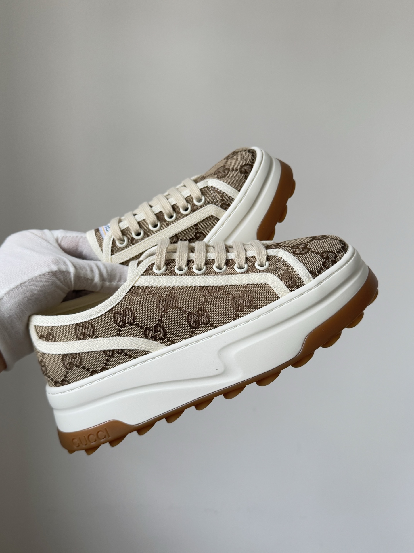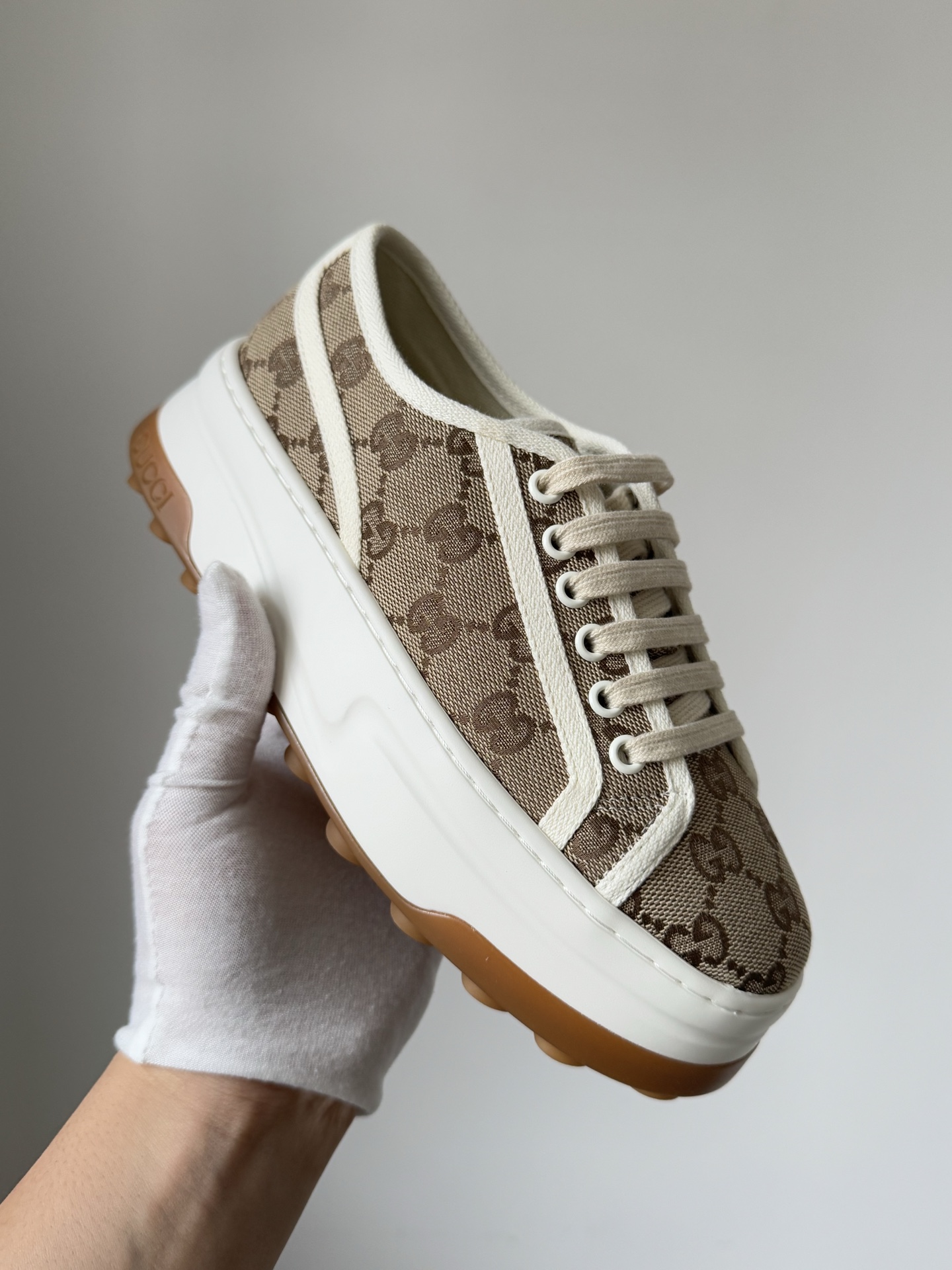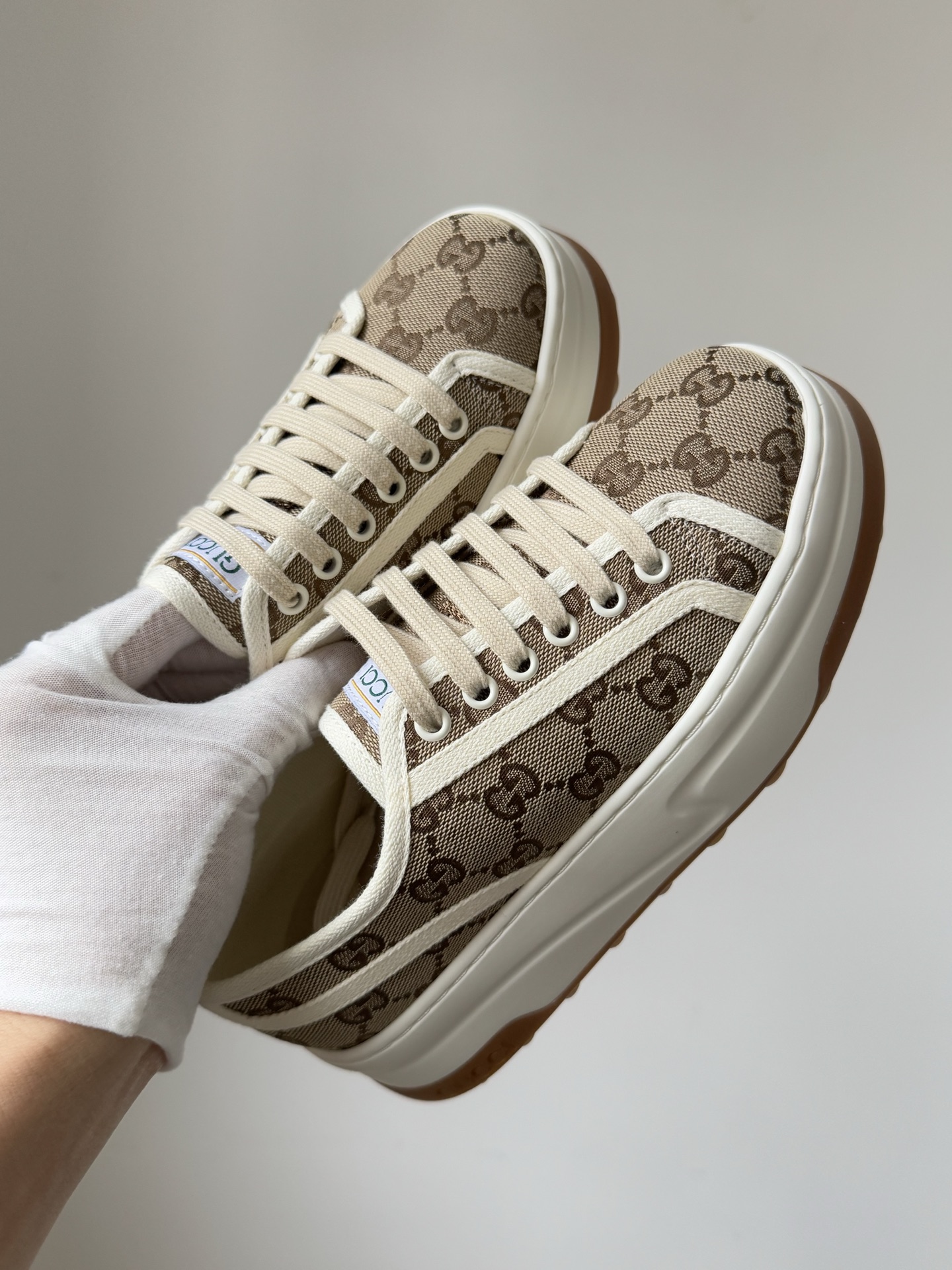 Gucci Interlocking Lace-Up Sneakers 5.5cm Unisex White Brown crafted with premium materials, showcasing Gucci’s luxury craftsmanship and timeless style. Perfect for fashion-forward looks.