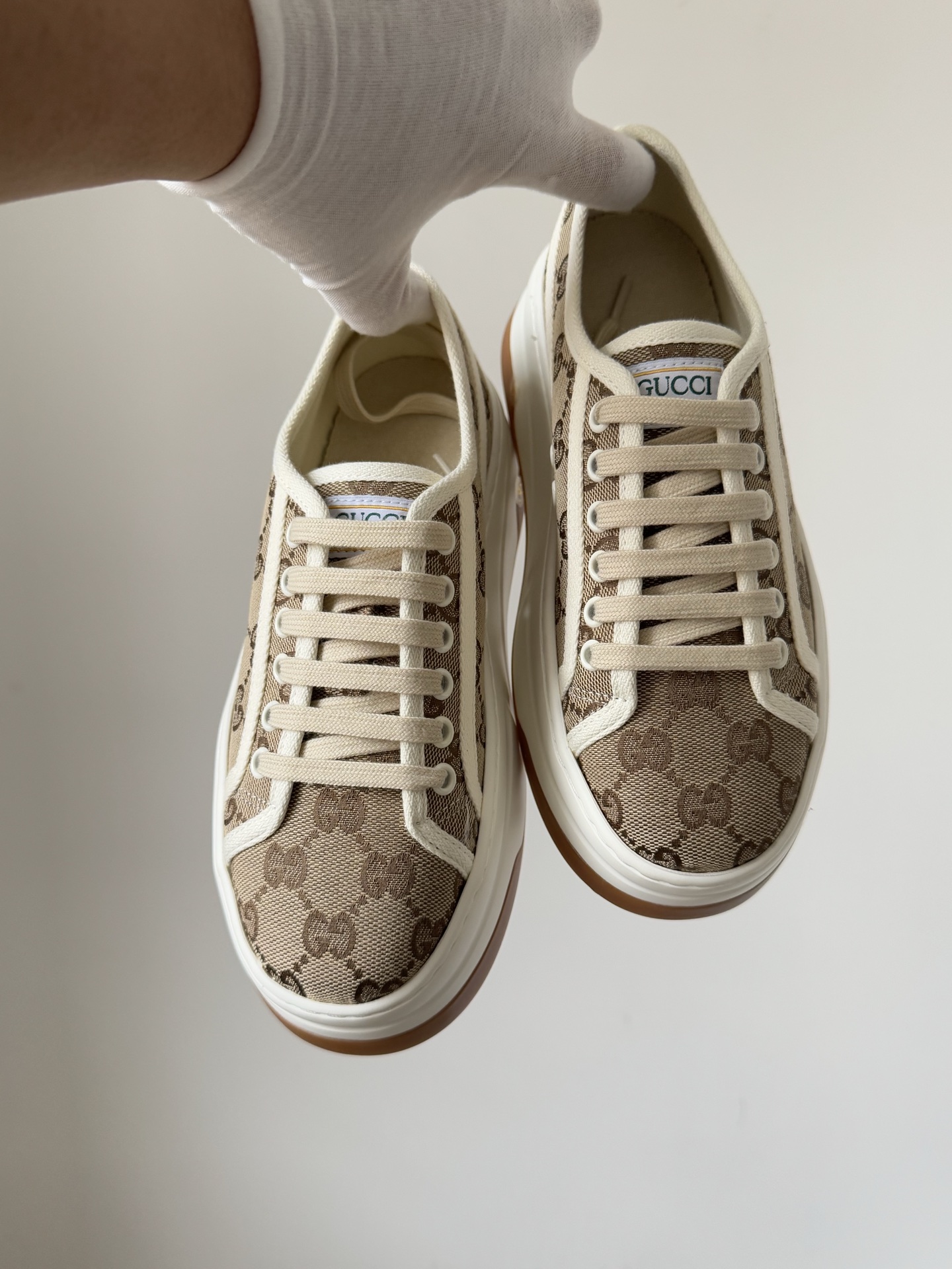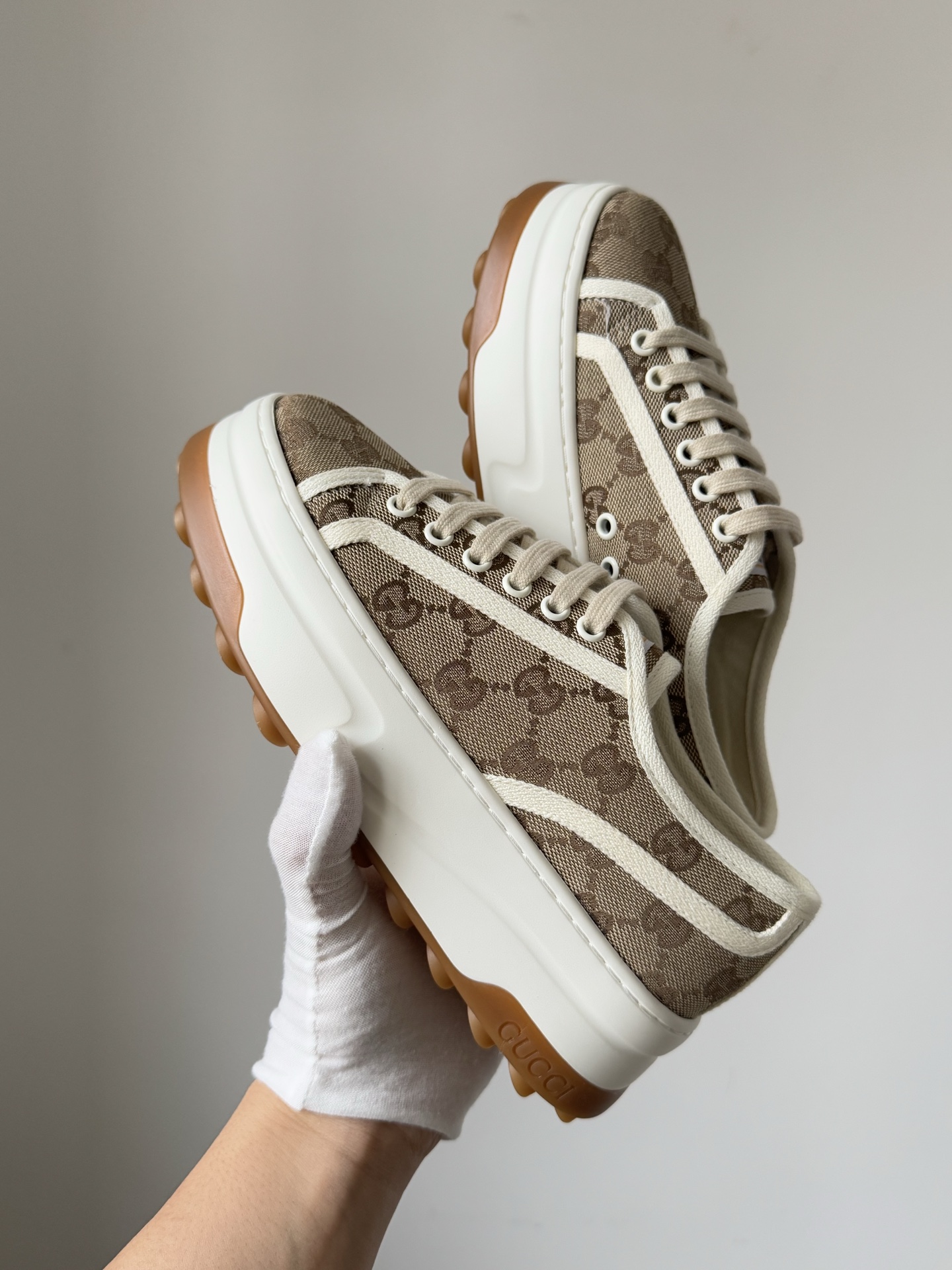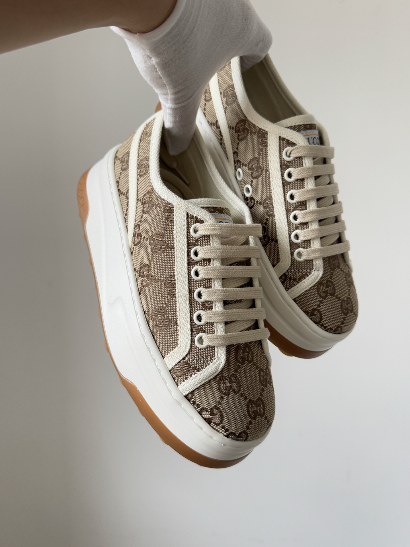 Gucci Interlocking Lace-Up Sneakers 5.5cm Unisex White Brown crafted with premium materials, showcasing Gucci’s luxury craftsmanship and timeless style. Perfect for fashion-forward looks.