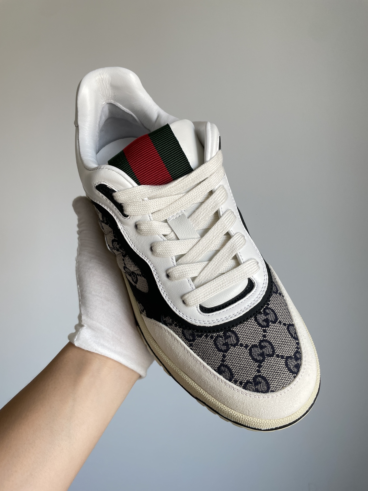 Gucci Re-Web Leather Lace-Up Sneakers Men Beige