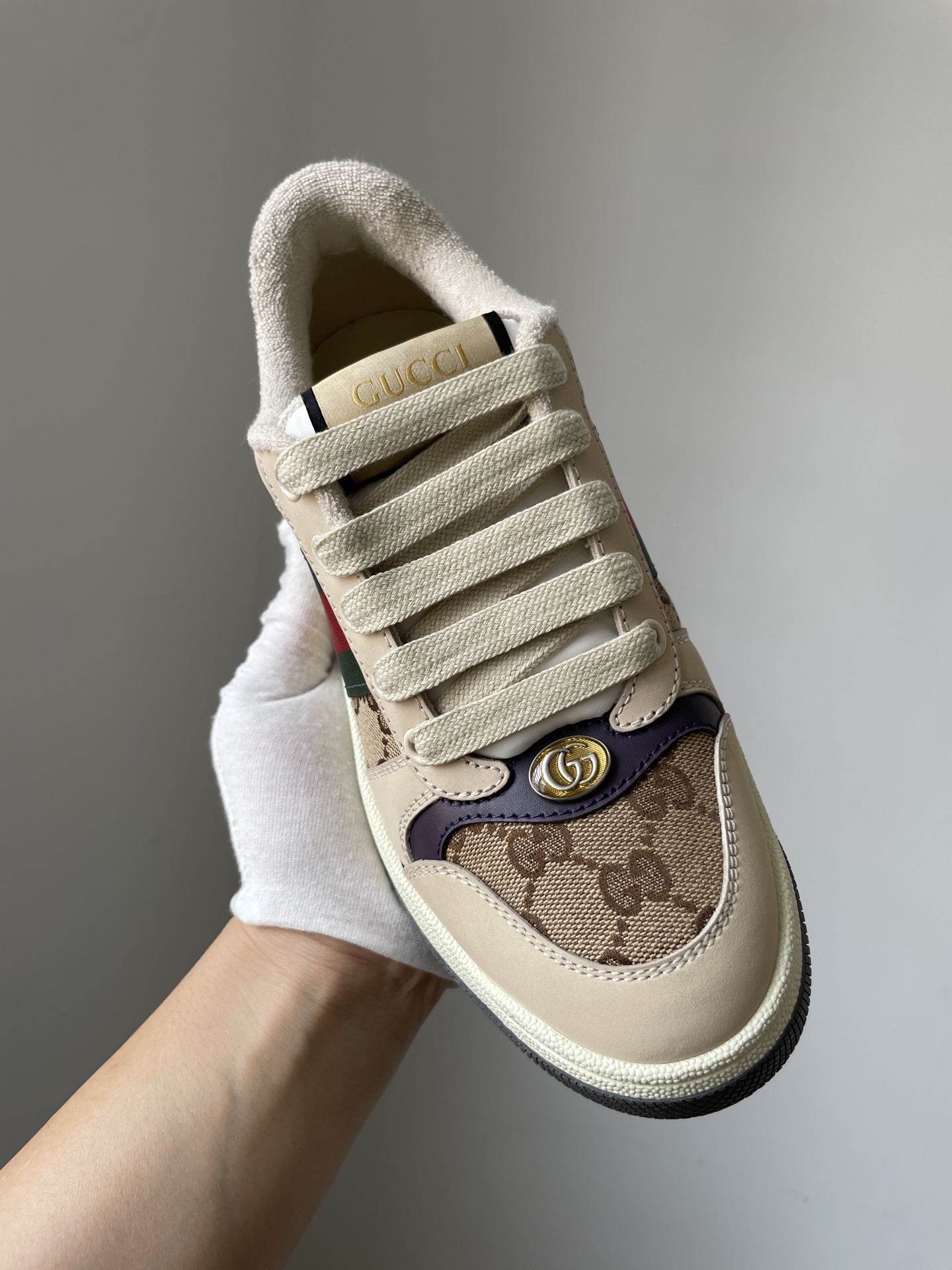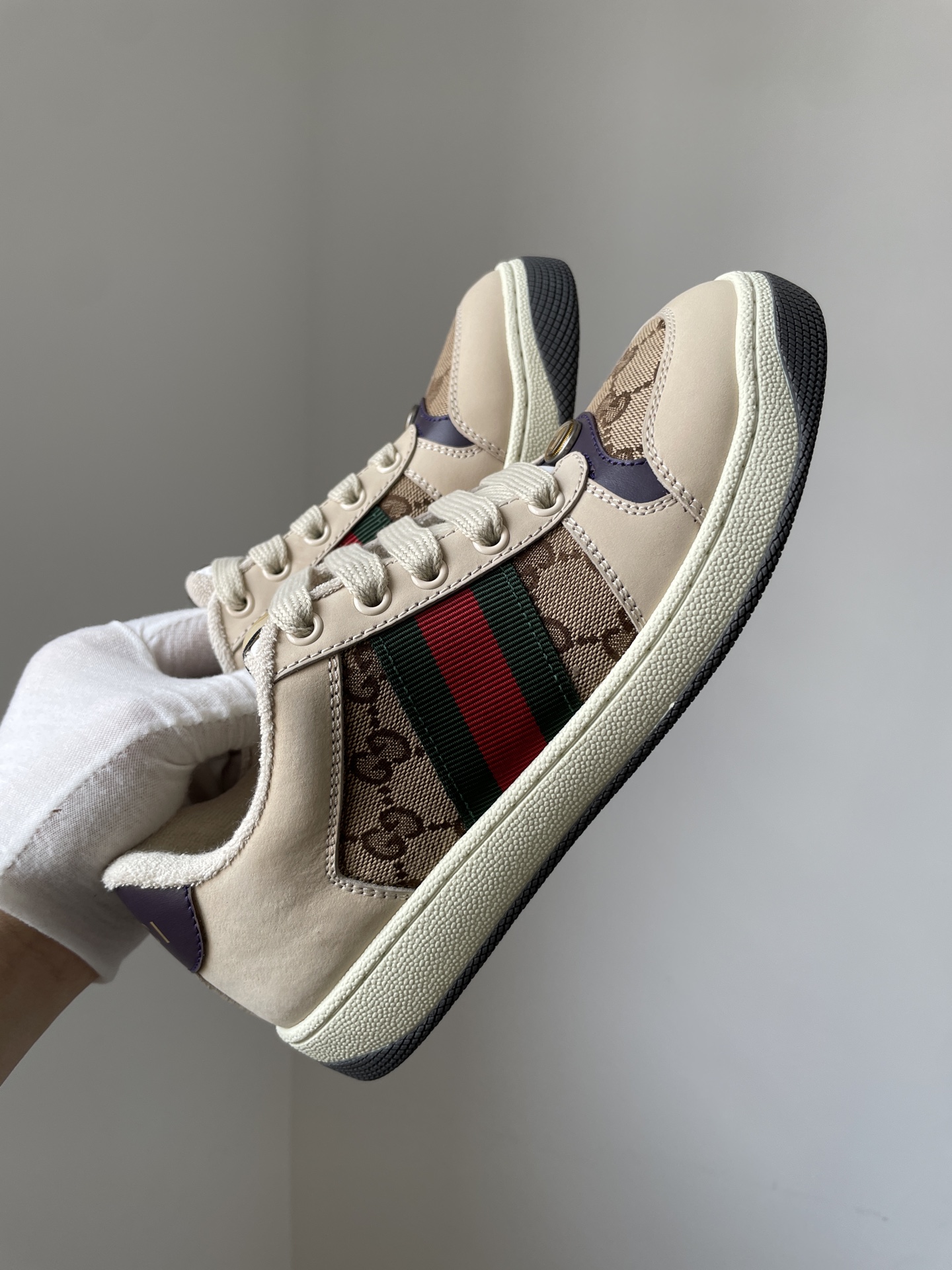 Trendy ebony Gucci sneakers featuring iconic Screener vintage design.
