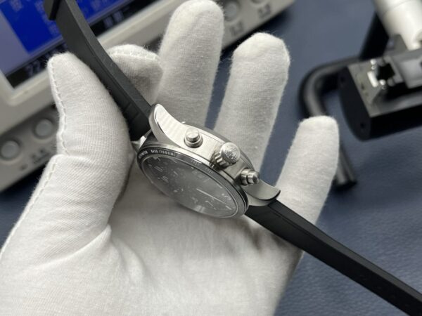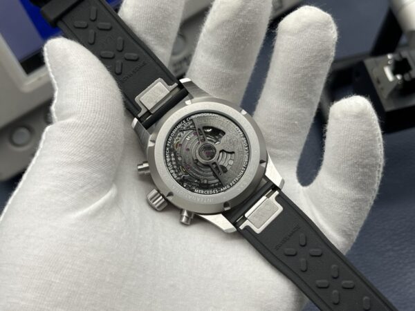 The IWC Pilot’s Watch IW388305 AMG Edition merges racing aesthetics with fine Swiss mechanics. 41mm titanium case offers lightweight strength. Black dial mirrors Mercedes-AMG cockpit design. Automatic chronograph movement ensures accuracy. Luminous markers, sapphire crystal, 100m water resistance—sport and sophistication unified.