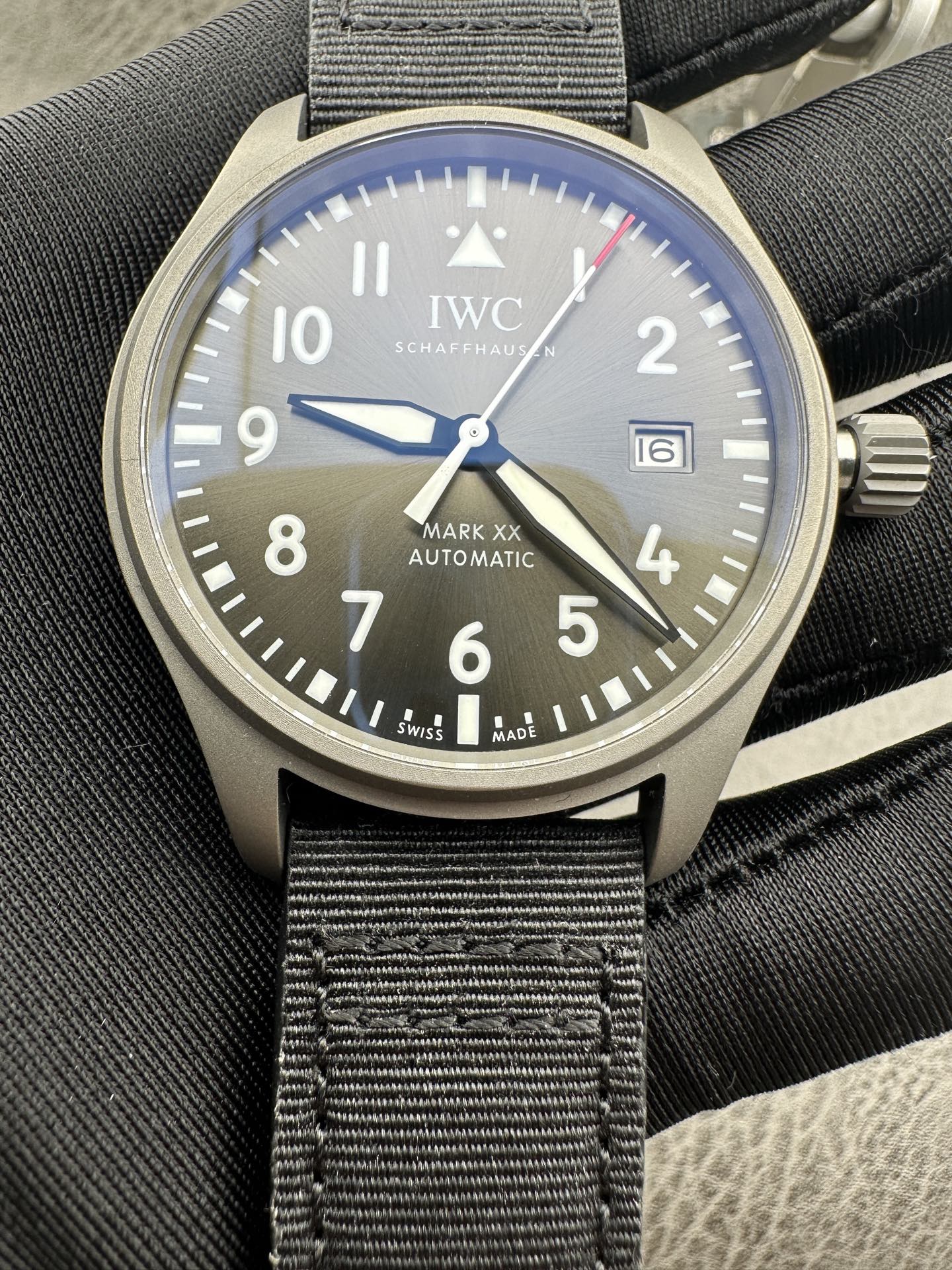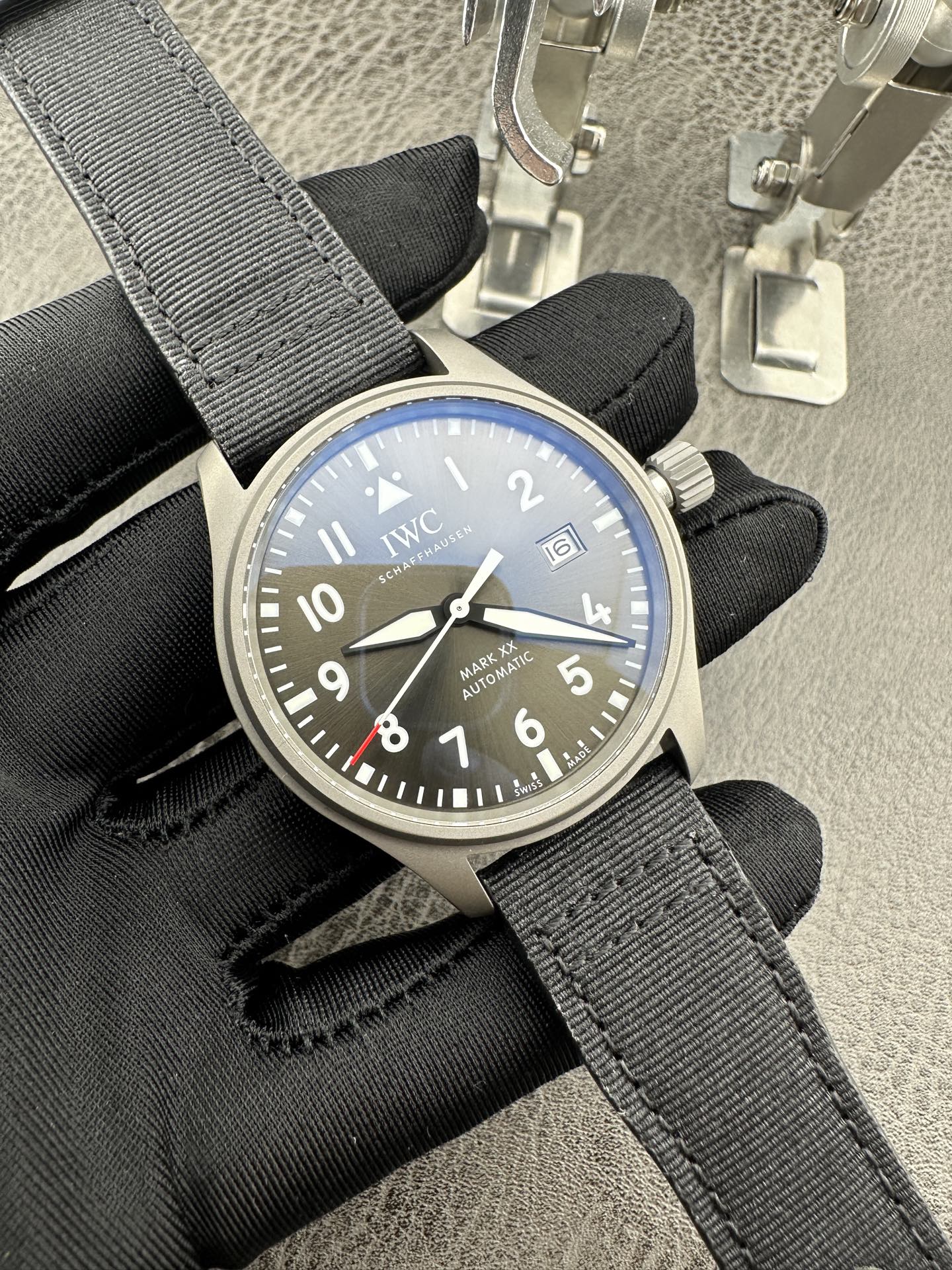 IWC Pilot’s Watch Automatic Mechanical Movement 100M Water Resistant Unisex Swiss Watch 40mm Grey Dial Titanium Case Fabric Strap