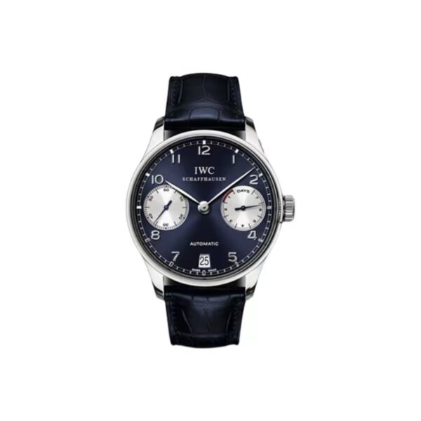 IWC Portuguese Automatic 42.3mm Blue Dial Stainless Steel Case Leather Strap is crafted with precision using an automatic mechanical movement. Featuring premium materials, sapphire glass, and a handcrafted strap, it blends classic design with Swiss excellence. Each timepiece ensures reliable accuracy, durability, and timeless style for every occasion.