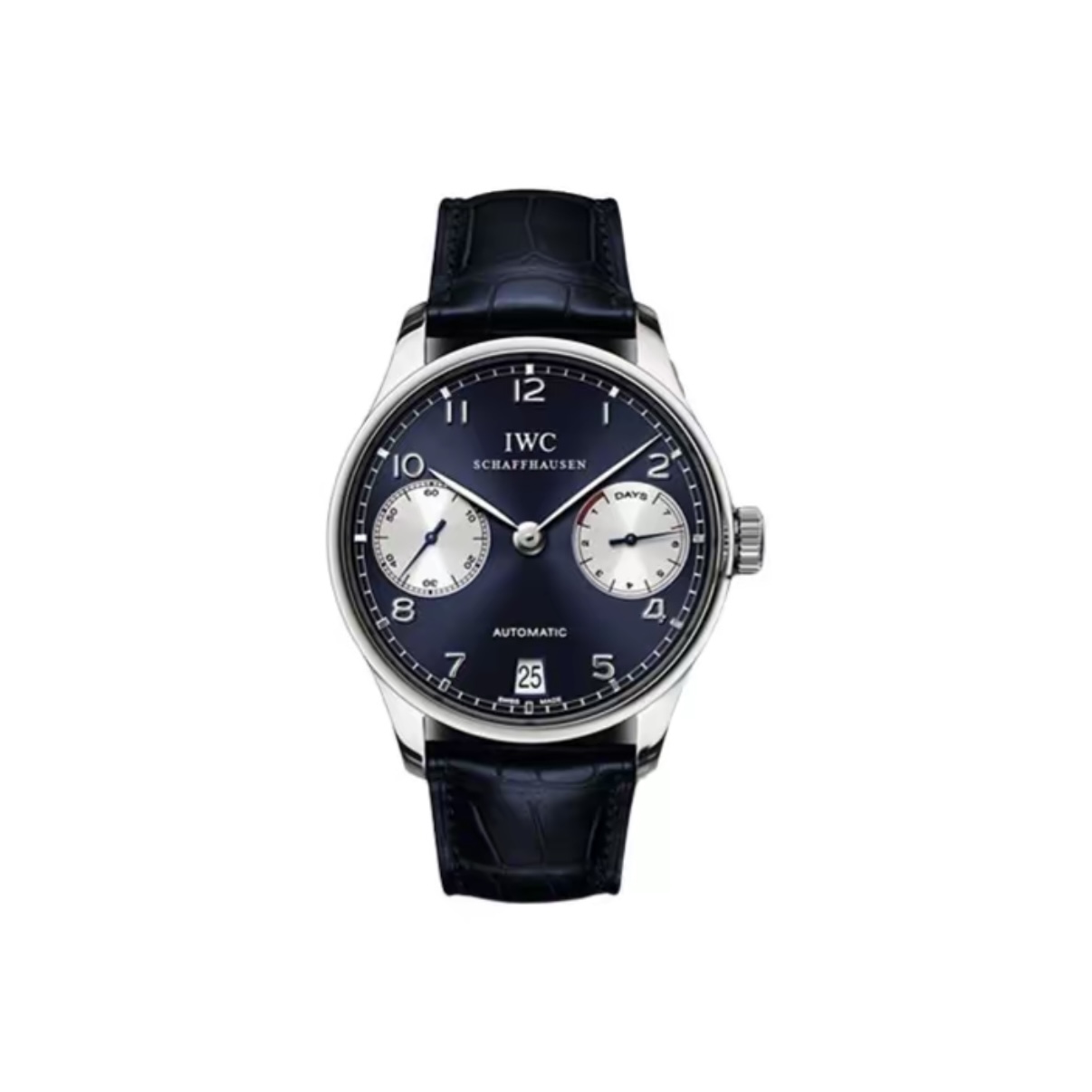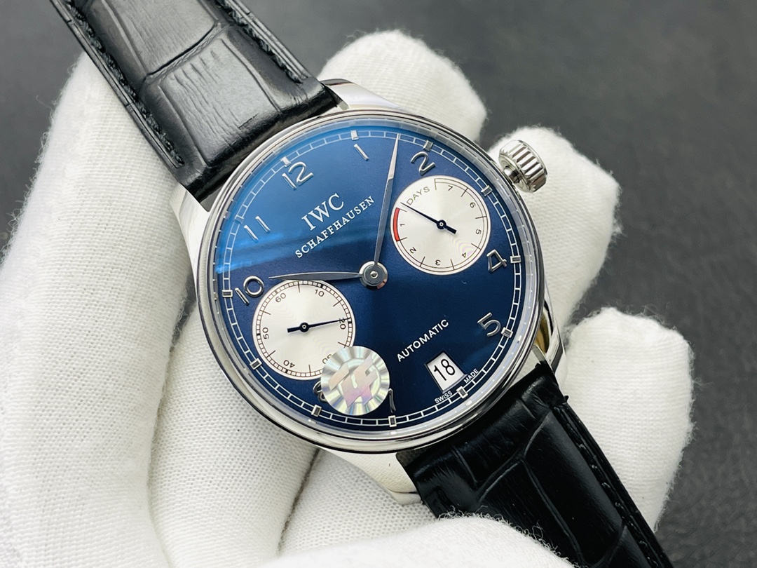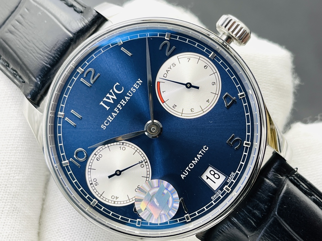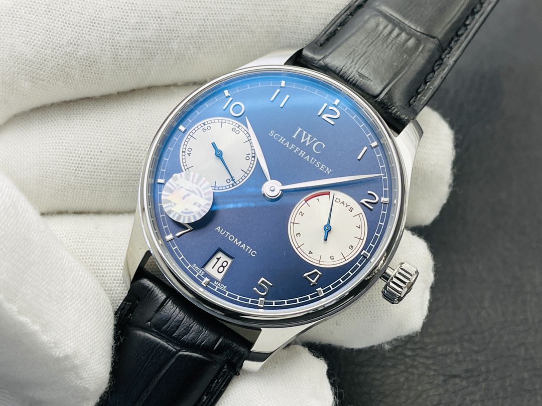 IWC Portuguese Automatic 42.3mm Blue Dial Stainless Steel Case Leather Strap — a refined automatic watch blending IWC tradition with modern elegance.